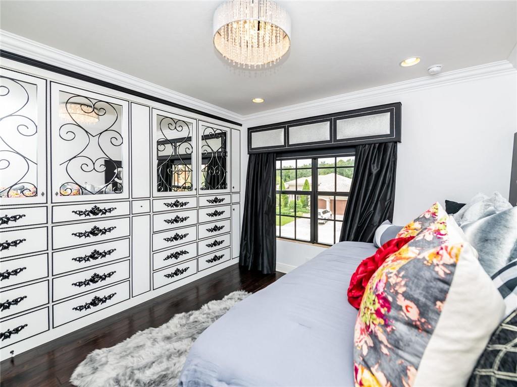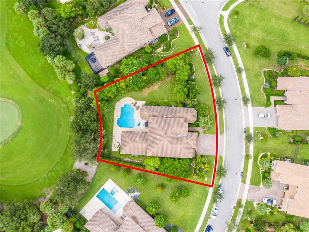 AMAZING HUGE LOT ON THE 5TH GREEN! Fine Details and Upgrades throughout the entire home. 6 Bedrooms (Master Downstairs) + Office + Loft + 4 Bathrooms +2 powder bathrooms + 3 car garage. GOURMET Kitchen with double ovens, stainless steel appliances, Island with extra sink, Custom hood range & 2 custom built in pantries. Wood floors, custom wood work and molding on ceilings, archways & windows. Backyard Paradise overlooking the 5th Green features waterfalls, lights, saltwater system, pool heater, outdoor shower, covered large Lanai with Mosquito mister system & HUGE Private side yard completely fenced. This house has it all! Additional features include hurricane impact windows, custom decorative built ins in every room including a Purse display/dressing area in Master Bedroom! MUST SEE!!