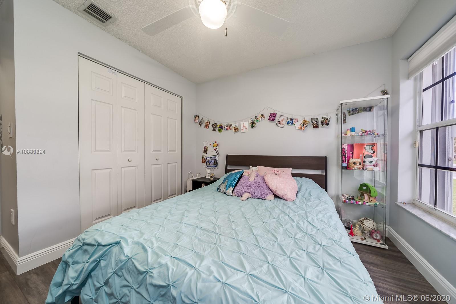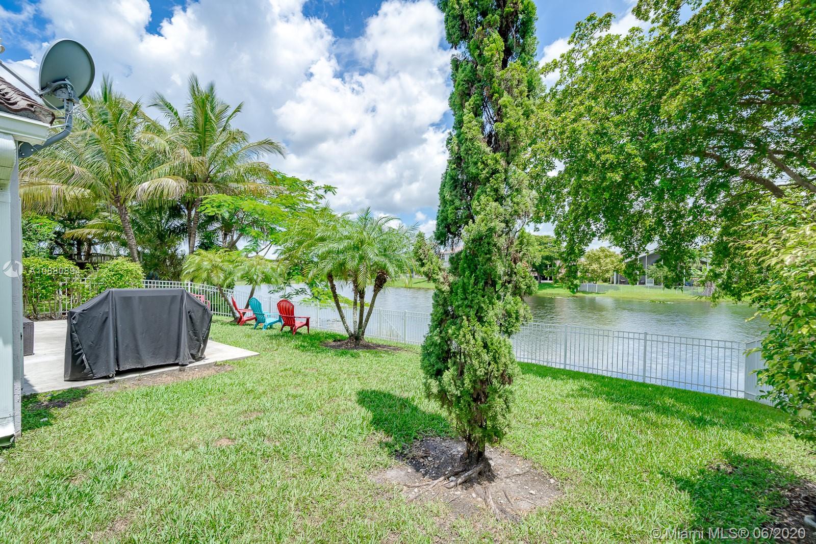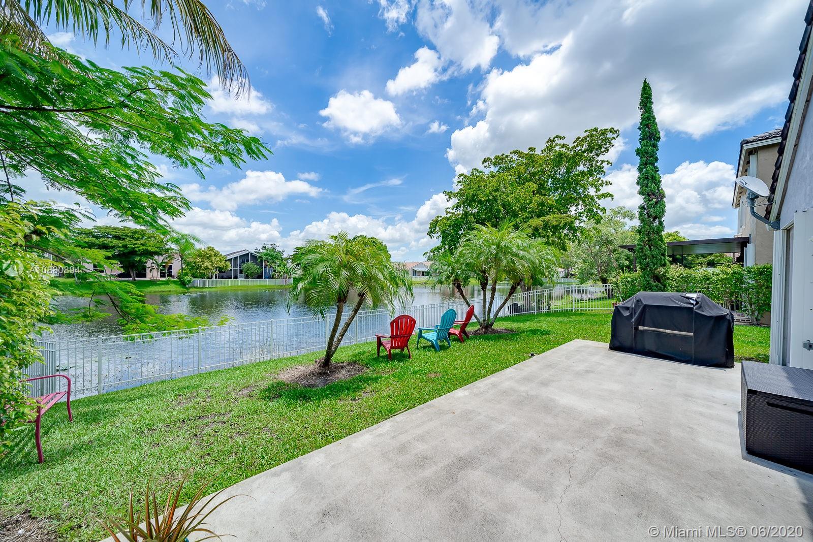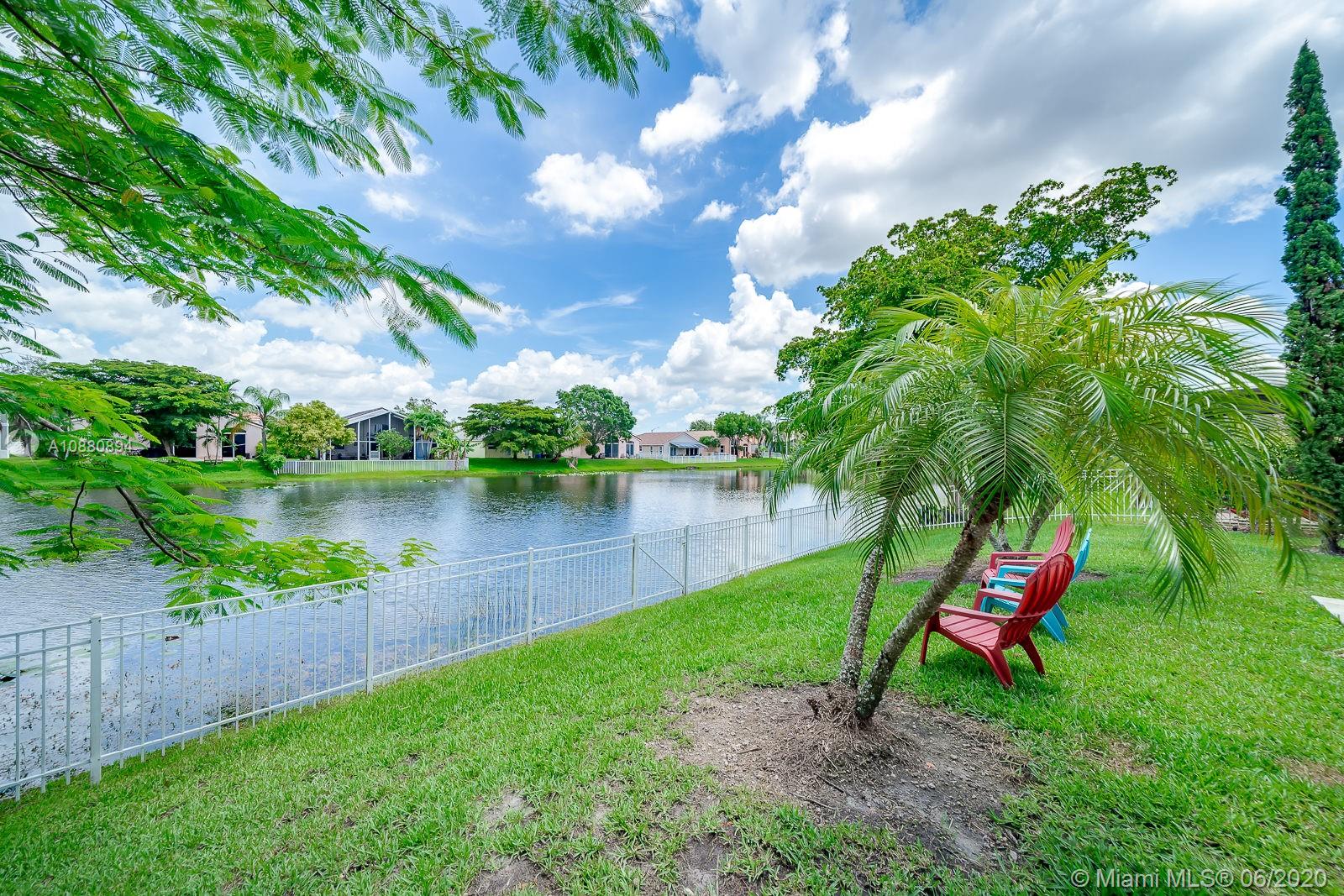 A MUST SEE! CLEAN and spacious 3/2 in one of the nicest most sought after gated communities. MOVE-IN READY. Beautiful flooring all throughout. Part of the garage has been converted into spacious 4th bedroom (seller will disassemble 4th room back to DOUBLE GARAGE per buyer's request). Pretty RENOVATED open kitchen w/ serving/breakfast bar, granite counter tops, lots of cabinets and space with self-close doors and drawers. Stainless-steel appliances (Refrigerator, washer and dryer machine 2-years new). A/C 2014. Modern renovated bathrooms. Spacious backyard w/ a beautiful view LAKE FENCED and NO neighbors in the back. New rain gutters. All light fixtures will remain. HURRICANE ACCORDION shutters all throughout. Ventilation system has been recently cleaned and disinfected. SPRINKLES system.