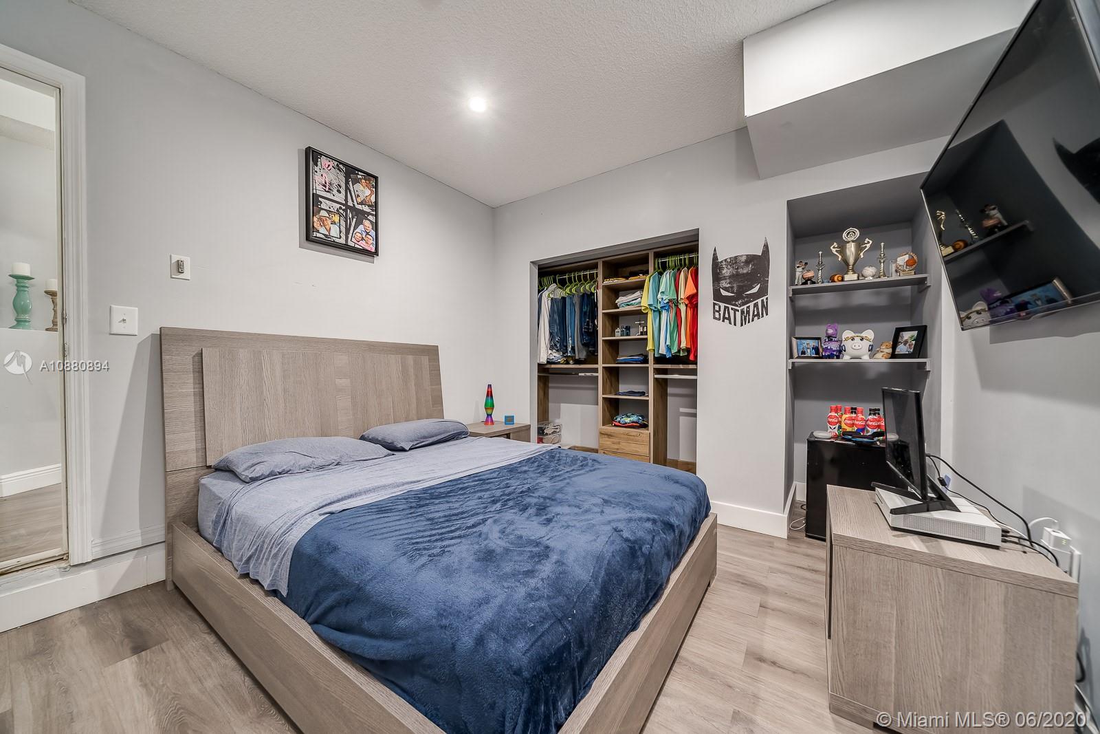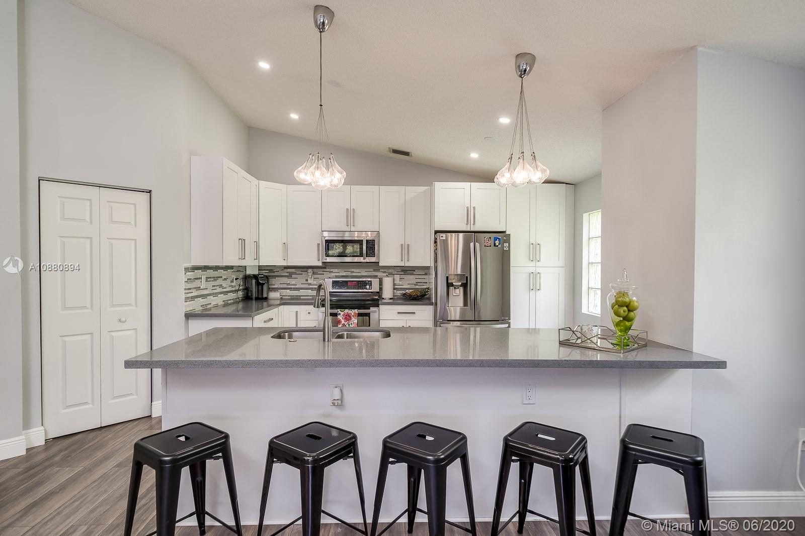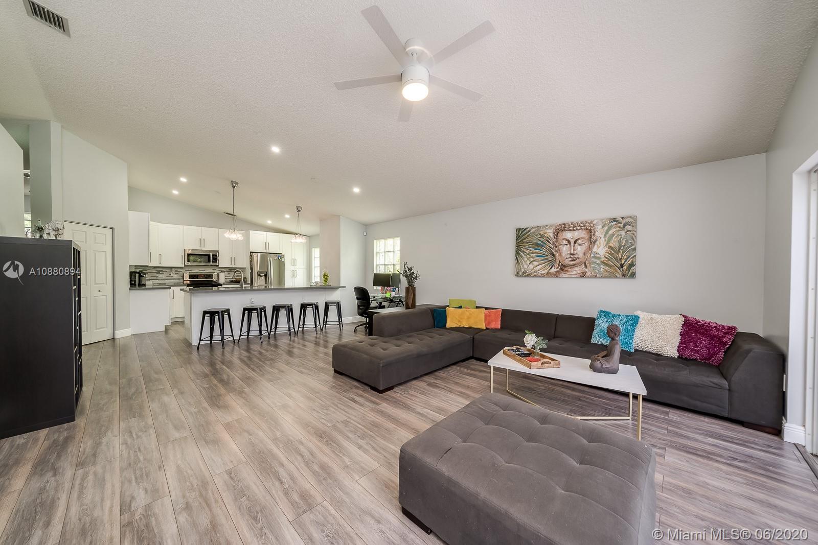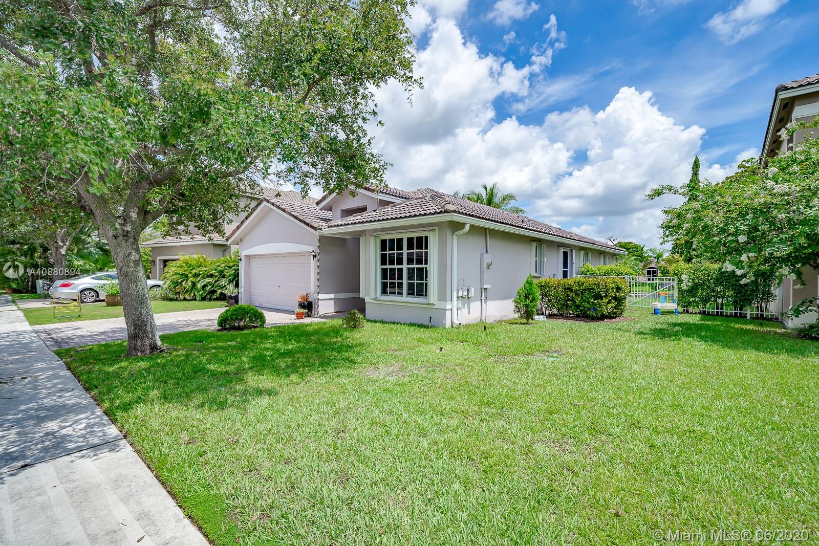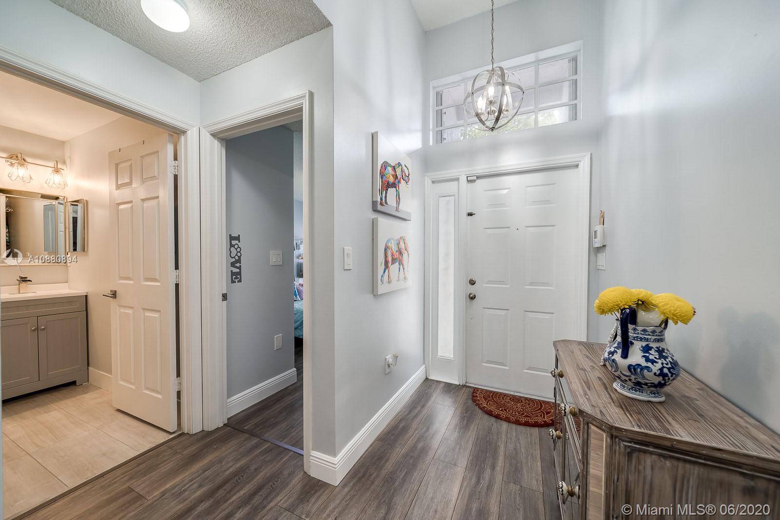 A MUST SEE! CLEAN and spacious 3/2 in one of the nicest most sought after gated communities. MOVE-IN READY. Beautiful flooring all throughout. Part of the garage has been converted into spacious 4th bedroom (seller will disassemble 4th room back to DOUBLE GARAGE per buyer's request). Pretty RENOVATED open kitchen w/ serving/breakfast bar, granite counter tops, lots of cabinets and space with self-close doors and drawers. Stainless-steel appliances (Refrigerator, washer and dryer machine 2-years new). A/C 2014. Modern renovated bathrooms. Spacious backyard w/ a beautiful view LAKE FENCED and NO neighbors in the back. New rain gutters. All light fixtures will remain. HURRICANE ACCORDION shutters all throughout. Ventilation system has been recently cleaned and disinfected. SPRINKLES system.