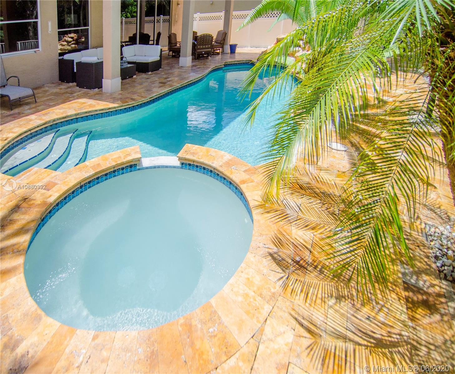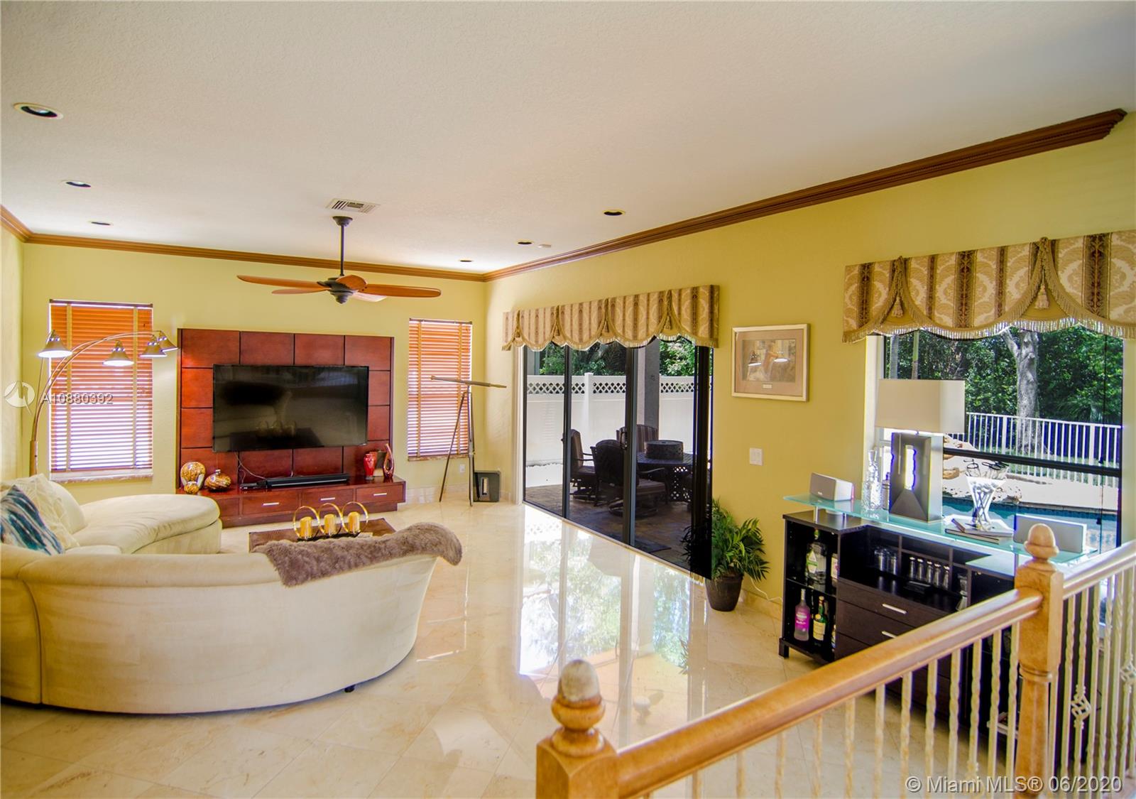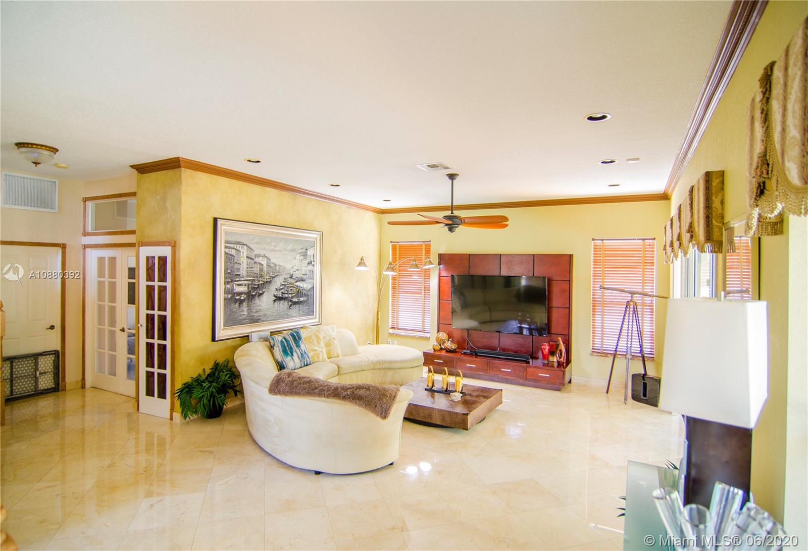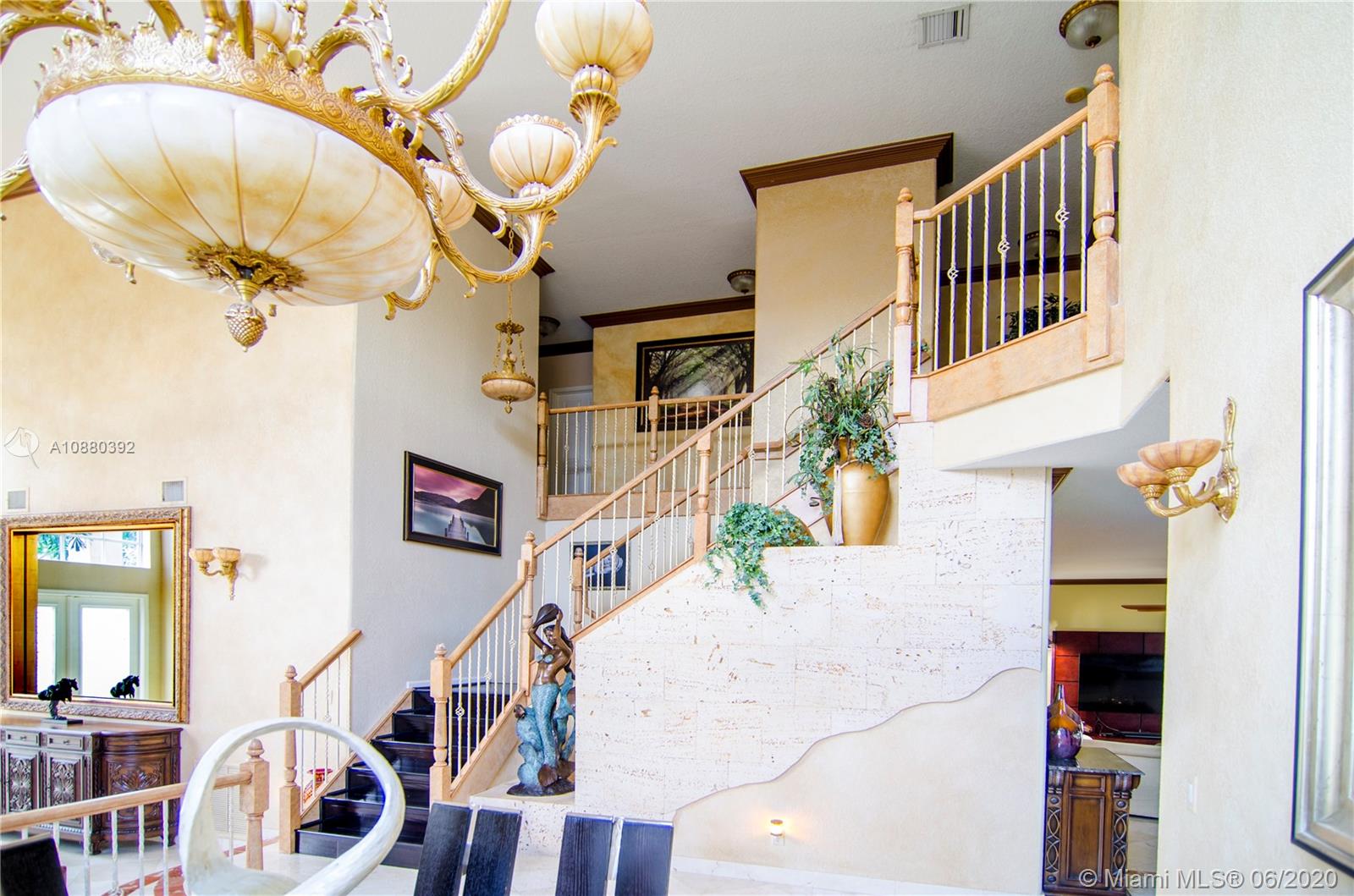 PLEASE WATCH THE VIRTUAL TOUR, real 360 tour: you will like. MOTIVATED SELLER. You are greeted in an elegant home with marble and bamboo floors throughout, two story Cathedral ceilings in formal living and dining room and warm inviting colors. The staircase is beautiful with dark bamboo and wrought iron. You'll LOVE this floor plan! All of the social areas are spacious. The kitchen is a chef's delight with plenty of granite counter space and tall wood cabinetry. The kitchen overlooks the sunken family room, making this the perfect family hub to gather. Enter the primary bedroom suite through grand double doors. His and Hers private bathrooms and closets. This home has 2 primary bedrooms. Meticulously cared for travertine pool deck, pool house for BBQ. 2 new AC units, 2 years old.
