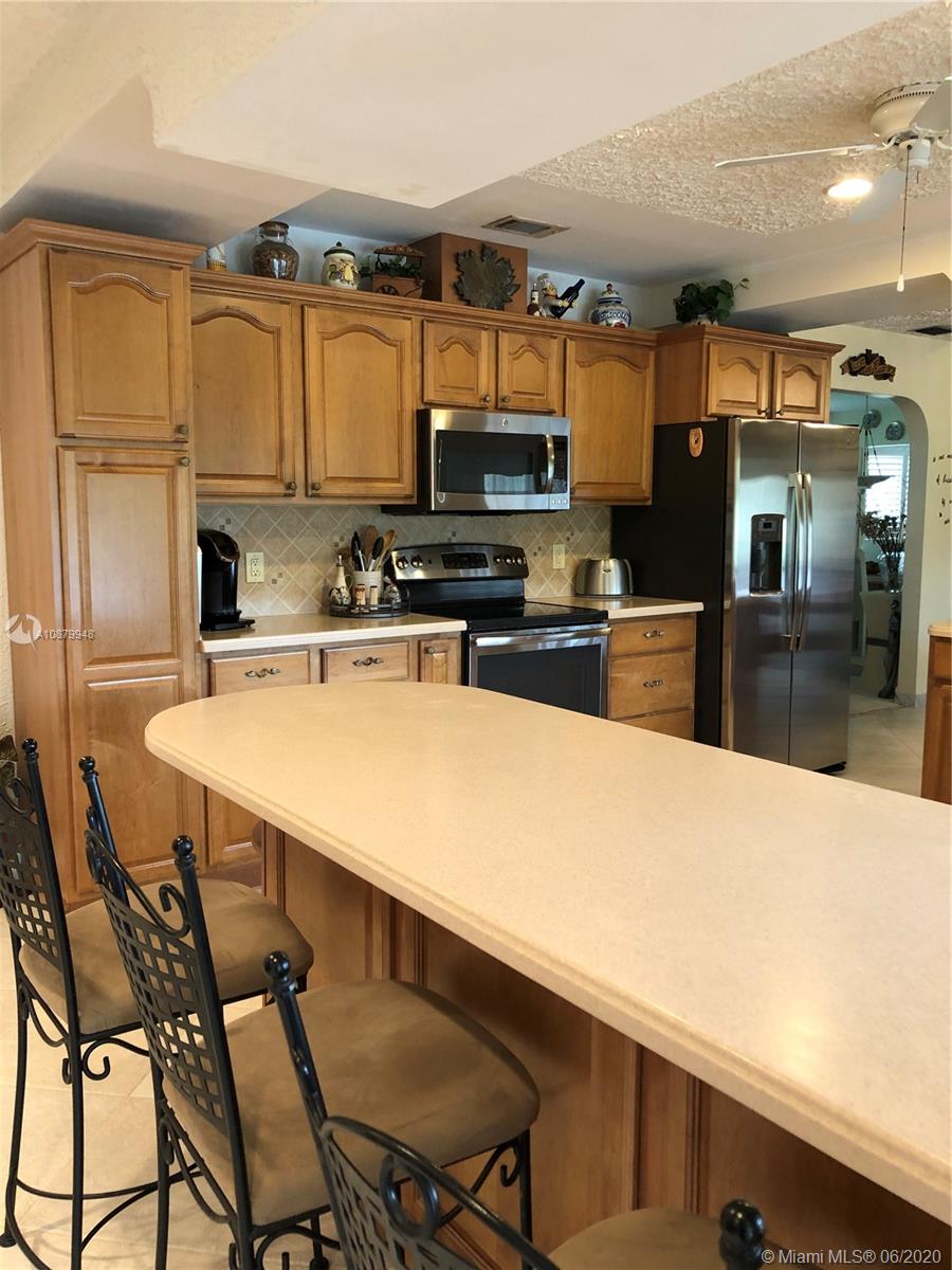 This is the one you've been waiting for! Impeccably maintained truly lovely pool home on a fenced oversized lot with a tranquil waterway on two sides of the property! The entrance foyer opens on one side to the formal living and dining rooms, highlighted with elegant Plantation shutters. Straight ahead is the massive great room/eat-in kitchen which has wall-to-wall windows and glass doors looking out on the pool and waterway. The kitchen boasts expansive counters, a large snack bar, brand new refrigerator, and newer appliances. You'll enjoy the split floor plan, 3 walk-in closets, neutral ceramic tile and wood laminate through much of the home, newer dryer, brand new washer, automatic sprinklers, a water softener system for whole house, and all-around hurricane protection. No HOA fees.