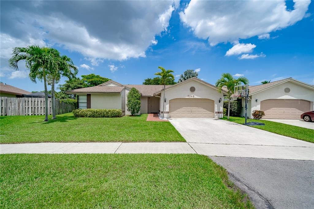 **BACK ON THE MARKET DUE TO BUYERS FINANCING FALLING THROUGH.**. ONE OF THE ONLY HOMES AVAILABLE IN THE NEIGHBORHOOD. OVERSIZED LOT WITH THE COMMUNITY POOL JUST STEPS AWAY. ROOF 2006, VOLUME CEILINGS, SPACIOUS LIVING AND DINING AREAS ALONG WITH EAT IN KITCHEN. UPDATED LAMINTE FLOORS, STACKED BEDROOM PLAN. STAINLESS STEEL APPLIANCES, NEWER WATER HEATER. WALK TO WELLEBY ELEMENTARY SCHOOL, LESS THAN HALF A MILE TO THE LIBRARY, SUNRISE POOL AND CIVIC CENTER AS WELL AS 3 MINUTE DRIVE TO PUBLIX AND RESTAURANTS. HOA FEE $36 QUARTER TO WELLEBY AND $120 QUARTER TO WESTBRIDGE. NO COMMERCIAL VEHICLES.