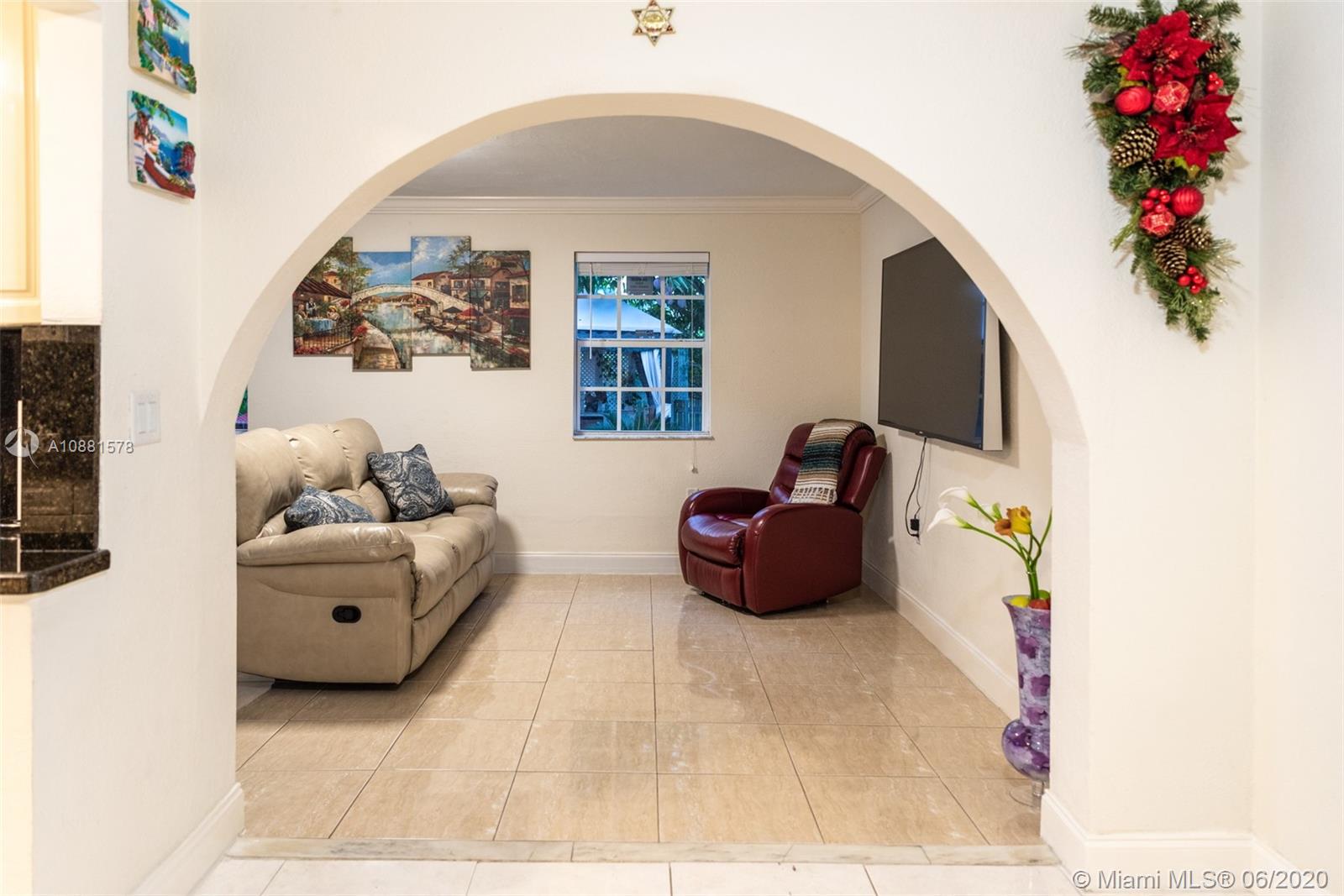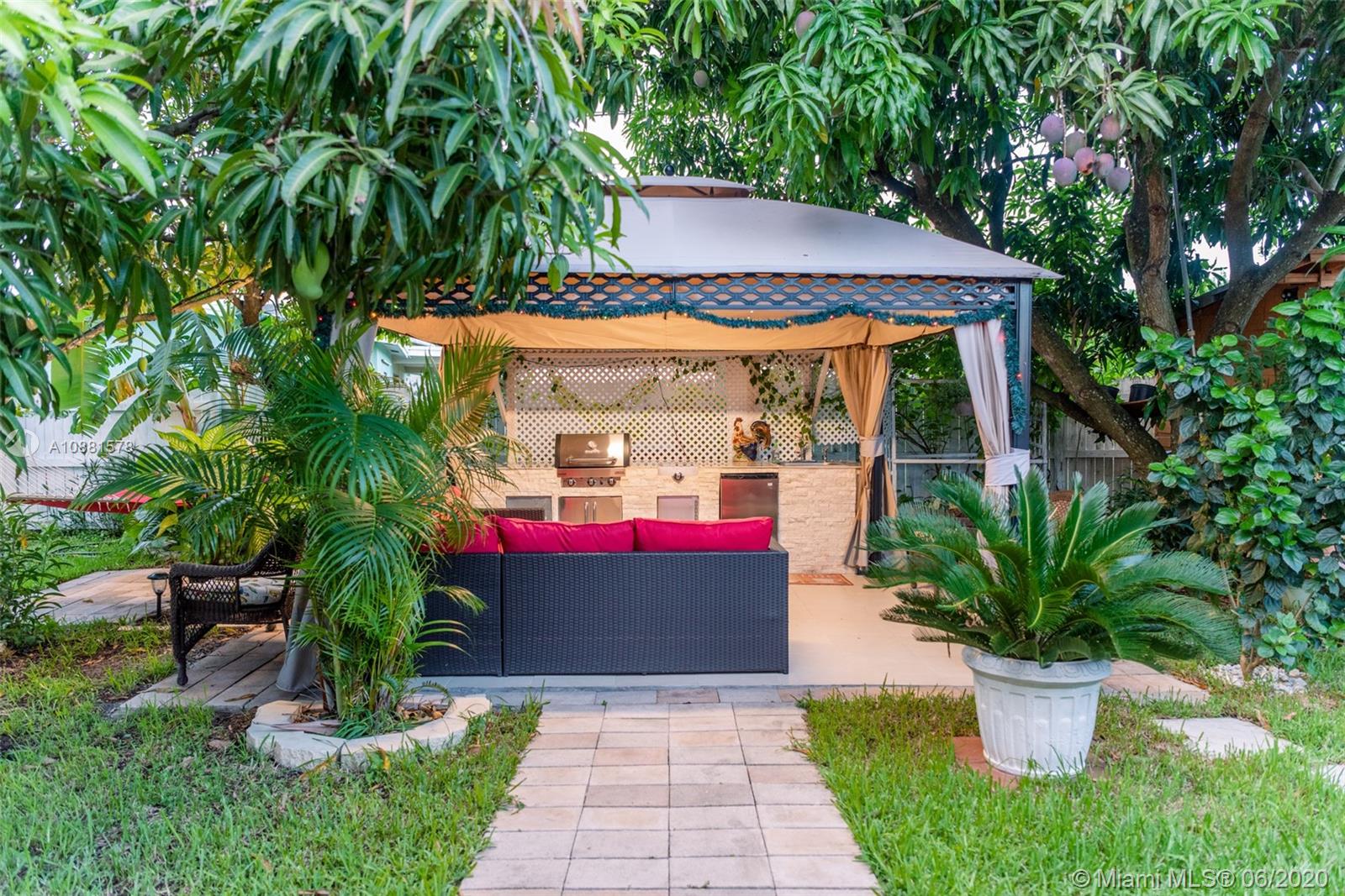 LITTLE PIECE OF PARADISE! HOME WITH TILE THROUGHOUT ! NEW ROOF, KITCHEN WITH STAINLESS APPLIANCES AND GRANITE COUNTERTOP AND RENOVATED BATHROOM. TOP OF THE LINE WASHER AND DRYER, GARAGE IS CONVERTED USE AS TV ROOM/GUEST, TO CIRCULAR DRIVEWAY AND BACKYARD WITH A GOURMET KITCHEN. CAMERA BY RING THAT YOU CAN WATCH YOUR PROPERTY FROM ANYWHERE ON YOUR PHONE. NO HOA FEES OR RESTRICTIONS.