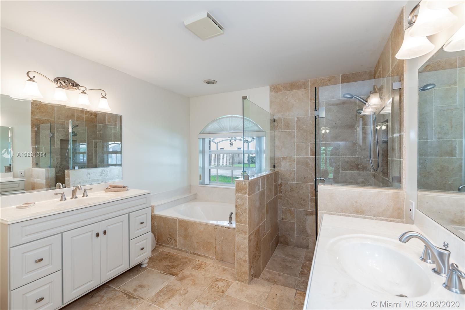 Spacious and Contemporary, 4 Bedroom + Office/Den/Guest Room, 2.5 Bath, Home in The Sought After Estates of Tanglewood Lakes – Pembroke Pines. Featuring: Large Open Kitchen with Serving Bar, Renovated Master Suite, Walk-in Closet, His & Hers Free Standing Vanities, Luxurious Shower, Custom Tile-Work, Frameless Glass Enclosure, Roman Soaking Tub, Freshly Painted Interior, Modern Lighting ***NEW WOOD FLOORING*** Expansive Covered Patio, Tropical Landscaping, Accordion Shutters ***NEW TILE ROOF*** Fenced Grounds with Plenty of Room for Entertaining & Play. Gated Community, Low HOA, Convenient to Shopping, Dining, Entertainment, Travel & Schools. THE PERFECT FAMILY HOME. Hurry Call Us Today....