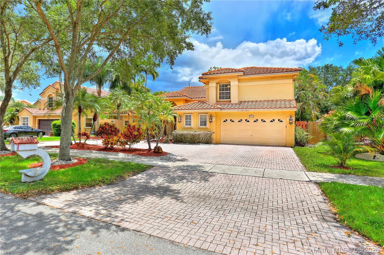 Beautiful 5/4 home in the highly desired area of THE ESTATES in Embassy Lakes. Home features 5 bedrooms; 4 baths; play room on second floor which can easily be converted to the 6th bedroom; 2 of the bedrooms and 1 of the baths are on the second floor; volume ceilings which give an amazing open feel throughout the main living areas; wood, tile and carpet floors; beautiful kitchen with wood cabinets and granite counters; stainless steel appliances; breakfast nook; 2 a/c units; 2-car garage; covered arched patio overlooking at the beautiful garden and pool/Jacuzzi area which is perfect for entertaining; A+ schools. Community has 3 gated entries. Amenities include pool, clubhouse, tennis and much more. A true impeccable beauty and a must see!