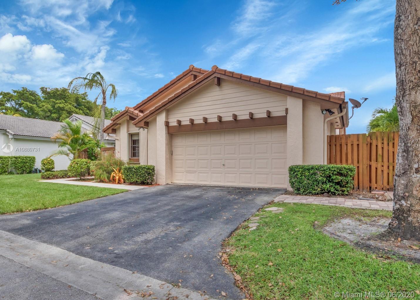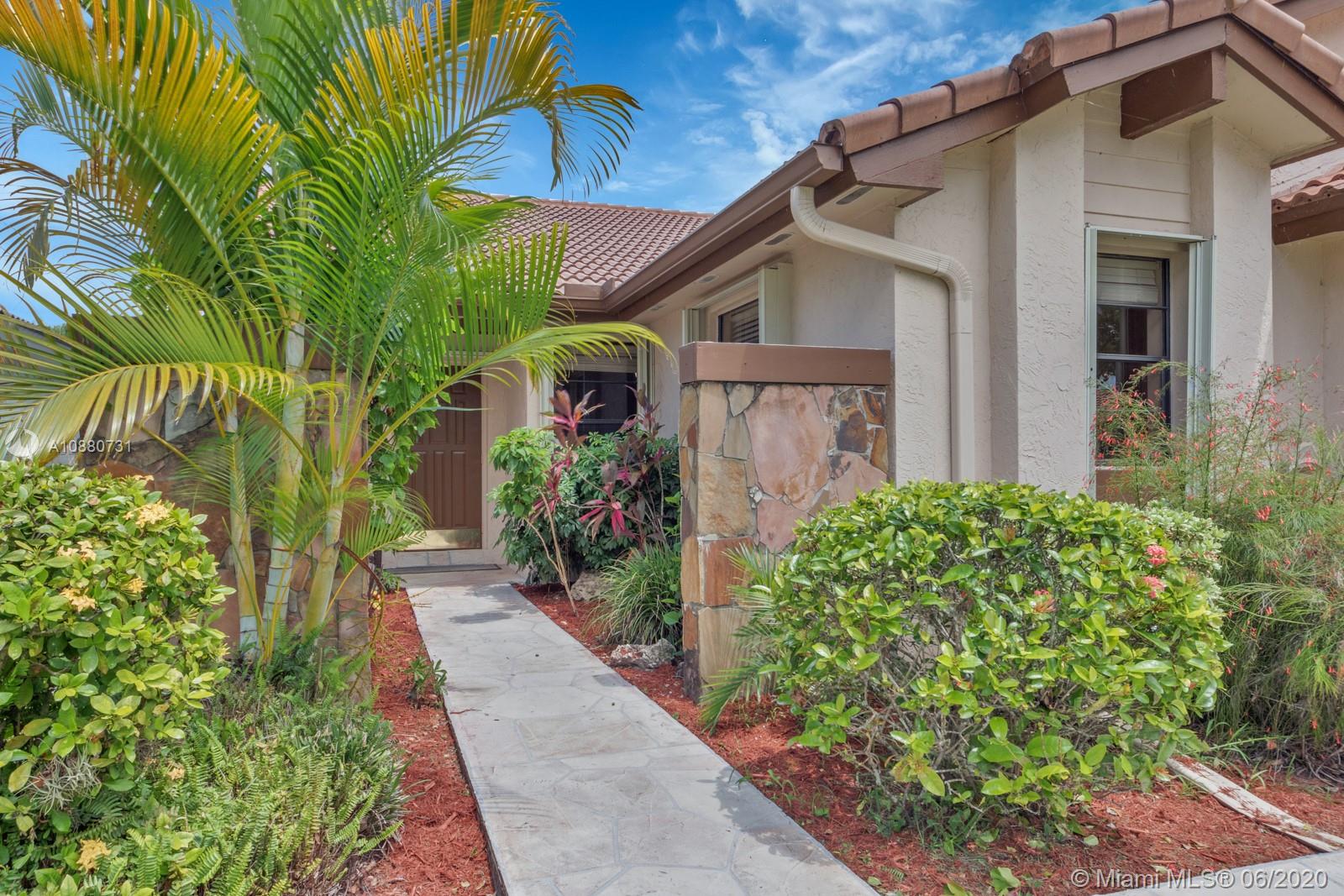 Charming 3 bedroom + office/den, 2 bathroom one story home with spacious 500+ sq ft covered, screened and tiled patio is set on a beautiful tree-lined cul-de-sac street. Interior features a center island kitchen opening to family room, neutral tile in living areas, wood flooring in bedrooms and updated bathrooms. Roof 2008. The fenced yard backs to a green space for ultimate privacy. Accordion shutters for hurricane protection ease. 1 1/2 car garage. Maintenance fee covers watering of the lawn and cutting of the grass. Non-commercial trucks allowed. Steps to community pool and passive park. Easy highway access. Top notch schools.