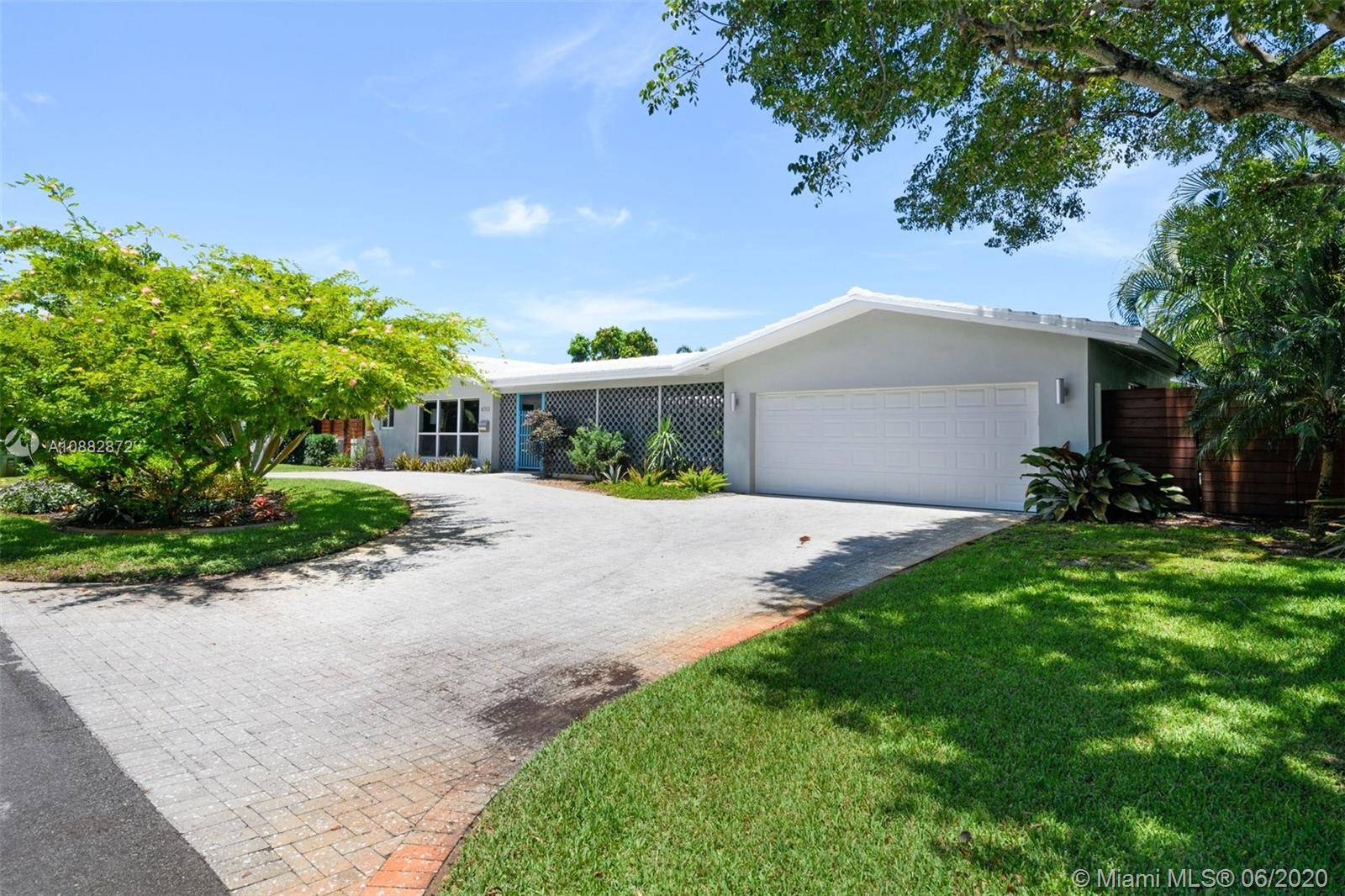 MID CENTURY MODERN COURTYARD HOME LOCATED IN SOUGHT AFTER NEIGHBORHOOD. ITS COURTYARD ENTRY ATTACHES HOME TO ITS DETACHED OVERSIZE 482 sqft GARAGE PERFECT FOR INLAW QTRS/GUEST HOUSE/OR POOLSIDE CABANA. THIS STUNNING HOME W/2,426 SQ FT OF LIVING AREA IS FULL OF CHARACTER W/ITS ORIGINAL POLISHED TERRAZZO FLOORS, MINIMALIST AESTHETICS & ITS EMPHASIS ON BRINGING THE OUTDOORS IN. NEW ROOF, NEW PLUMBING, IMPACT WINDOWS, 5YR TRANE CENTRAL A/C, IN GROUND POOL W/PAVER DECK AREA, ADDT'L OUTDOOR ENTERTAINING AREA W/TRECK DECK & HURRICANE RESISTANT 21X14 LOUVERED ROOF PERGOLA & LUSH LANDSCAPING. UPDATED ADDT'L ELECTRIC BOTH INDOORS & OUTDOOR.