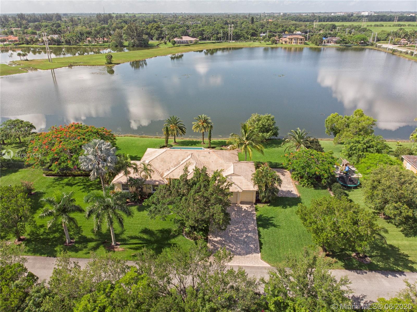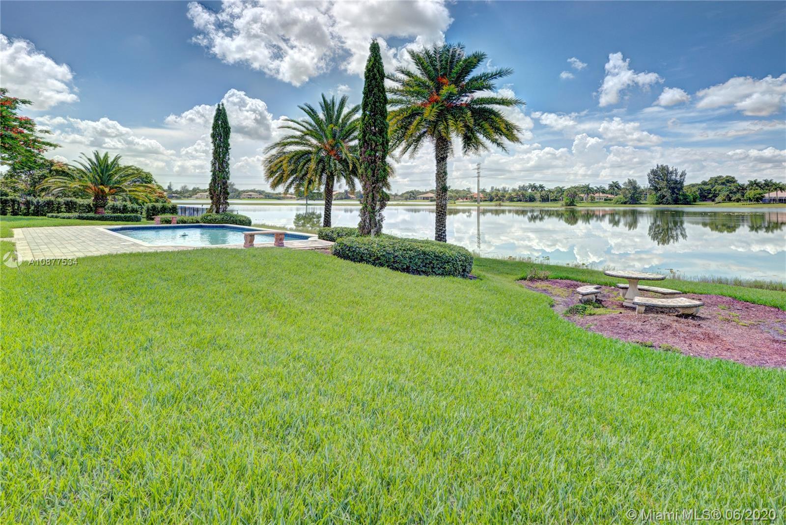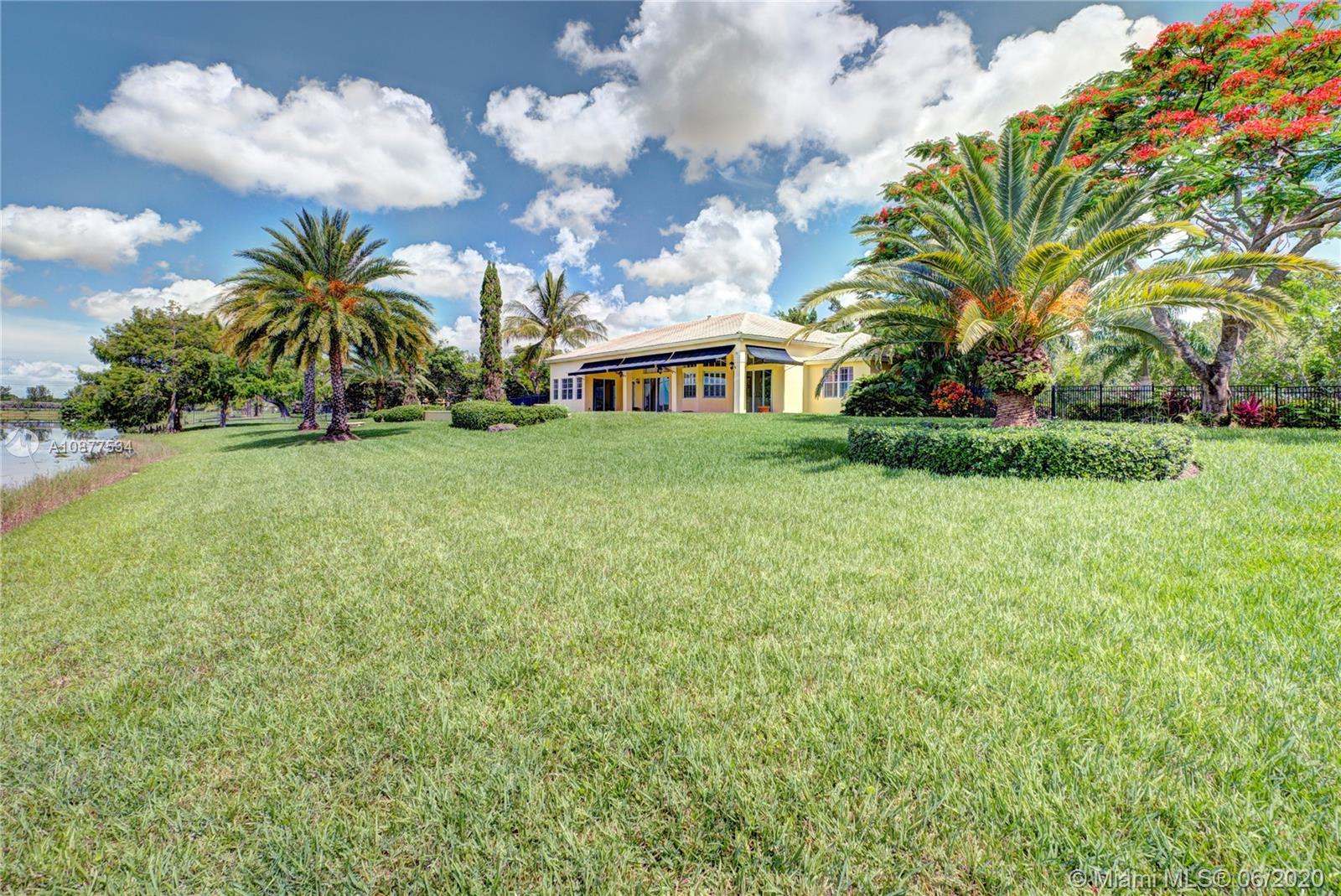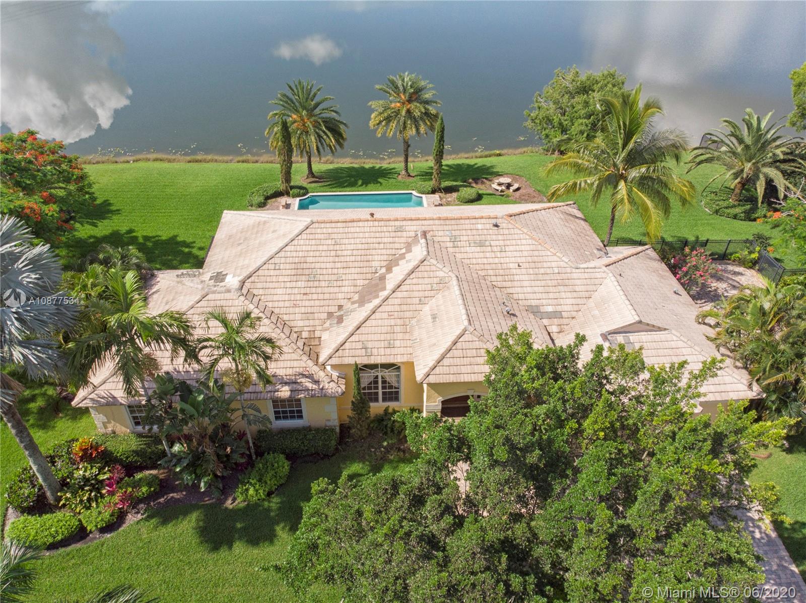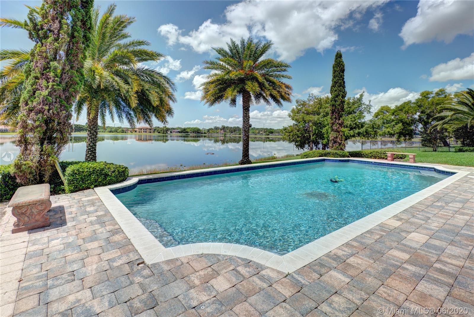 Breathtaking Lake Views, Summer breezes and gorgeous sunsets from this beautiful home in Vista Lakes, Davie, FL. Spacious 4 Bedroom+3 Bath on builder acre lot, features volume ceilings, a split floor plan and a family room open to large eat-in kitchen. Master Suite has rich wood floors and his & her walk-in closets. Cabana bath and all sliding doors lead out to a fabulous backyard with a large patio and resort style pool over looking huge lake. Fenced and private for kids and pets to play. This outdoor space is perfect for entertaining and family gatherings. Plenty of parking with a 3 car garage and parking pad for an RV/Boat. Close to Sawgrass Mills Mall, Cleveland Clinic and convenient access to highways. Great neighborhood and zoned for all A rated schools!