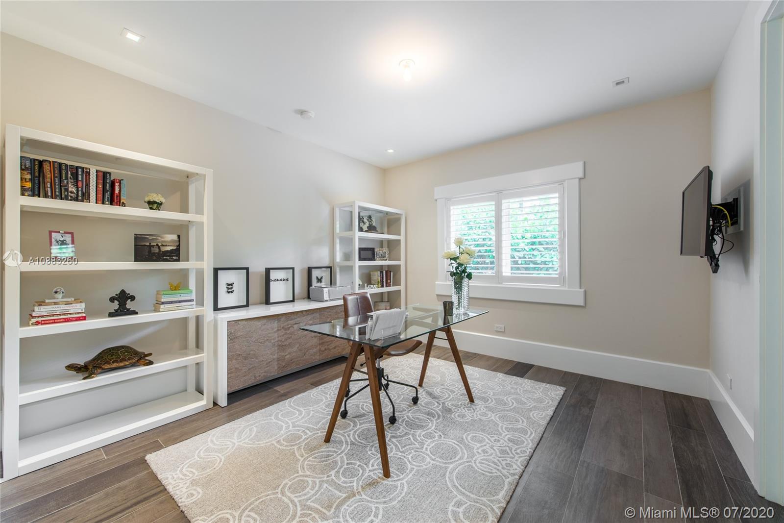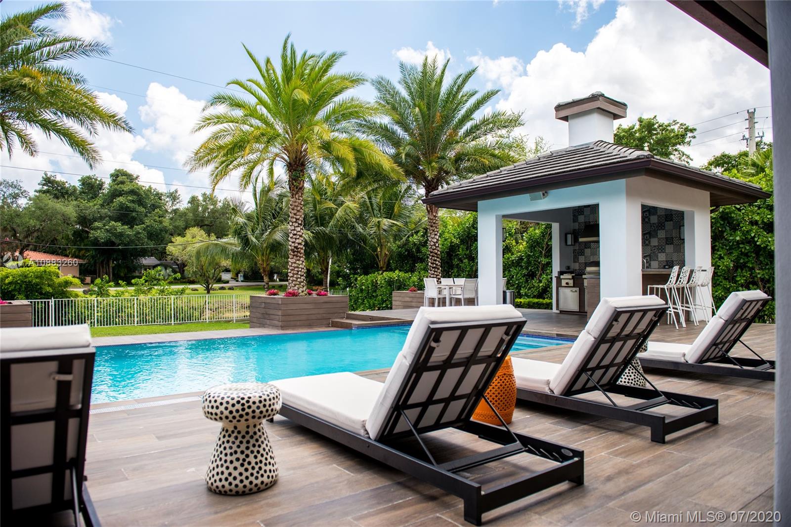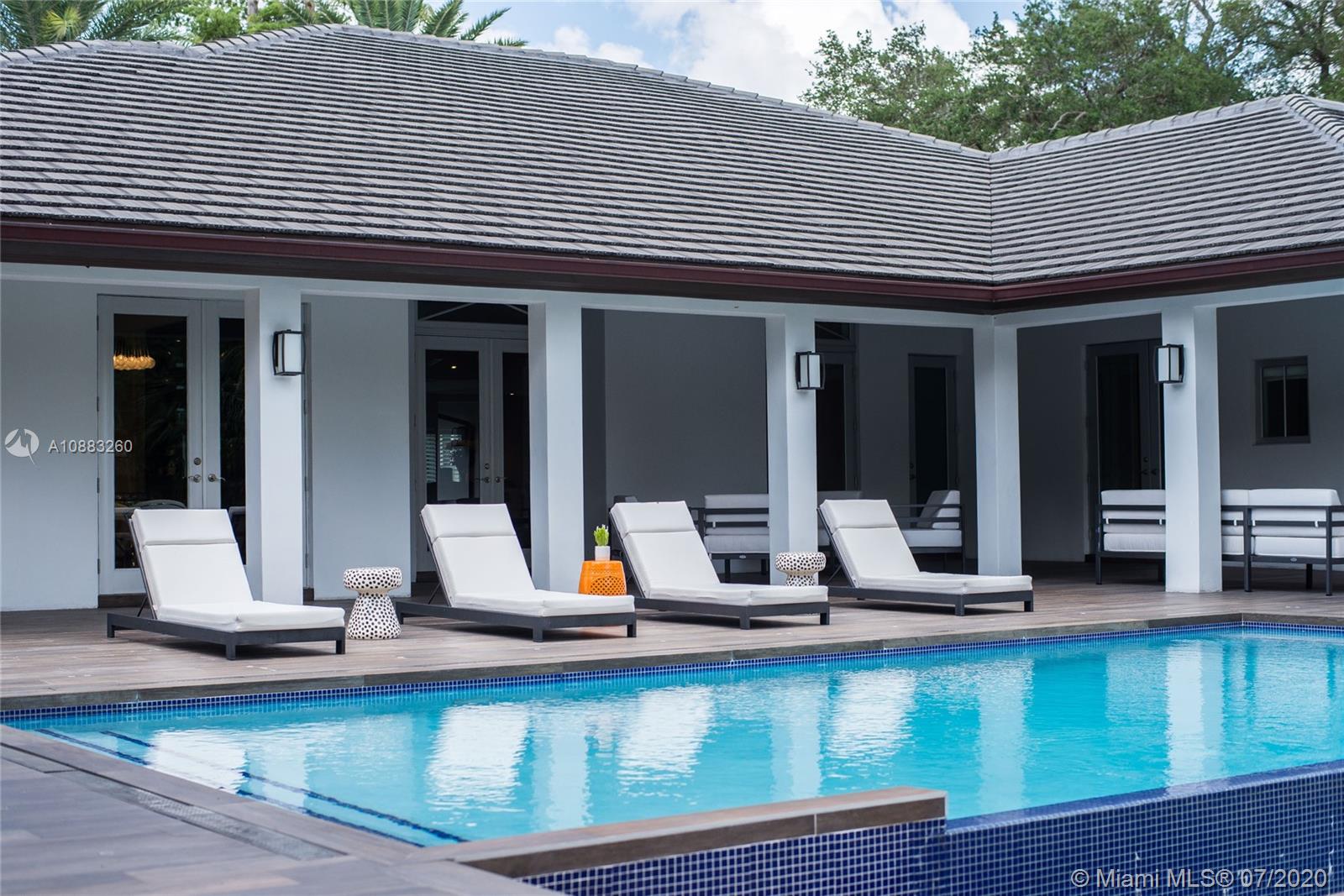 Completely updated in 2016, this stunning Coral Gables home is a true gem. The foyer welcomes you into a spacious, light filled great room with 11 ft ceilings. The chef's kitchen overlooking the terrace and pool features a custom made breakfast table, Wolf range, Sub Zero appliances and cooking island. This 5 bed, 6/1 bath boasts porcelain floors, high ceilings and top of the line finishes.The Master bedroom has ample his/her closets, spa like Master bath leads and outdoor access to the outside terrace. Enjoy outdoor entertaining by the heated, salt water pool, complete summer kitchen, teak paneled outdoor shower and ample spacious covered terrace. The gated entry, full house generator, immaculate landscaping and 3 car garage complete this unique home.