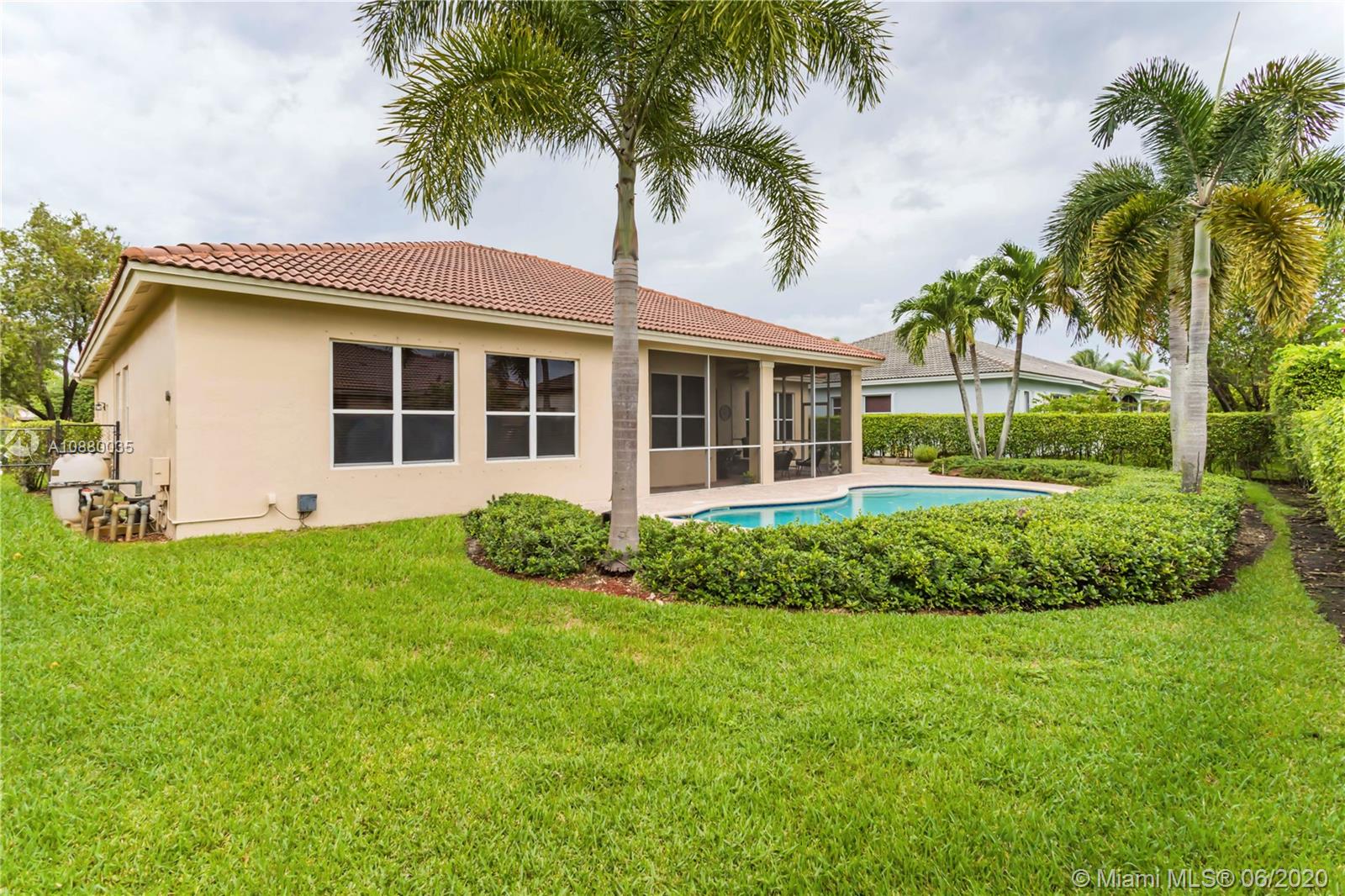 Impeccable one story home in the sought after community of Estates of Pembroke Shores. This 3 bedroom, 2 bath and a Den, which can be converted into the builder's 4th bedroom, is move in ready and well maintained. A/C is 2012 & water heater 2016. The desirable design features a split floor plan, master bedroom wing with double walk in closets and spacious master bath with soaking tub and separate shower, plus double vanities. The large kitchen with walk in pantry opens to an oversized family great room and dining. Outside the pool is surrounded by lush greenery along with a raised flower bed perfect for gardening. The extended pavers allow for plenty of entertaining area as well as a private screened porch perfect for a quiet evening. 24 hr manned guard gate.