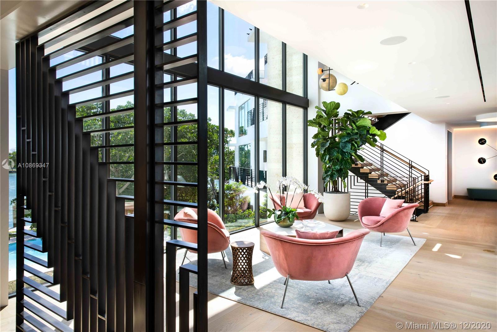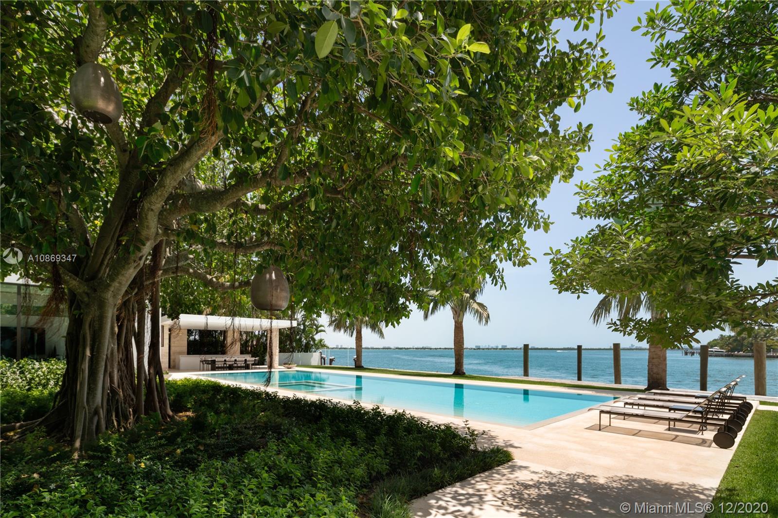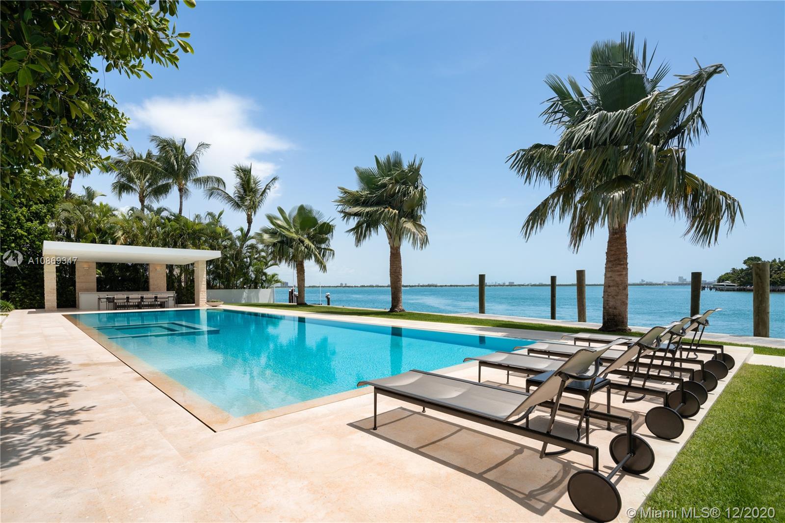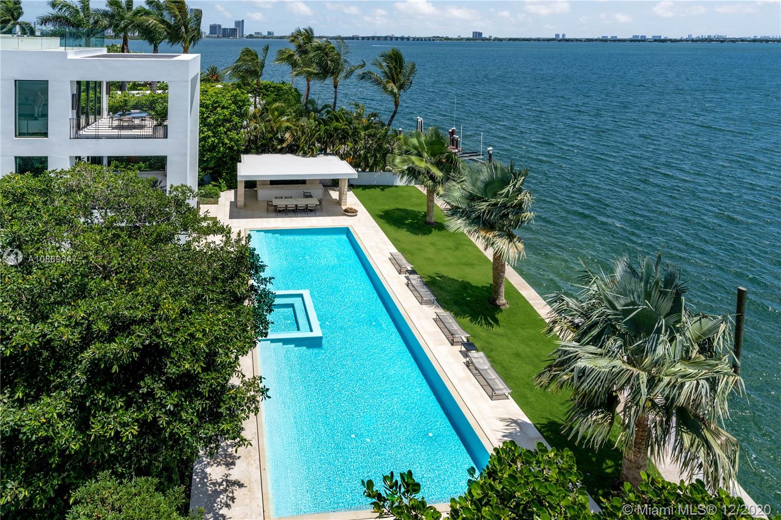 Completed in 2020. Positioned on a 26,500 sf lot spanning 208 ft of waterfront. 22,034 sf total area – total 15,560 sf under air with 6,474 sf of balconies and terraces. Spectacular roof top terrace with spa and wet bar offering 360-degree views of the bay and city skyline. Dufner Heighes provided both exterior and interior design integrating NY and Miami sensibilities. Dufner Heighes has successfully designed numerous projects throughout the Country and thoughtfully created a unique home on the Venetian Islands. Modern and understated furnishings surround unique features which create a panoramic, serene and exciting place to enjoy life.