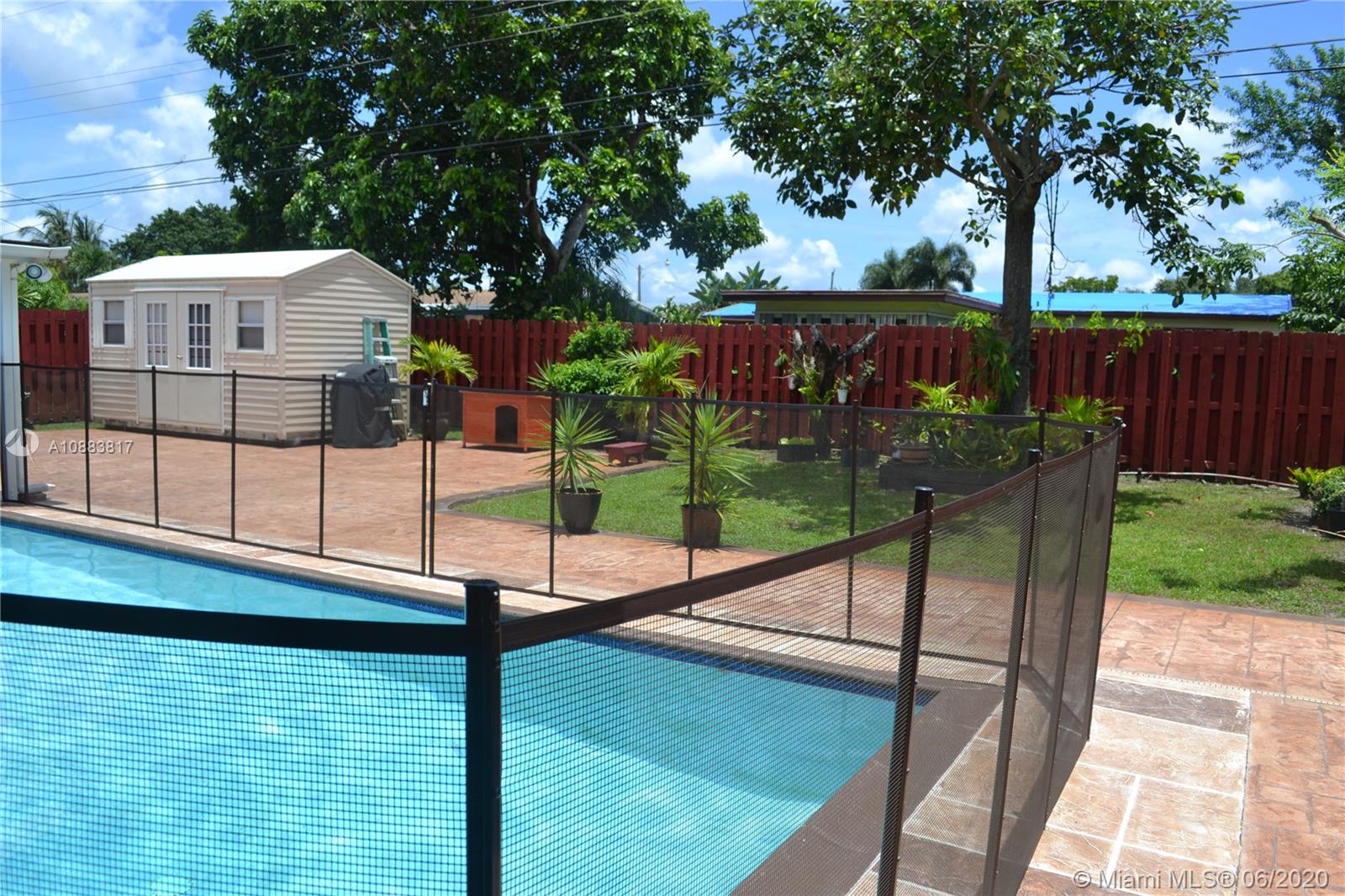 Come to see this beautiful 3/2 Single Family House with Pool in the Heart of Hollywood. NO Association.Enjoy a tremendous cemented patio with a metal roof terrace where you can enjoy the pool. Roof was replace this years (February 2020). Oversize Shed with AC.