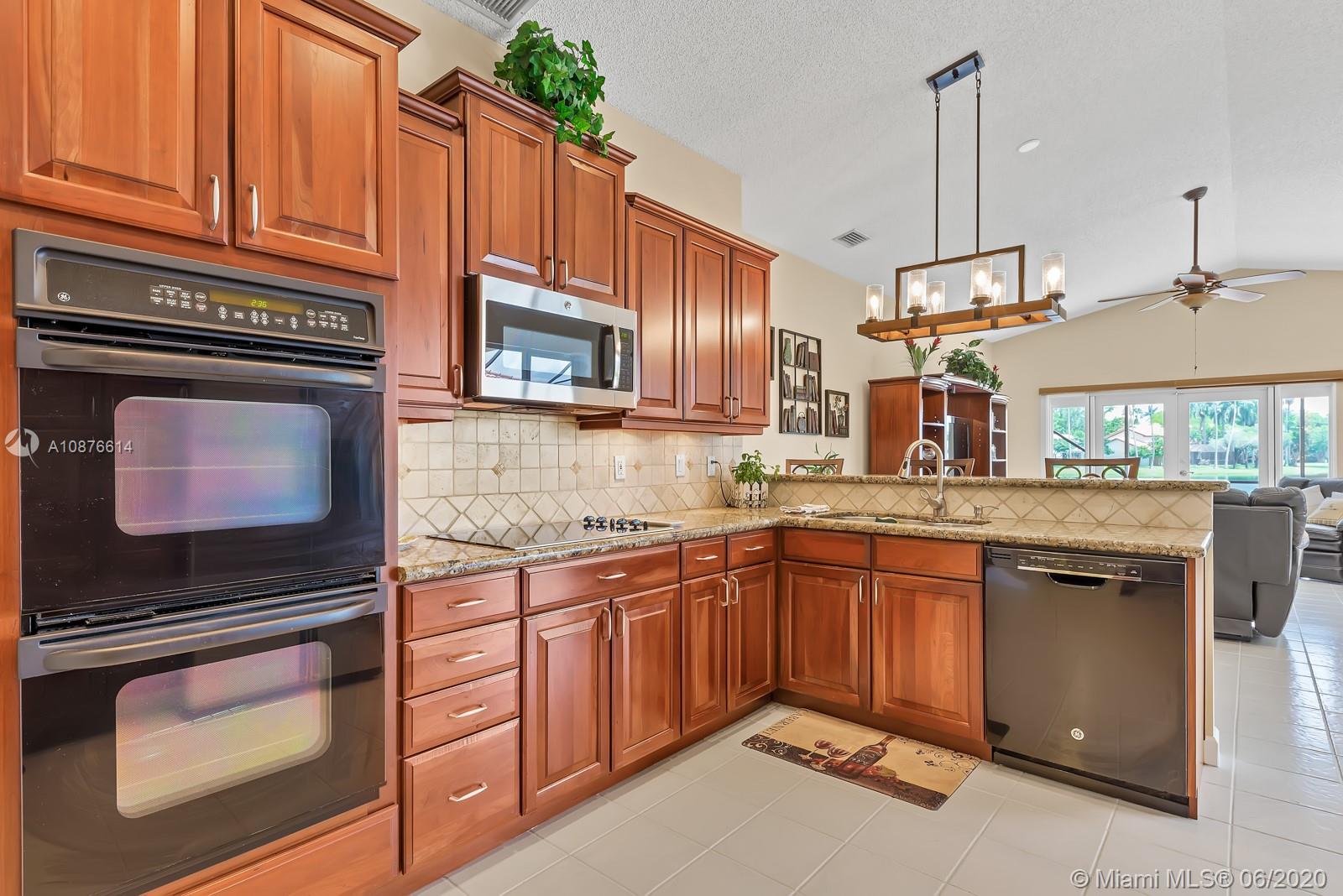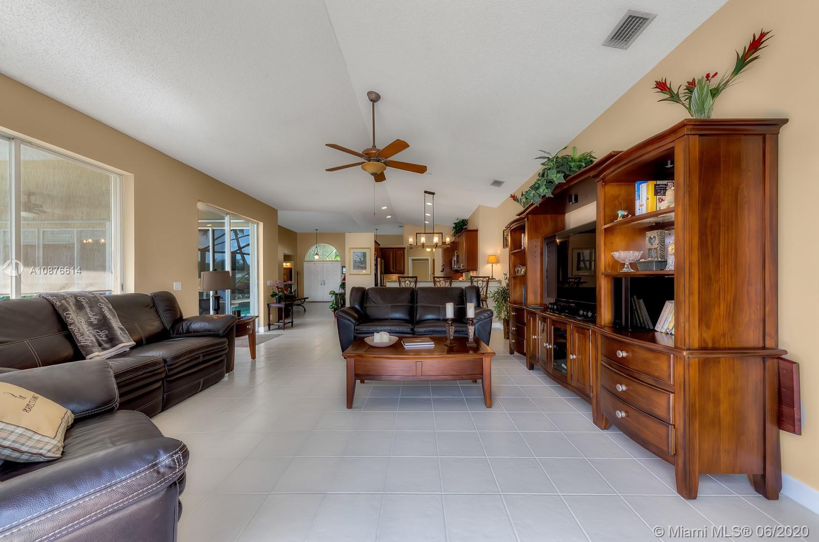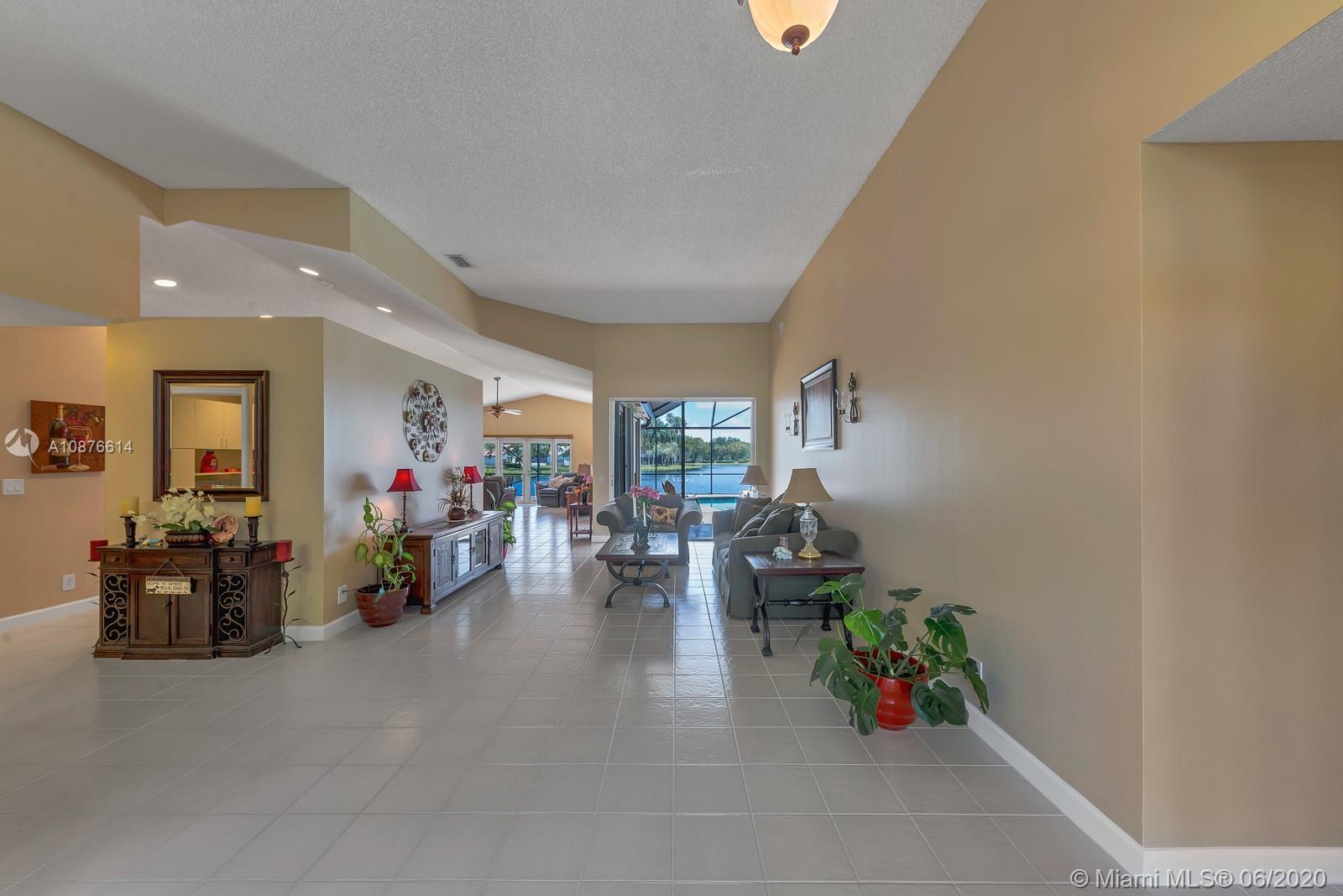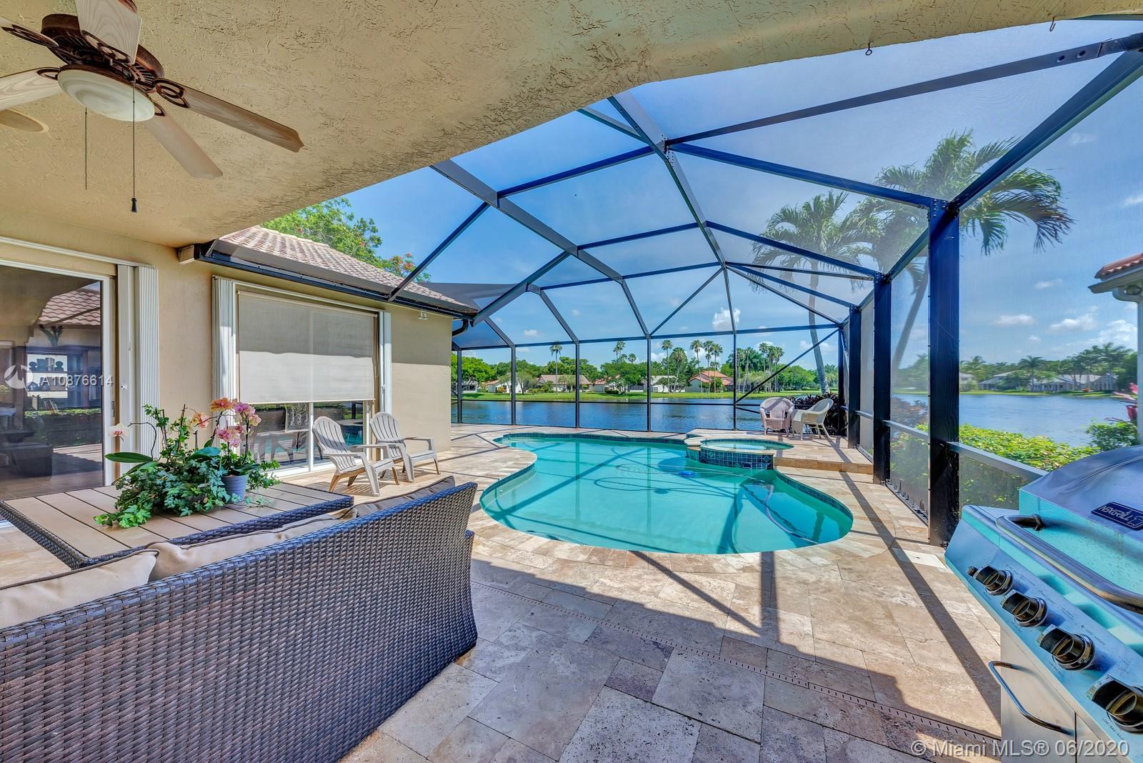 Move-in ready! As you walk into this exceptional home, you will immediately feel relaxed by the expansive, scenic lake view. Step out from any of the three sliding glass doors and enjoy the wrap-around deck area with pristine pool and new screened-in enclosure - perfect for entertaining and enjoying the Florida Sunsets. This house has the best lake view of the neighborhood. The open floor plan has the master bedroom on one side for complete privacy, two bedrooms sharing a bathroom on the opposite side of the house and a fourth bedroom with bathroom at the back of the house – perfect for a home office. This best kept secret in Weston is located in the quiet neighborhood of Waterford Landing with only 70 houses, walking distance to A+ Schools and Weston Town Center. Must see!