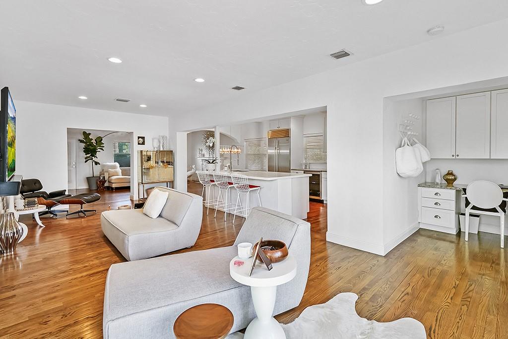 Magazine quality remodeled 3 bedroom 2 bath waterfront pool home in the heart of Las Olas. Vaulted dade county pine ceilings& wood burning fireplace in main living area. Walnut stained solid oak wood floors throughout. Chef's kitchen equipped with stainless steel Thermador gas range, Sub-zero refrigerator. White quartz island with seating for 4.Open floor plan kitchen ,dining & family room. Large master suite with big walk in closet. White marble walk in shower & floor , white quartz double vanity. Tropical water & pool views from master bedroom, living room & guest bedroom. Resort style pool overlooking the waterway & private dockage for your boat. Impact windows & doors, covered carport parking, paver driveway & pool area. Walk to dining, shops & the beach. Move in ready, must see!