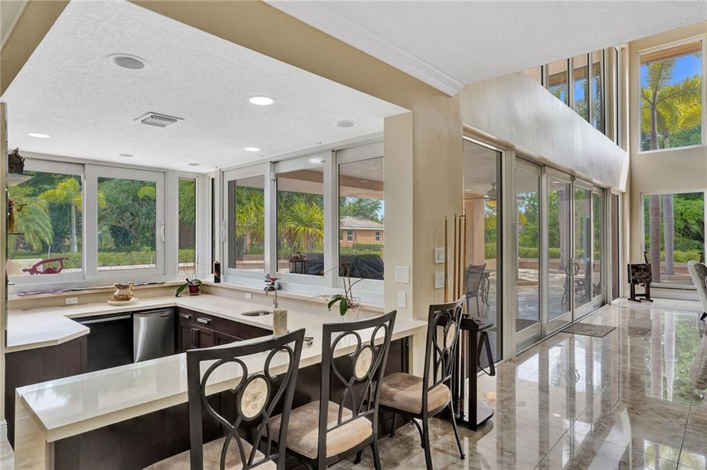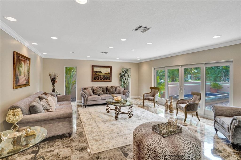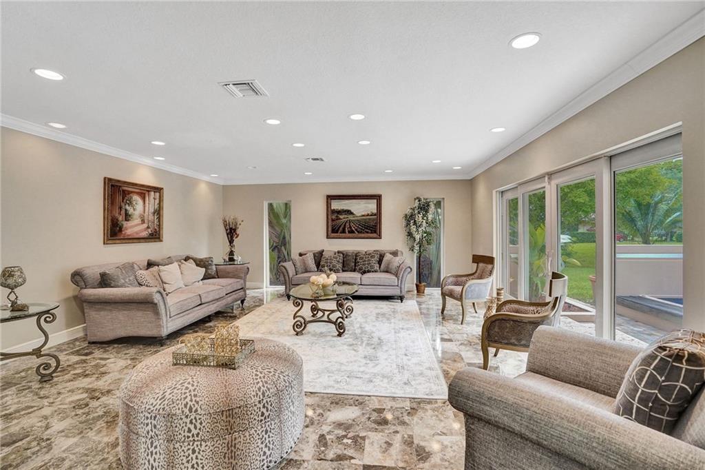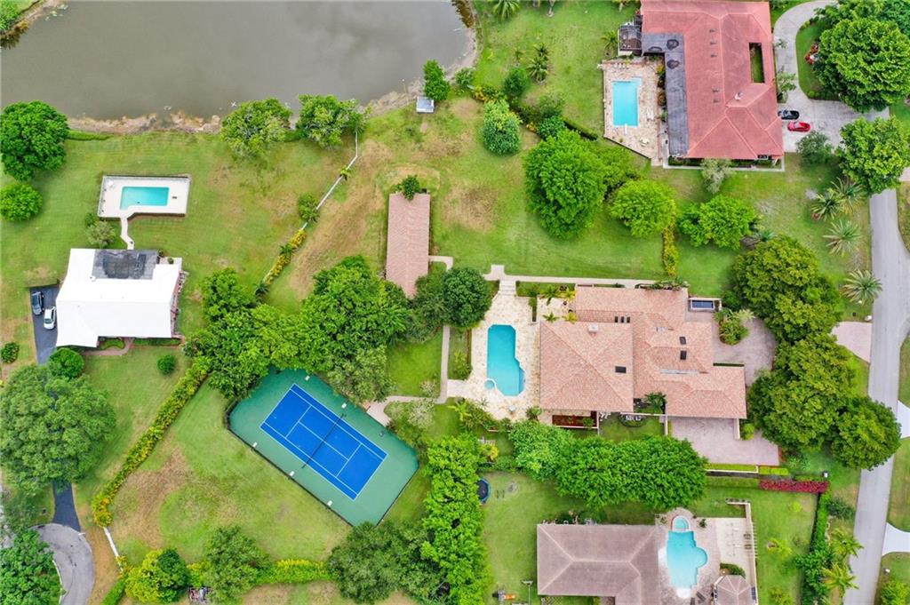 Spectacular Coral Springs lake front estate situated on a lush 2.37 acres with separate 2 bedroom 2 bath guest house, tennis court, and gazebo. Addition built and extensively renovated in 2007 the main home features a triple split 5 bedrooms, 4 and a half baths, and 4 bay garage. Gorgeous Italian marble throughout the main floor with hardwood on the second level. Showcase kitchen replaced in 2018. Modern media room, wine room, sauna, gym, bar, and billiards area. Huge resort style pool and travertine deck perfect for entertaining. Impact windows and doors throughout the home. Roof replaced in 2007. Estate is situated with access on 2 streets, the possibility exists to divide the parcel and develop another home. Visit www.4351nw101st.com to see the walkthrough video and more pictures.