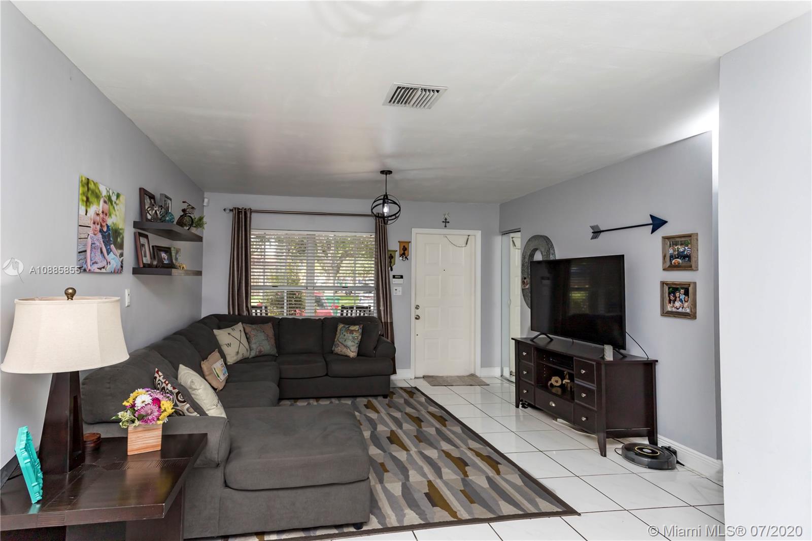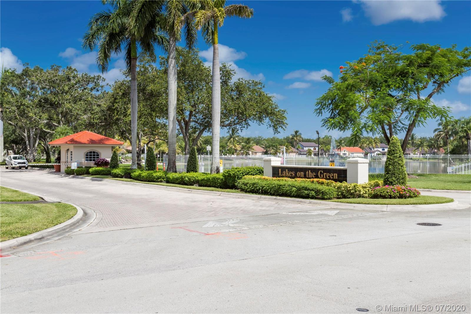 Welcome home to this charming 3 bedroom 2 bath home in the gated community of Lakes on the Green. The home opens to the living space and easily flows into the kitchen and dining. Featuring a split floor plan, the principal bedroom displays wide open windows providing plenty of light and its bath is ADA compliant allowing for extra open space. The previous owner converted the garage into additional under air storage with 2 walk in closets and washer & dryer space. Tankless water heater less then 5 years old and A/C is 2020 with Nest system. The community includes playgrounds and a 24 hour guarded gate and perfectly located off of 75 and near Miami Lakes with easy access to Dade and Broward.