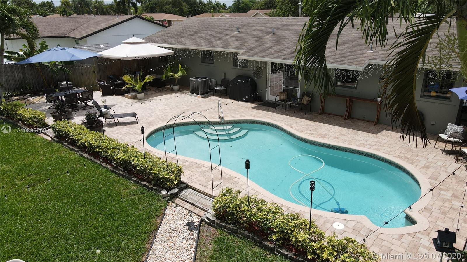 Back in the market, Buyer's loan didn't make thru. Beautiful, well maintained 3/2 home in the desirable NON-HOA Orange Tree Community, Davie. Waterproof vinyl floor throughout, crown molding in the living area. Custom kitchen with quartz countertop and stainless steel appliances - new dishwasher. Indoor and outdoor speaker and wifi smart thermostat to control a new AC installed late 2019 with UV light that purifies the air. Vivint security system with cameras (1 more year contract @ $60/month). Enjoy a freestyle saltwater pool with a new heater system in an oversize and fenced backyard, nice landscaping, including fruit trees. Keyless front door entry. Medium size shed with AC that can be used as an office, plus an additional shed for storage. Space to park your boat, trailer, RV,etc.