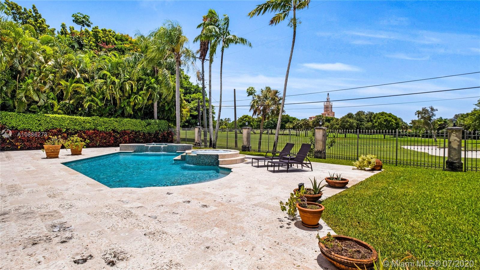 Exclusively located in one of the most desirable addresses in Coral Gables, wonderful views of the Golf course and the Biltmore Hotel, from the wide outdoor living space and from the Master bedroom, in the 2nd floor. Built in a lot of around 20,000 sqft, more than 500K dls have been spent in remodeling. Marble floors throughout the house, living and dining areas have marble floors with wood inserts that have an exquisite look. Golfer's paradise. Perfect to enjoy having guests, wide kitchen in open concept, Subzero fridge & Jenn Air appliances include a wine cooler for the entertainment lovers. Wide terrace has a pool and jacuzzi facing the Golf Course. This is a unique home in a unique location that is rarely available in the area. Adj. sqft is 4,363 as per recent update to the tax roll.