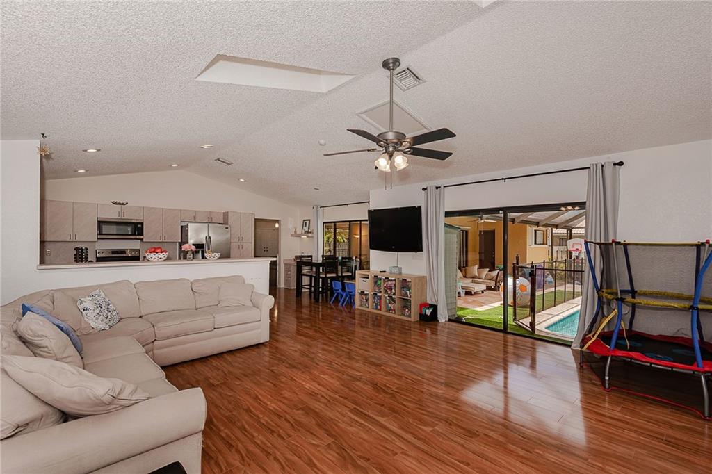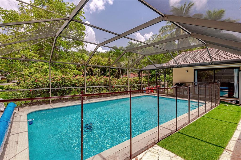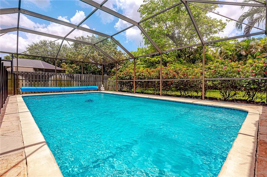 BEAUTIFUL 4/2 HOME IN NORTH CORAL SPRINGS. HUGE CORNER LOT. FEATURES KITCHEN WITH STAINLESS STEEL APPLIANCES. VAULTED CEILINGS. WOOD FLOORS IN KITCHEN & FAMILY ROOM WITH SKYLIGHTS. FORMAL DINING AREA. SPLIT BEDROOM FLOOR PLAN. MASTER BEDROOM WITH 2 CLOSETS, ONE A WALK IN CLOSET. MASTER BATH HAS DOUBLE SINKS WITH GRANITE COUNTERTOPS & CABANA DOOR. SCREENED IN BACK PATIO TO RELAX, WITH SALT WATER POOL & CHILD GATE. SPACIOUS FENCED BACK YARD FOR KIDS TO PLAY SAFELY, HOST PARTIES, DO BAR-B-Q OR SIT BACK & PLAY MUSIC. BARREL TILE ROOF - 2006. A/C - 2014. HURRICANE ACCORDION SHUTTERS. BRICK PAVERS ON DRIVEWAY. PARK CLOSE BY FOR EXERCISE. 'A' RATED SCHOOL (STONEMAN DOUGLAS). HOUSE ON HOSPITAL GRID. QUIET FAMILY FRIENDLY NEIGHBORHOOD WHERE EVERYONE CELEBRATES MAJOR HOLIDAYS TOGETHER. NO HOA.