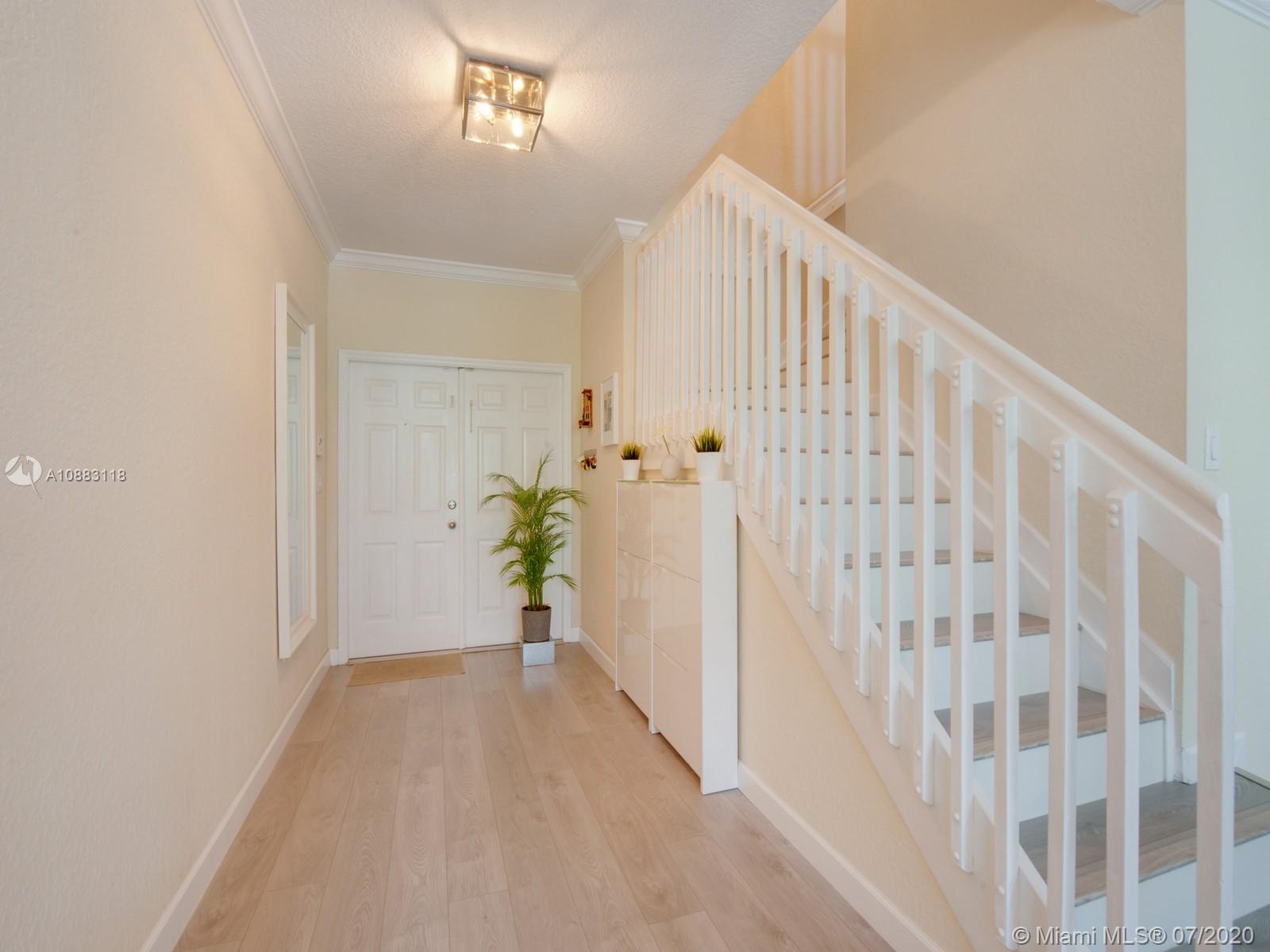 Stunning open spaces for this entirely remodeled & freshly redesigned home. Neutral tones & light grey wood floors bring a sense of well-being & serenity. Enjoy a glass of wine at the bar w your friends while cooking or spend time relaxing in the peaceful green outdoor patio. Large pantry room & dedicated laundry room on your way to the 2 car garage. Up through the elegant white wooden staircase, a pleasant foyer accommodates a large yet invisible built-in linen closet. The spacious & relaxing Master BR gives way to a bright bathroom w double vanities, shower & whirlpool tub. Three comfortable bedrooms complement the 2nd floor along w/ a 2nd bathroom featuring a tub. Enjoy the world-class amenities of famous Doral Isles Club - pools, spas, tennis, basketball courts & gym. Priced to sell.