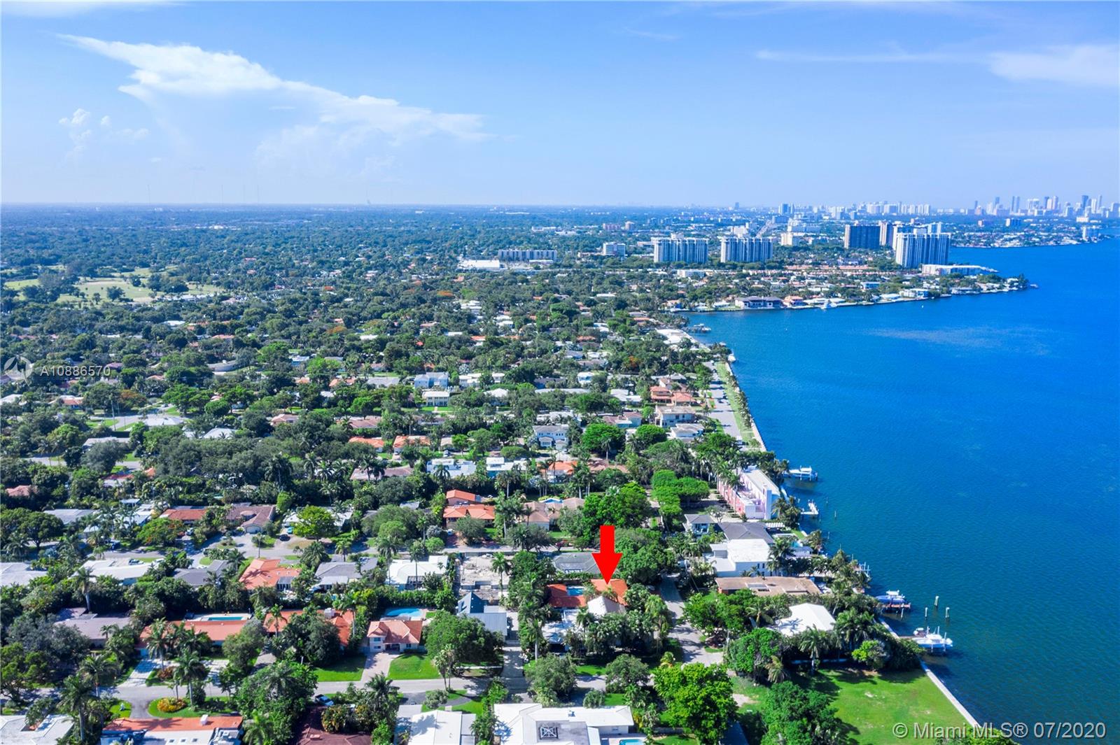 Sun-filled and airy 3/3 Florida home with large windows built around glistening swimming pool across the street from Biscayne Bay in serene East Miami Shores location. Sprawling one-story home in excellent overall condition. Interior features open spaces amenable to indoor/outdoor living, marble flooring throughout, large bedrooms, master suite with luxurious updated bath. Landscaped to perfection to create a private tropical oasis. One of the least expensive homes in this outstanding part of Miami Shores.