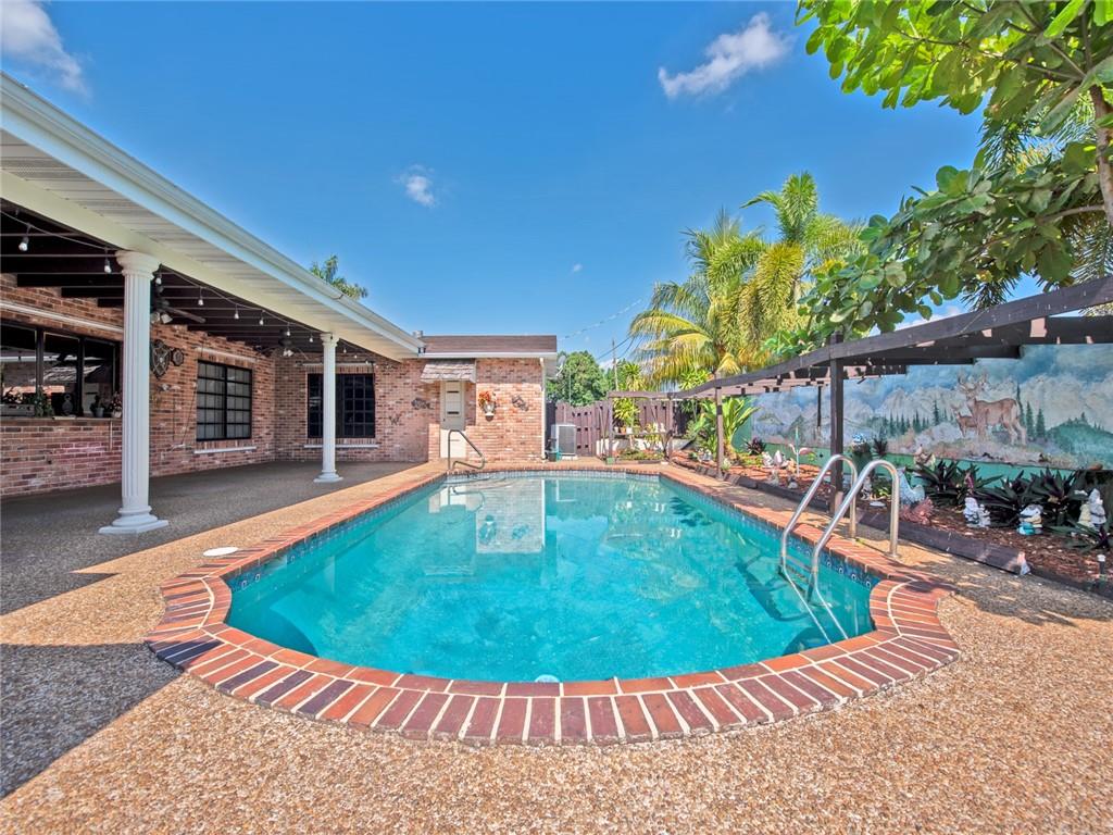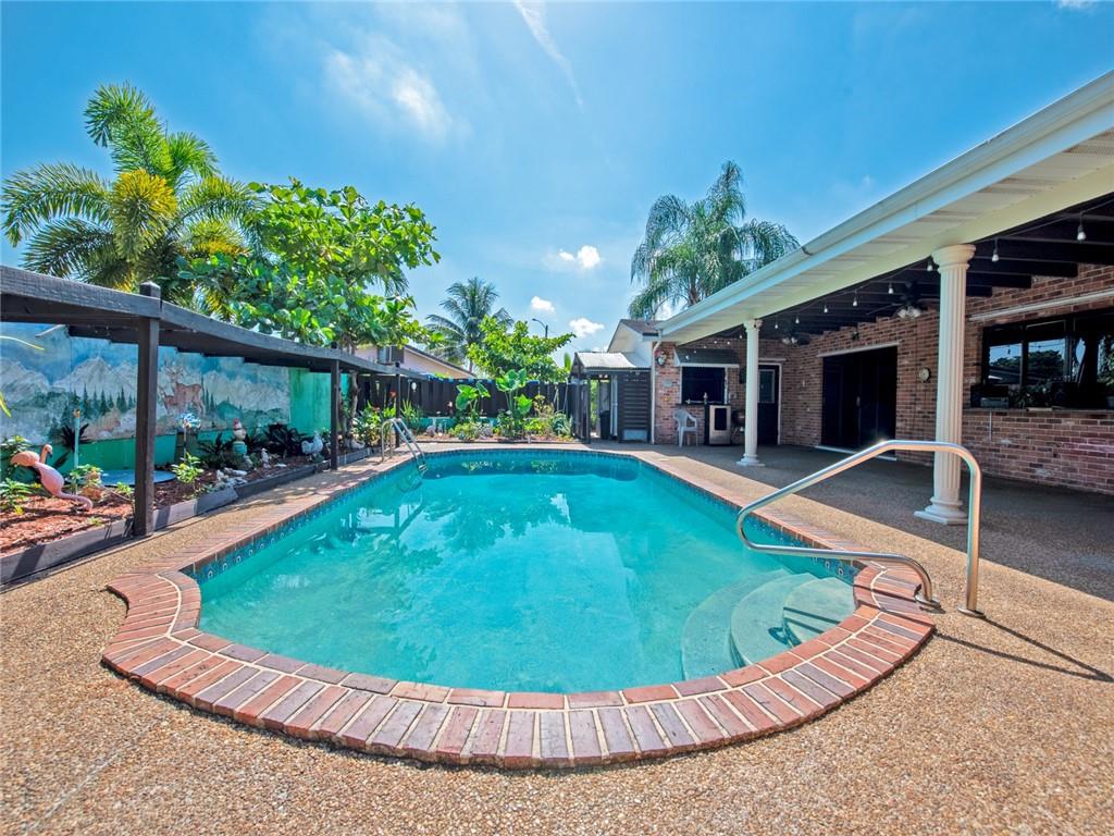 THINK SUMMER Swim in your own pool while your steaks are grilling on the BBQ and you sip your lemonade! Lush tropical landscaping, harvest your own garden, 6ft privacy fence on side of home. Original builders home reflects quality waiting for your personal touches. Neutral warm earth tones, bedrooms feature new paint & carpet, wood like tiles, original mosaic bathroom tiles, lots of upgraded closet space, pine wood detail nice touch, spacious floor plan, family room, large bedroom and kitchen open up onto pool patio. For the family lifestyle you deserve, You'll be the winner with this. GUARANTEED JACKPOT!! 100% centrally located