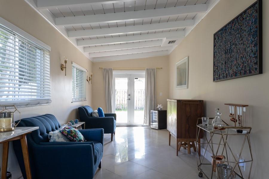 Perched on a corner lot on a quiet tree lined street we welcome you to Home Terrace. Here you will find an open concept living space with beautiful marble flooring. The kitchen has been remodeled and features ss appliances, granite countertops and opens to the comfortable living area. An additional family room accommodates easy living and from there doors lead you to a fenced in backyard with a lovely patio. The outdoor space is inviting and perfect for entertaining, relaxing or just fun and features a new pergola. The indoor is bright and light. Split bedrooms and remodeled bathrooms. Turn key with Impact windows and doors make it all hurricane prepared. Situated minutes to the beach, downtown, golf and everything else South Florida has to offer. We welcome you to Home Terrace!