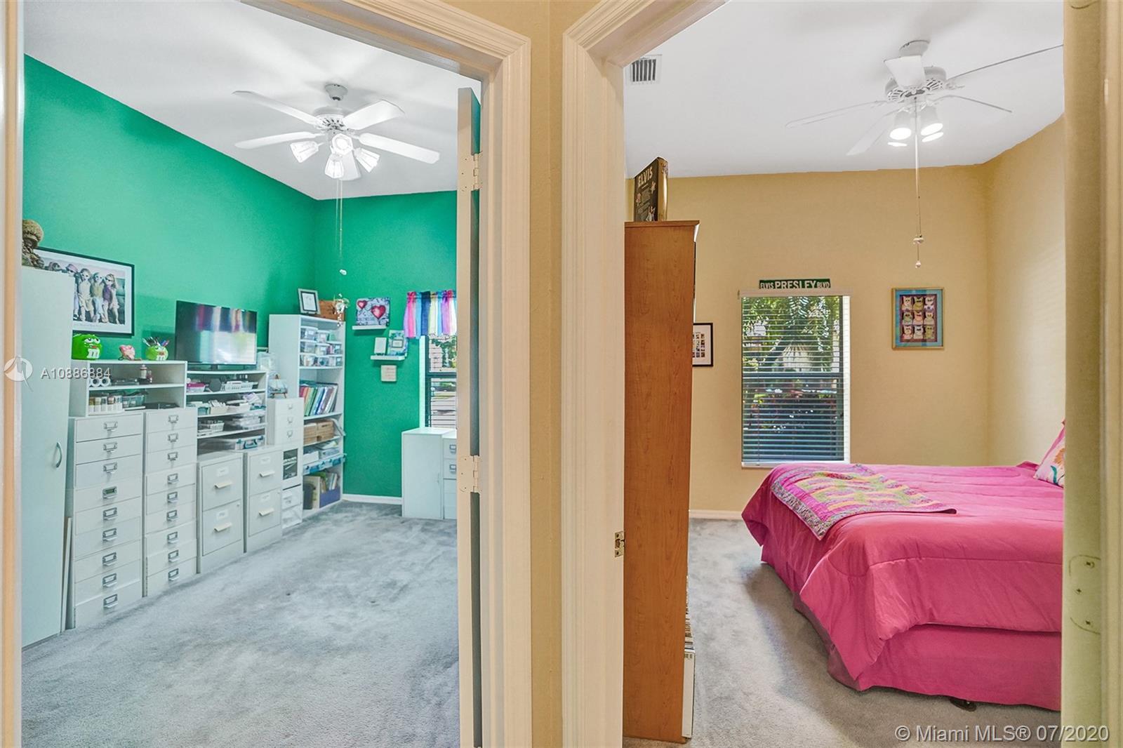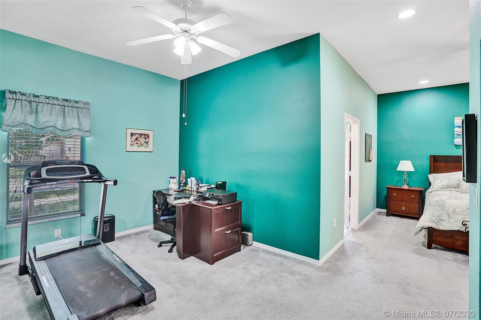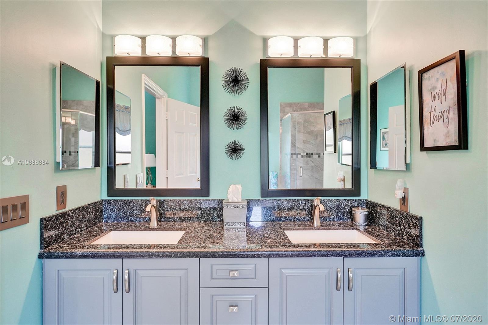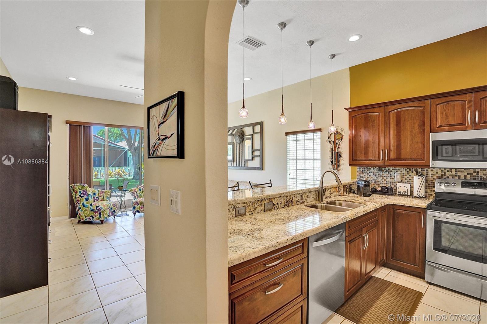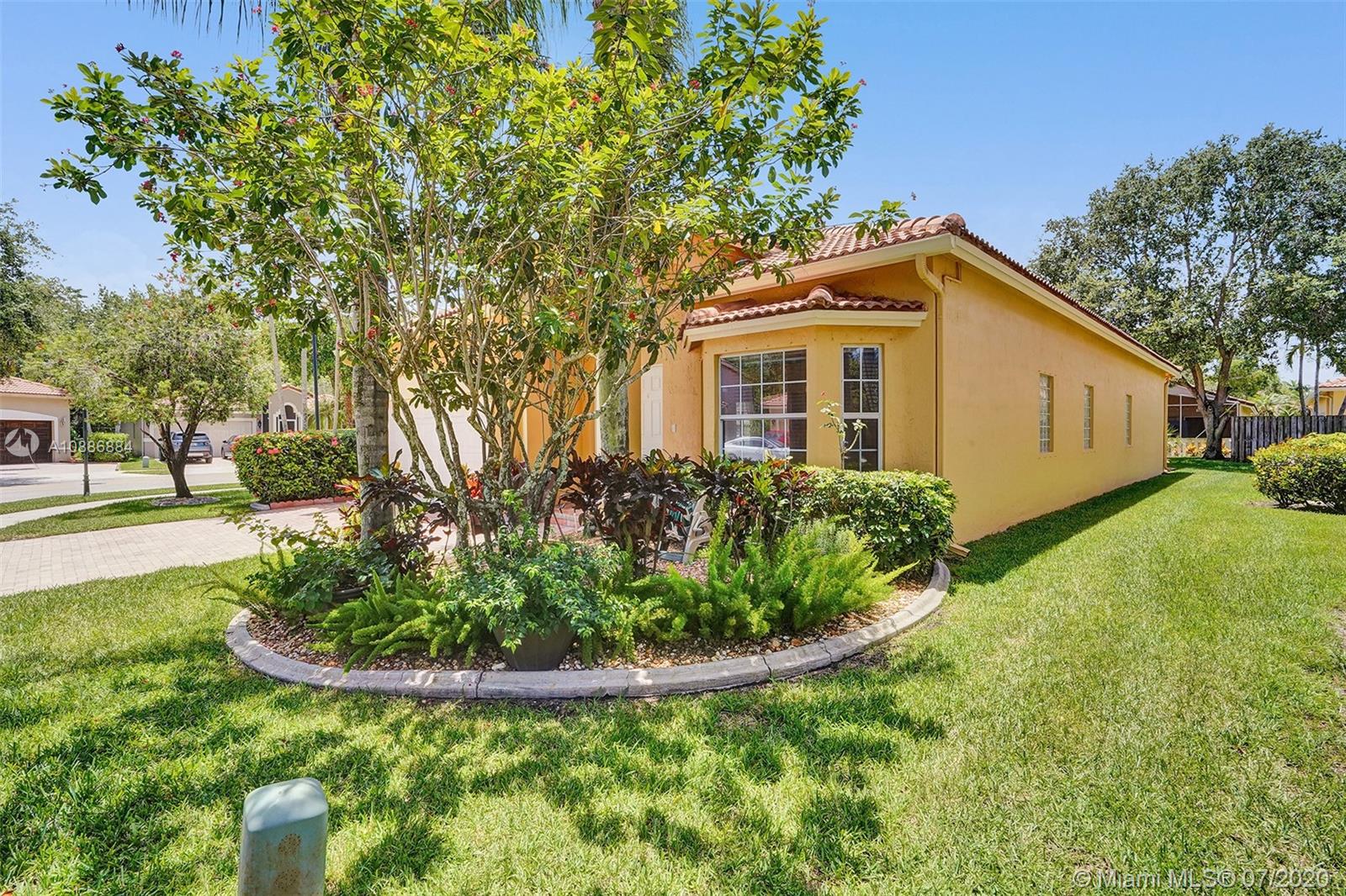 Builder modified 3 Br + Den; ideal for nursery, office or exercise. Meticulously kept home on fantastic corner lot with option to fence. Unique & spacious floor plan boasting 10 ft ceilings, updated interior shows pride of ownership featuring a recent custom-built, maple wood & cherry finish kitchen cabinetry with deep storage, soft close & pull-out drawers, beautiful stone counters & stainless appliances. New bathrooms, quality wood cabinetry, stone counters, hardware & tile work. Additional features include; Led lights in the living area, blown glass light pendants, blinds, storm panels, impact garage & front door, 1 year old exterior paint. Best amenities; pool, gym, 24/7 gated access & security. Maintenance includes lawn irrigation & cutting, cable TV+ Internet @ 1 GB speed