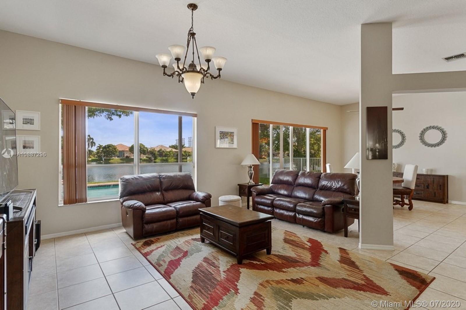 Looking for a prime located single home with pool, lakefront views,& priced to sell? Say no more, this wonderful one story featuring a 4 bedroom 3 bath house on an oversized lakefront lot, features a stunning backyard with pool in which to enjoy morning sunrises, gatherings, and tranquil evenings. Brand New Roof! This home has an expansive triple split floor plan, ceramic tile and new faux wood flooring throughout. NO Carpet! The large kitchen provides plenty of storage with SS appliances, kitchen island, space adjacent to dining room,living room, are perfect for entertaining, & provide a clear view of the lake. With a low monthly HOA,amenities include manned gate, basic cable, alarm, playground and tennis courts! Don't miss the chance to make this gorgeous house, your home!