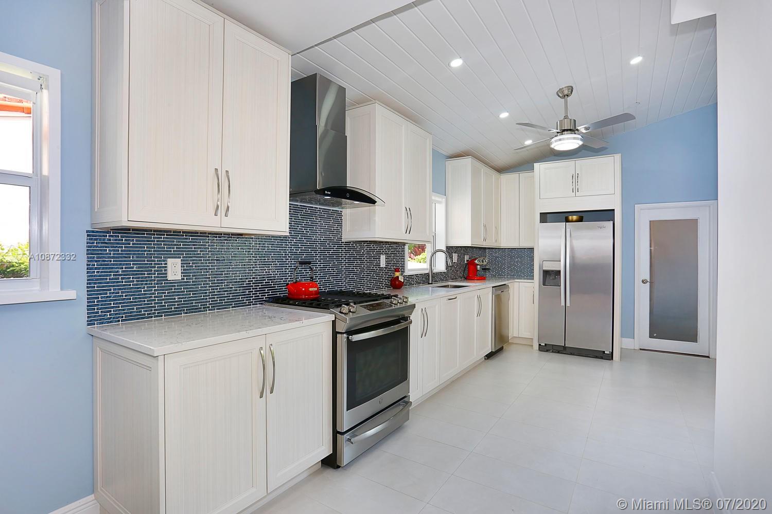 Lovely home with a MiMo vibe in a quiet Miami Beach neighborhood, just steps from the La Gorce golf course. Light-filled interior spaces include living/dining & Florida room with wood flooring, fireplace and volume ceilings. Total renovation + expansion including new: roof, impact glass throughout, HVAC, washer/dryer, tankless water heater & much more. Stunning kitchen features custom cabinetry, quartz countertops & stainless appliances (including gas range ). Master suite offers new european-style bath with glass enclosed rain shower w/ jets. Enjoy ocean breezes from the expansive & private garden with custom pergola & outdoor kitchen. Total SF living area ~ 1780’( per owner). Bike to the beach and minutes to South Beach’s world-class shopping & dining.