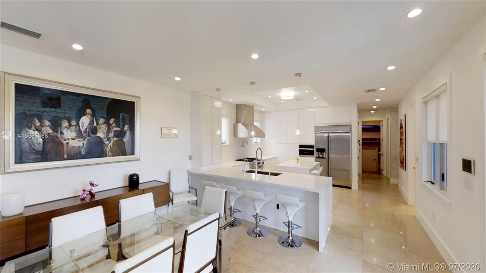 COME AND LIVE IN A LUXURIUS & MODERN 2 Story smart Waterfront home located on private Cul de sac in exclusive guarded and gated Keystone Point just 5 minutes from Bal Harbor and the beaches. 5 Bedrooms, 6 baths and 1 office. Great floor plan (4 bedrooms upstairs, 1 bedroom & office downstairs). 2 Car garages, for 4 cars (one garage with AC) impact windows and doors, high ceiling and a lots of natural light. 75 ft. on water with a bridge to bay. 45 ft dock with 2 lifts one for large boat and one for small. SS Appliances, Kohler home gas generator,Great for outdoor entertaining, gazebo, summer kitchen and heated pool, beautiful view.
