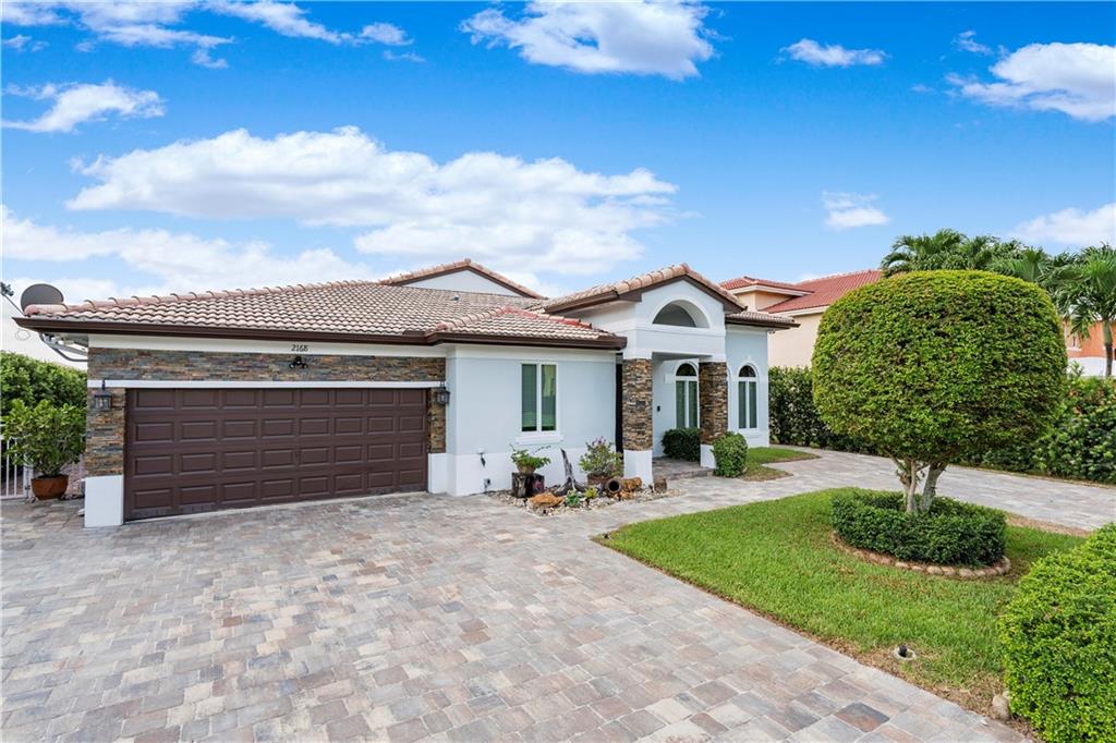 Fully updated lake front home in the gated community of Monte Carlo. Home features 4 bedroom 3 baths and a 2 car garage on large fenced lot. Heated salt water pool featuring a large travertine deck and A full outdoor kitchen featuring a covered area with a concrete pizza oven. The interior has been fully redone including spa like master bath with free standing tub. Water proof laminate flooring. The kitchen has stainless steel appliances with granite counter topS. There is also a mini split unit for the master bedroom. Attic has also been insulated with spray foam keeping the home cool in the summer. Impact windows installed in the entire house and additional accordion shutters on the lanai area. Transfer switch for a generator hookup as well. Walking distance to Coconut Palm Elementary