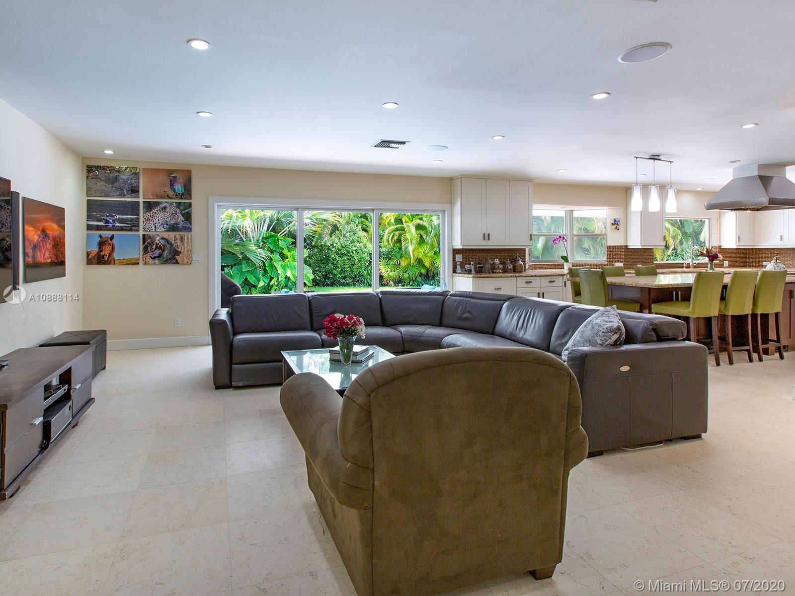 Very special family home inside a cul-de-sac in the heart of Pinecrest within walking distance of all 3 Palmetto schools. Beautifully, tastefully and expensively totally remodeled by Hollub Homes in 2007 with the kind of dream kitchen/family room you would find in $2-$4 million dollar properties only. Great floorplan with split fifth bedroom plus a bonus room/office/media room. Brand new 2020 septic tank and drain field. Impact glass and PVC pipes everywhere, lush and lively landscaping with beautiful pool/patio, indoor laundry room, storage shed, security cameras, sound system, and more!