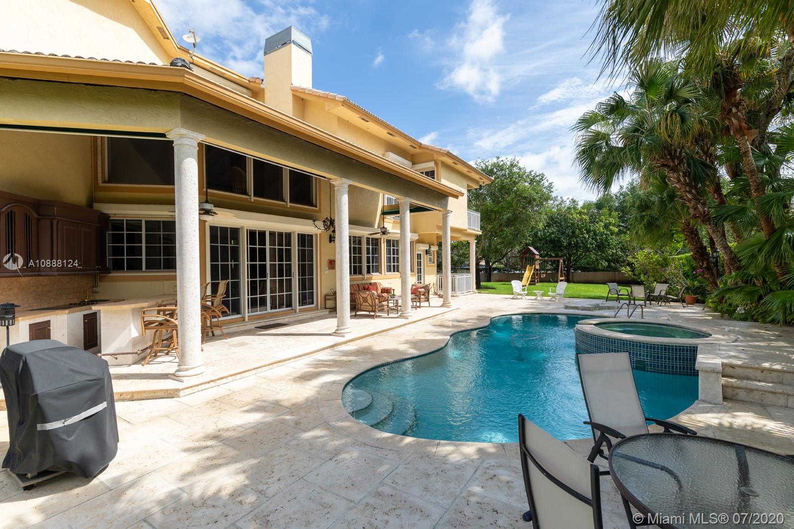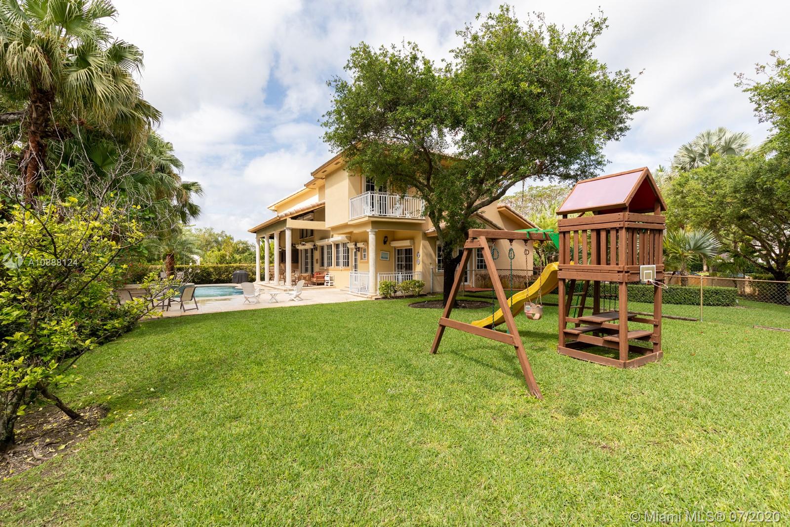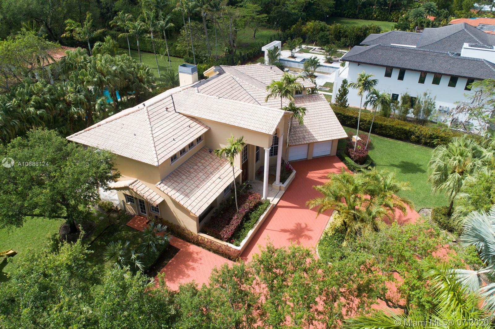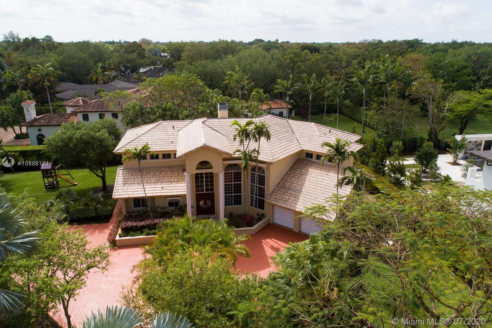 PRIME PINECREST LOCATION! Set back from the street in North Pinecrest and surrounded by manicured gardens and mature trees is this hidden gem of a home with spacious living and entertaining areas, large kitchen with plenty of storage and prep areas and two full bedrooms on the lower level which offers a wide array of possibilities for a family looking for a home to accommodate staff or elderly parents. Upstairs is a second family gathering area, two family bedrooms both with access to a lovey terrace and the master wing with it's own private office, oversized master bath and his and her closets. The outdoor covered patio is complemented by the lovely pool and spa and plenty of grass for the kids and family pets to play. Over 1/2 acre lot, two car garage and lots of parking for your guests