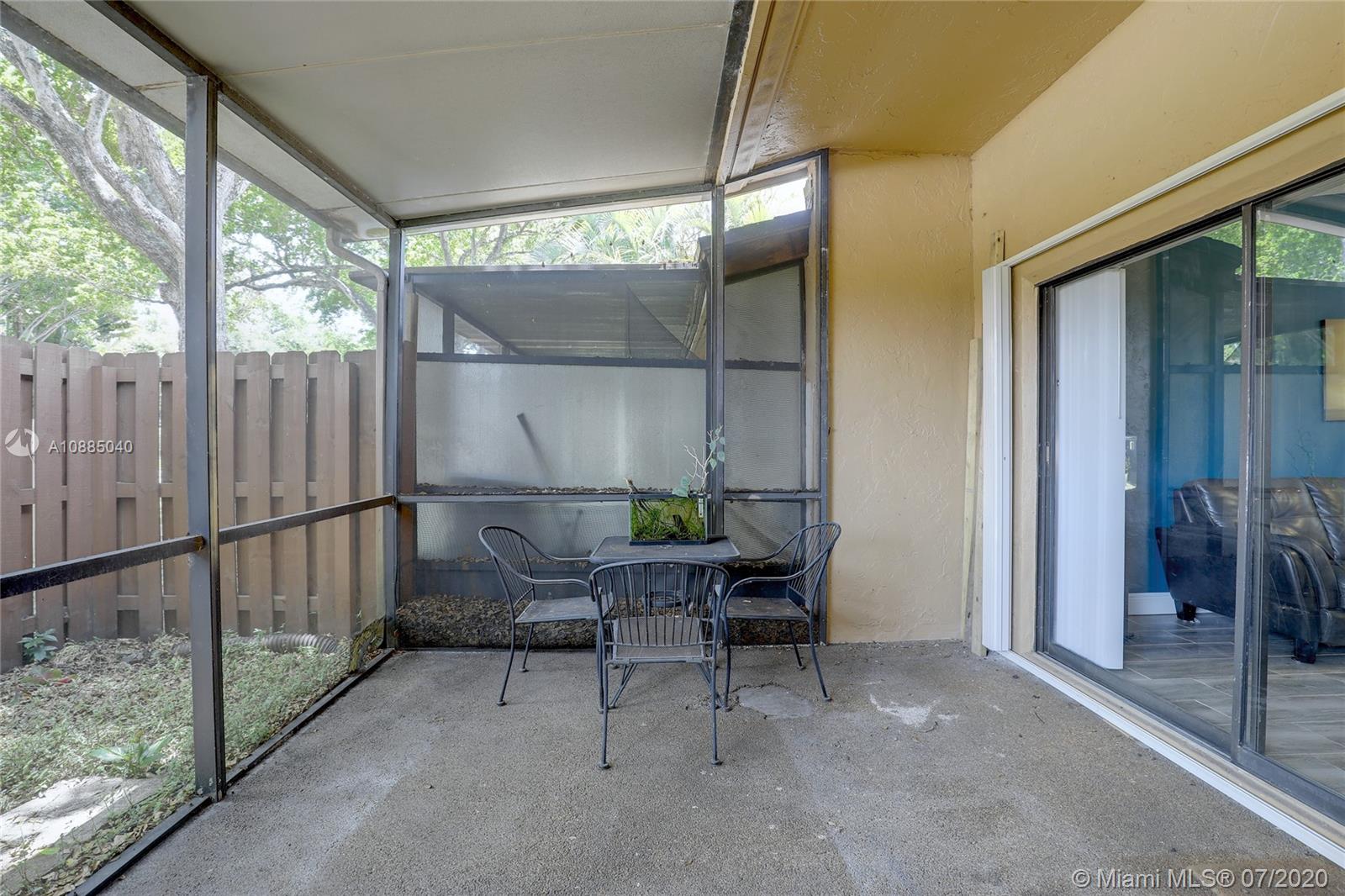 This updated 2 bed, 2 bath with a large den, and center garden area is perfect for relaxing after work or entertaining with friends. The kitchen has new cabinets with granite countertops and beautiful tile floor throughout the open living area. Ceramic floors 2015, renovated kitchen with new appliances and granite countertops 2015, ceiling popcorn removed 2015, master bathroom renovated 2018, Atrium deck area With turf 2020, Bookshelf in den 2015, and tool shed inside the screen area 2019, Smart AC thermometer Nest upgraded 2019. Heater 2017, There is a private screened-in porch and small grassy area for 4-legged family members. Backyard fence 2017.