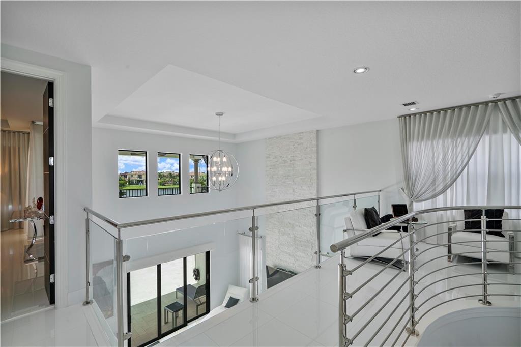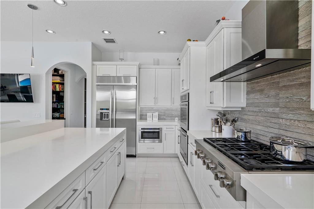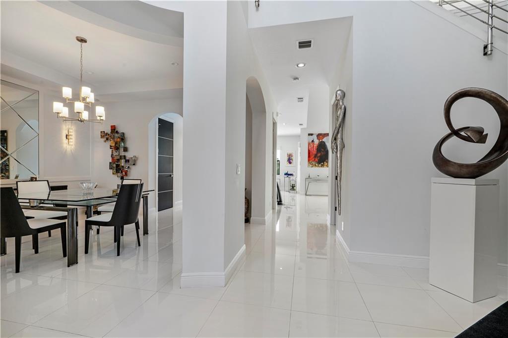Move right into this 5 bedroom, 4 1/2 bath pool home on water in Parkland Golf and CC community. Home has very spacious driveway and gated front porch. 24" white tile throughout living area. Gourmet kitchen has waterfall quartz counters, onyx, illuminating center island and Jenn Air appliances, gas stove and all soft close cabinets and drawers. Rock wall feature in family room, under the stairs library, surround sound throughout, remote shades, impact windows and doors, wired for smart house, outside security cameras, led lighting, lots of built ins, solid espresso doors with Emtek hinges and handles, glass panel on stairway with chrome tubular railings. Privacy fenced yard with salt water pool/spa. Please see Virtual Tour https://my.matterport.com/show/?m=8usL1TbKgF8&brand=0