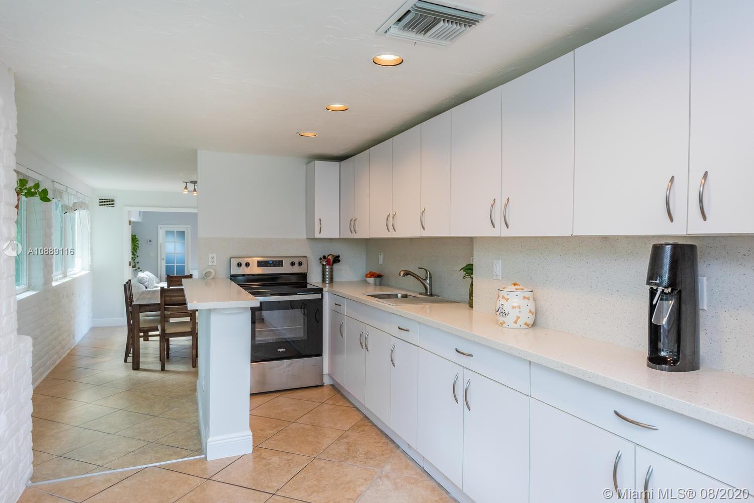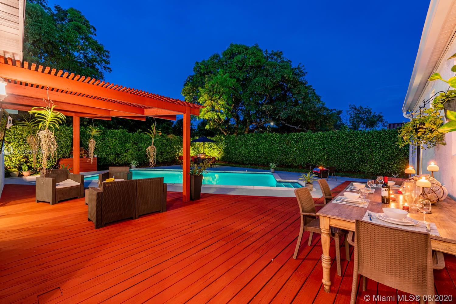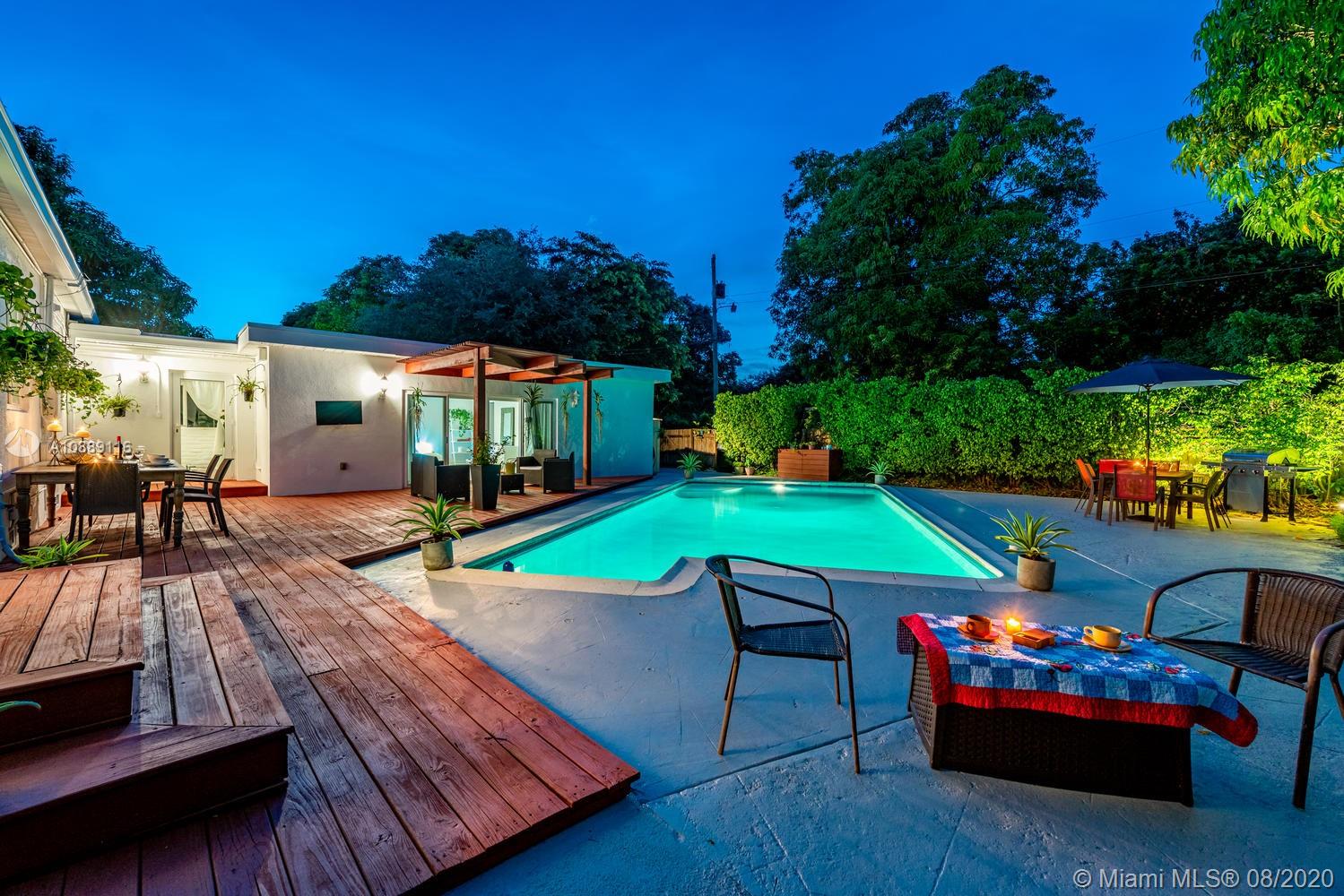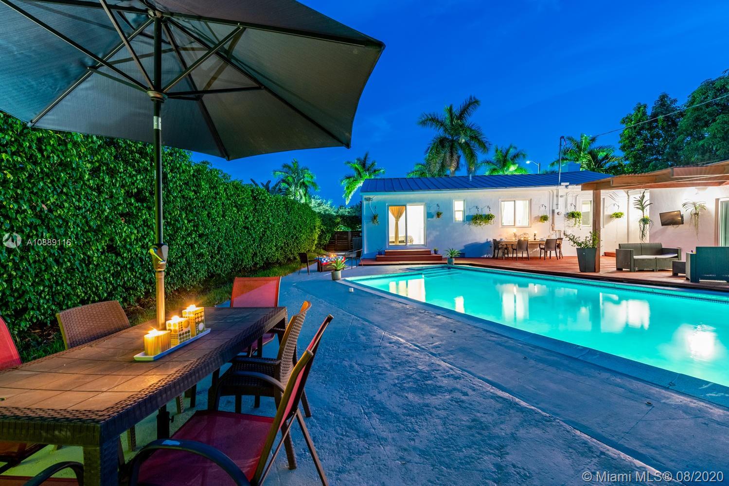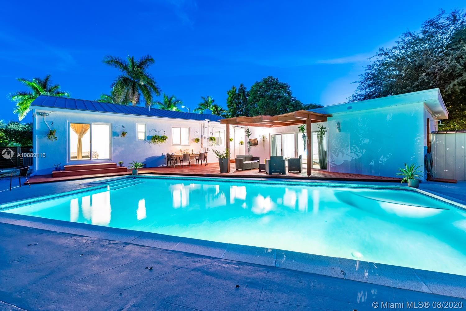 1931 sq ft under air Welcome to the Splash Retreat! One look at this updated, sprawling Miami Shores pool home and you’ll be ready to jump in! Live like you’re on vacation with a sparkling pool and multiple outdoor areas for dining, entertaining and fun! Inside, enjoy the bright spacious living room with fireplace and split design for everyone’s privacy. One wing with airy dining room, elongated linear kitchen with new quartz countertops and large master suite retreat with double French doors to the pool deck- perfect for slipping out for a midnight swim! The other wing has 3 guest bedrooms (one used as office) & separate full laundry room. Updates galore: impact everything, metal roof, electric, plumbing and new septic. All in Central Miami Shores location, so get ready to make a splash!