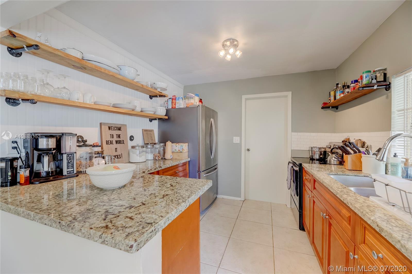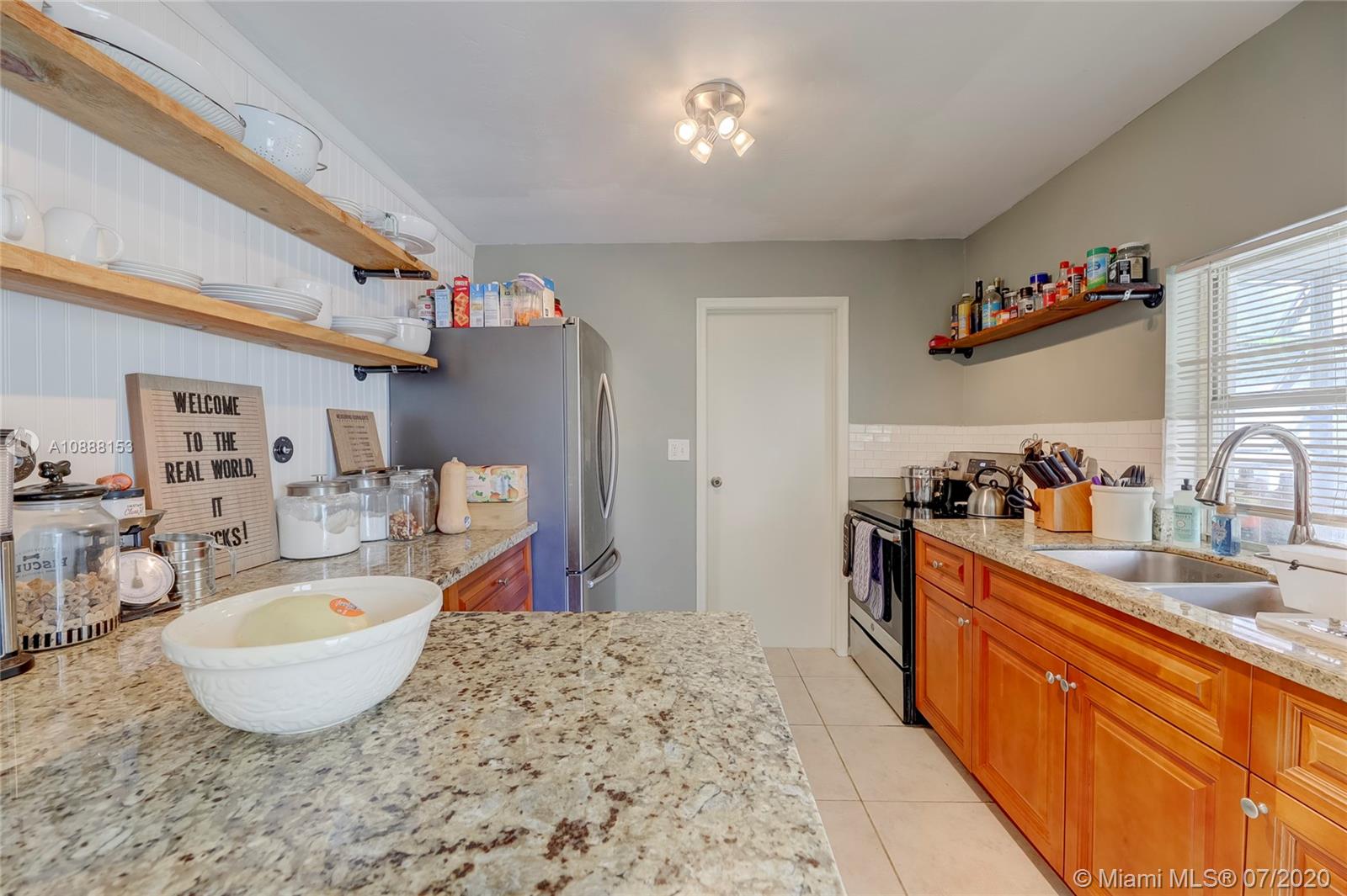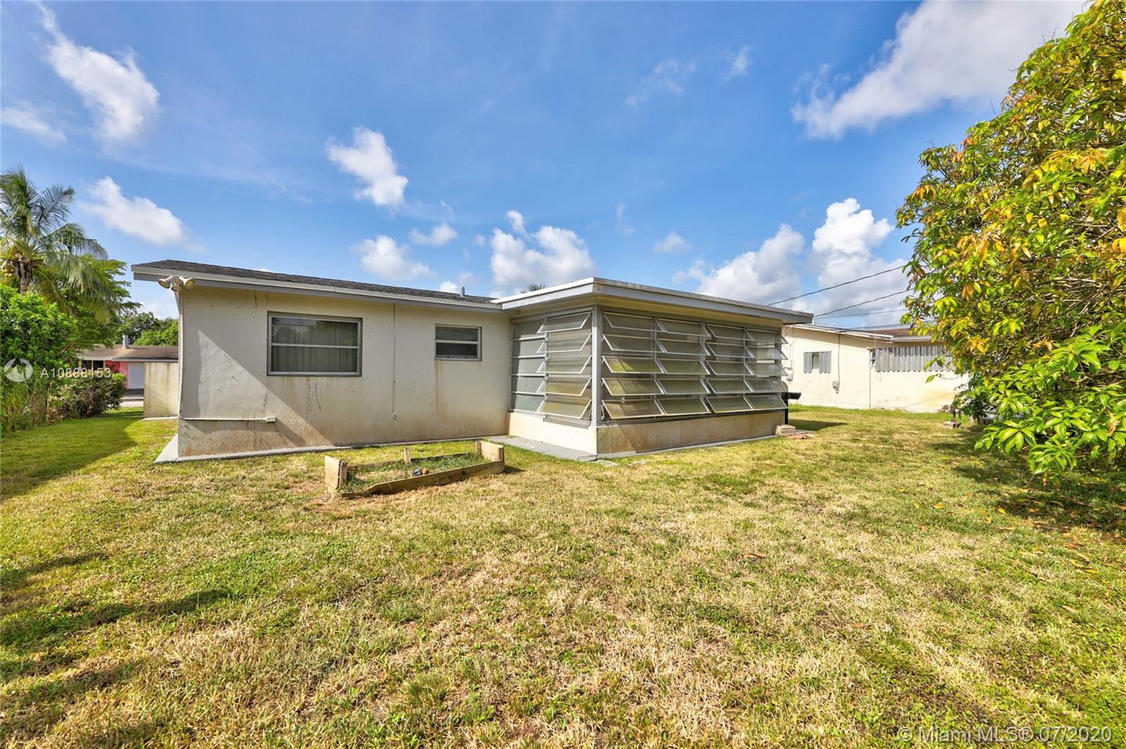 Fantastic 2 bedroom 1 bath single family home in Sunrise Golf Village. No HOA! Roof 2012. AC 2011. Updated tile flooring. Open layout. Large kitchen featuring wood cabinetry, exposed upper shelving, granite counter-tops & stainless steel appliances. Bathroom has tub/shower w/ updated vanity & framed mirror. 1 car garage, spacious backyard with mature mango tree. 6200 sq ft lot. Square D Electrical panel. Ample space to park boat/RV/trailer.