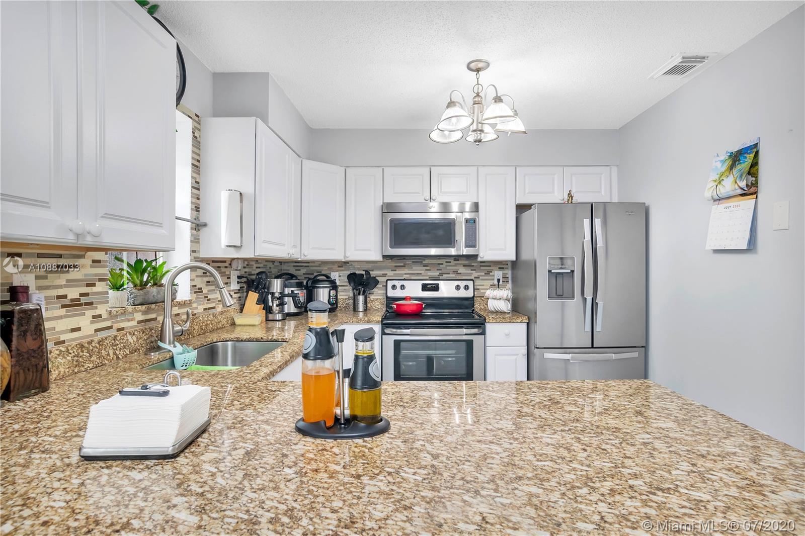 Like the pictures shows, this Beautiful 3 Bedrooms 2.5 Baths Corner Townhome will offer your a gated community, Painted with neutral colors, lots of details like High volume ceiling in the formal living area. Kitchen with Granite Countertops and Stainless Steel Appliances. Tile on the first floor and newer laminated wood on the second floor. Full Washer & Dryer inside unit. Master Bedroom with a nice walk-in closet. Brand new Accordion Shutters. Great backyard space all paved with high quality. Low monthly HOA in the Miramar area. Close to Shopping Plazas, Restaurant, and Highway. Moving ready!