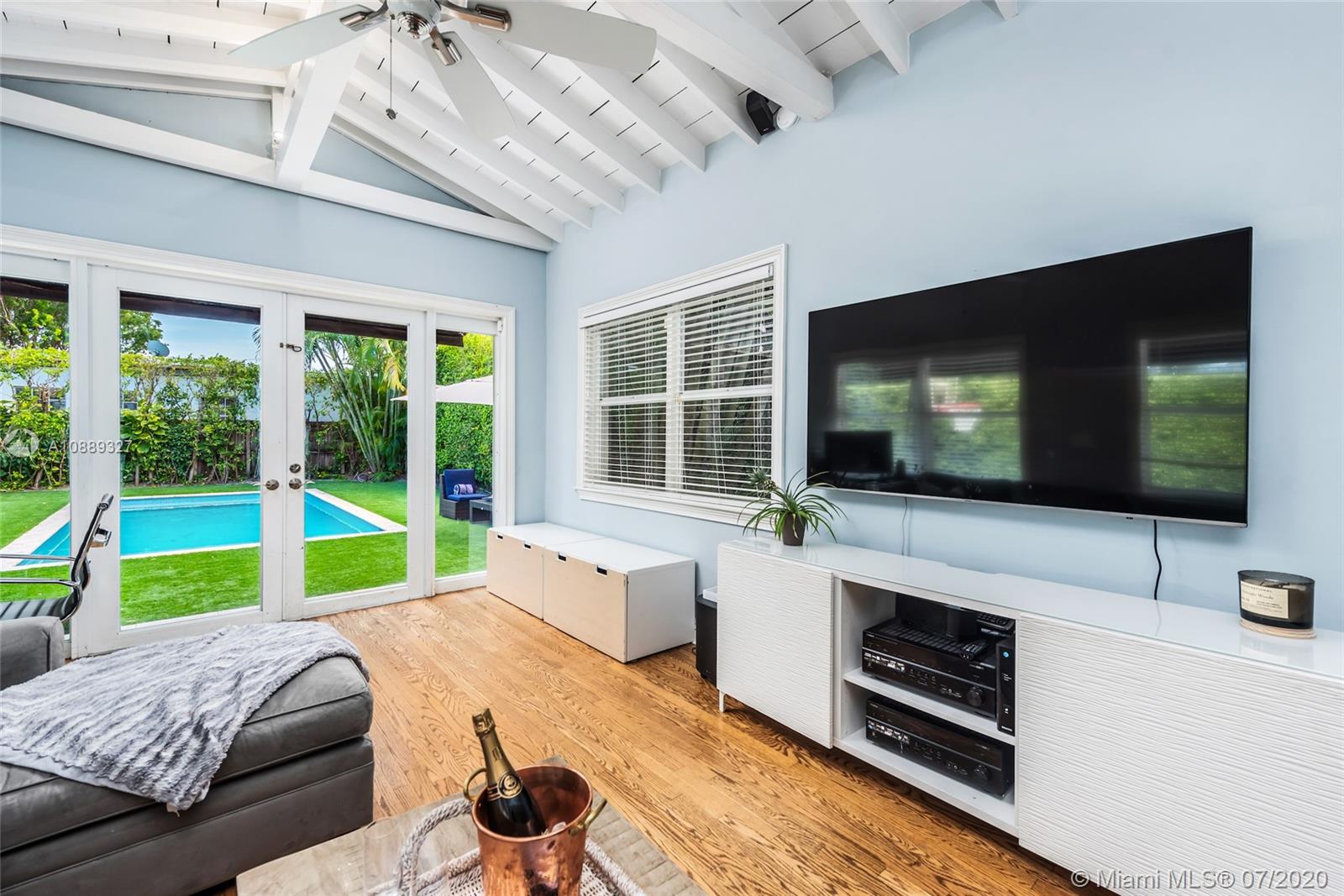 Rarely available 5 bedroom, 2,700 SF per appraiser, renovated pool home situated on great street near Surprise Lake & new Ritz-Carlton Residences. Tastefully appointed w/ contemporary flair & modern luxuries such as high-end finishes throughout, gourmet gas eat-in kitchen, updated bathrooms, partial impact glass & stunning outdoor living areas. Bright window lined family room features built in surround sound system, high vaulted ceilings & opens up to lush tropical backyard oasis. New astro turf for easy maintenance. Great floor plan w/ 2 bedrooms down, includes staff quarters, + 3 bedrooms upstairs. Prime location minutes to the beach, great schools & 41st street corridor. Easy access to major highways & Mainland Miami..