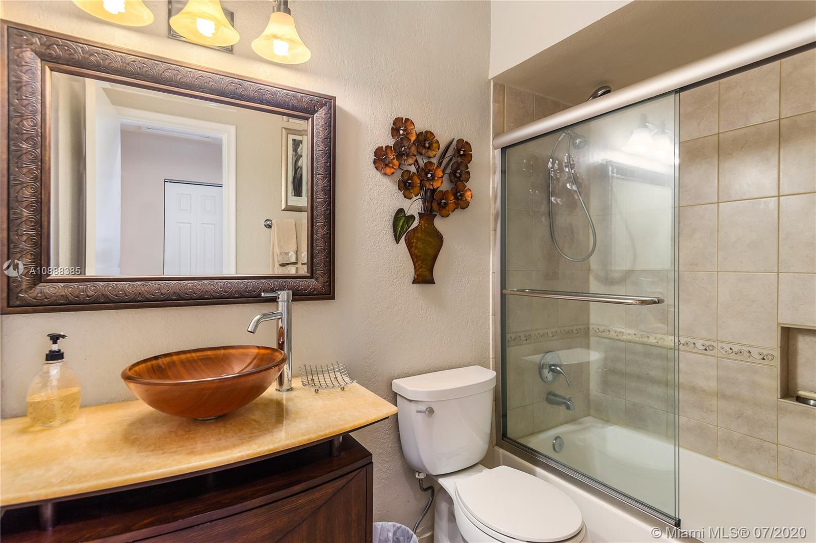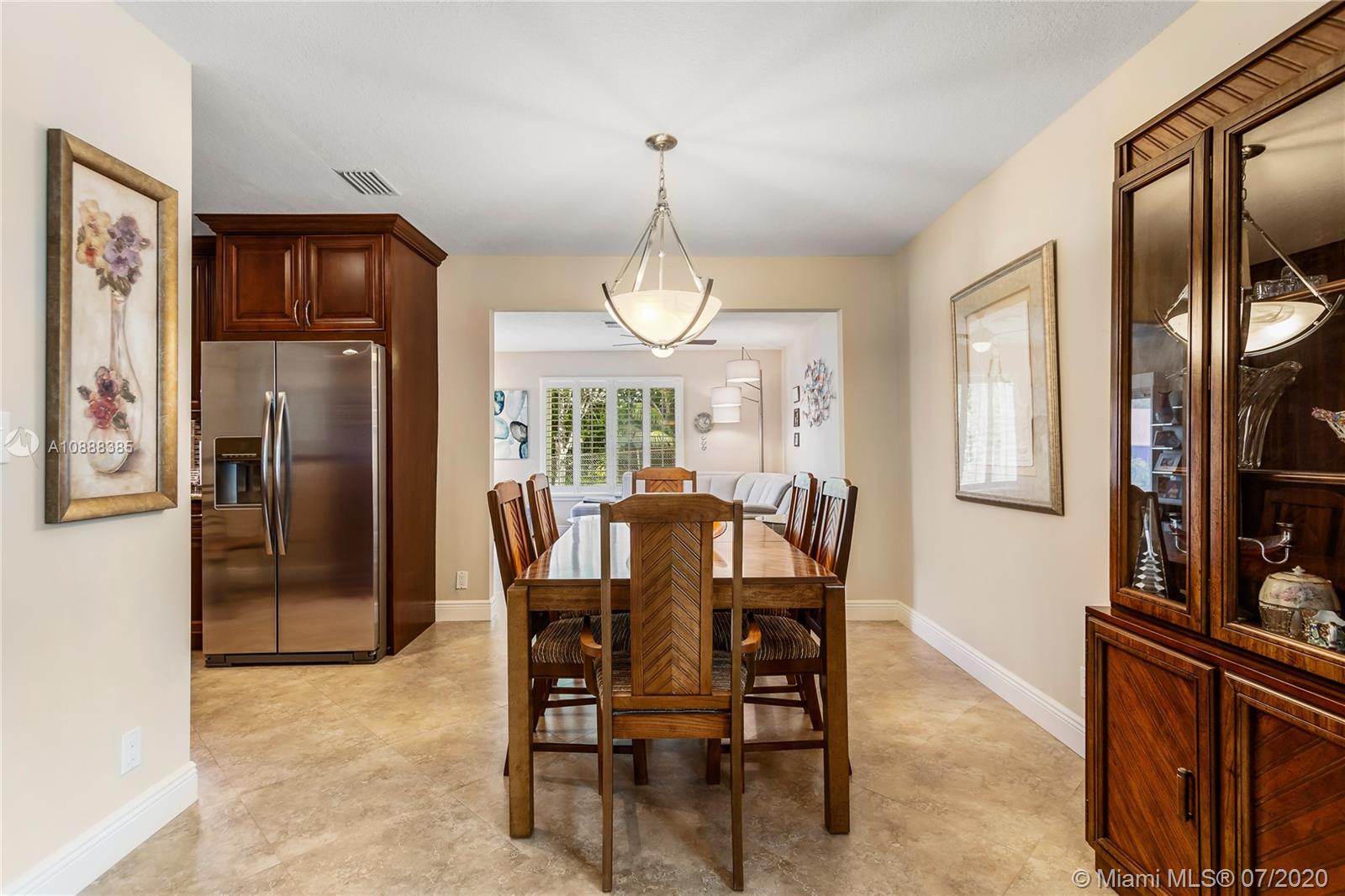 Impeccably maintained waterfront home with remodeled bathrooms & kitchen, granite counter tops, stainless steel appliances, extended cabinetry, 20" tile floors, vaulted ceilings with knockdown texture, plantation shutters on windows and sliding doors, open concept in living, dining, family room and kitchen areas, cost efficient solar hot water heater, a/c 5 yrs new, front loading washer and dryer with storage, extended closet space for more convenient access to storage, oversized 2 car garage, 4 car driveway, accordion hurricane shutters. located on a non-through street. Furniture also available for sale, ring doorbell does not convey. no popcorn ceilings anywhere