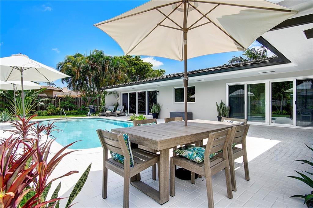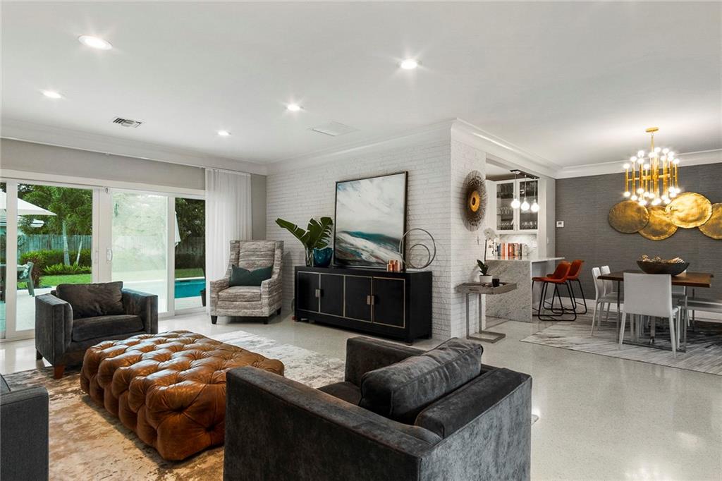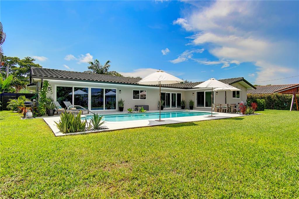 Beautifully remodeled 4 bedroom, 3 bath mid-century home in Coral Ridge Country Club Estates. Modern open kitchen with double ovens and marble waterfall counters coupled with a generously oversized 12,000+ sq ft lot with heated saltwater pool make entertaining a dream. Original details such as Terrazzo floors and cove moldings were preserved and compliment the 2019 updates that include renovated baths, den, custom closets, and window treatments. Other updates include new fencing, landscaping & gutters, as well as a whole house water filtration system. The laundry room and 2-car garage provide ample storage and the house has impact windows & doors throughout.