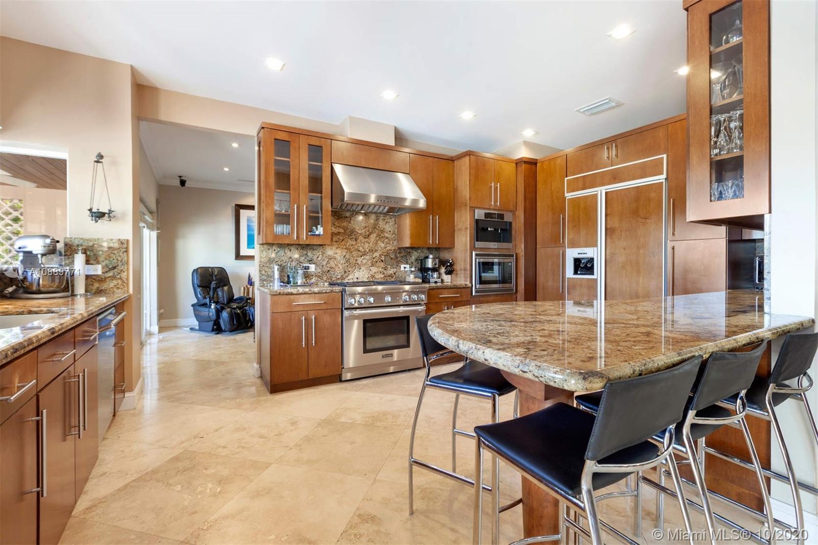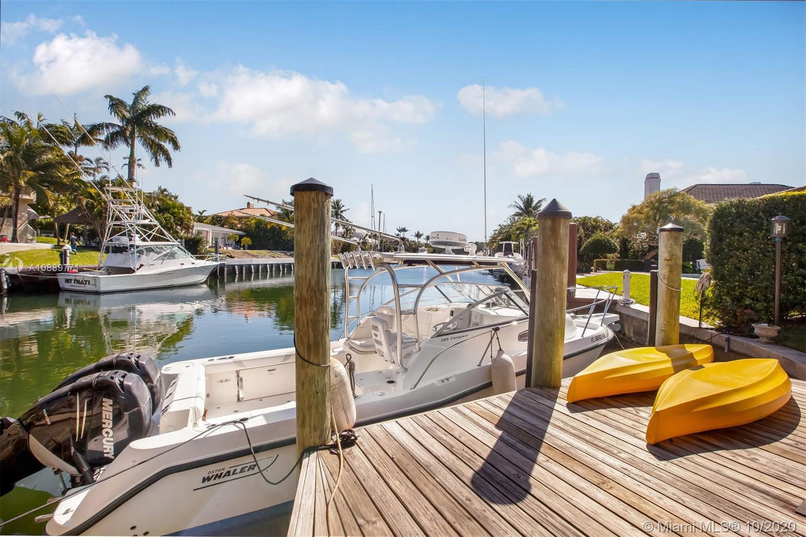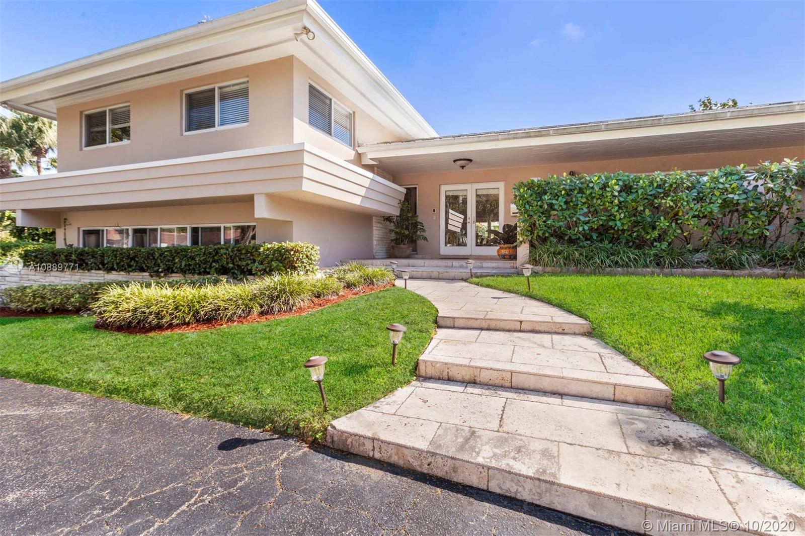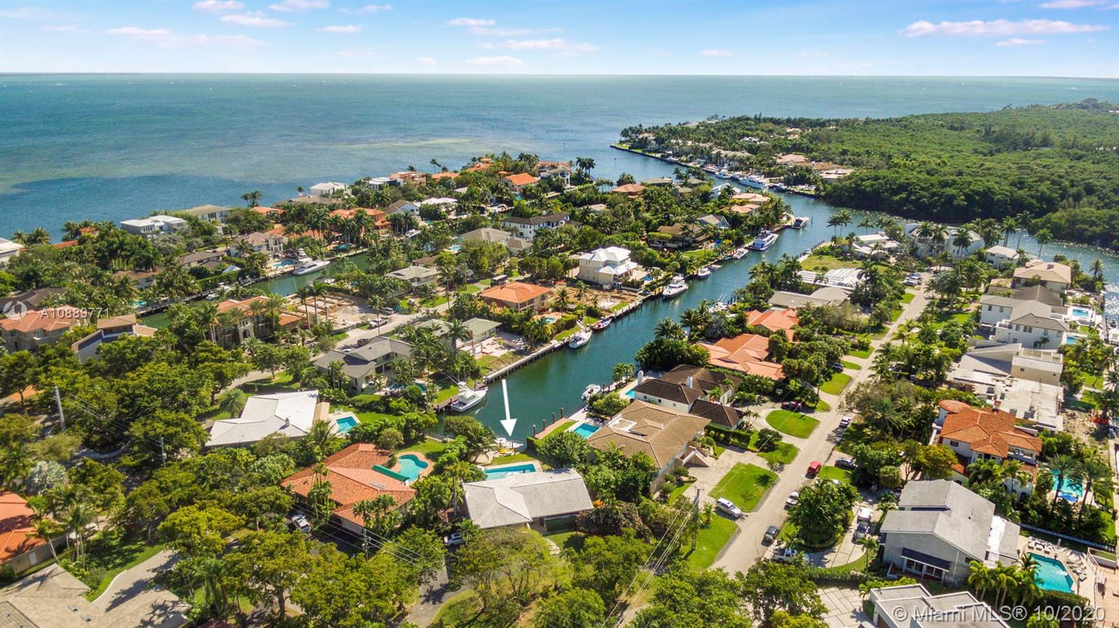 Endless possibilities await! The best value waterfront home in the coveted Sunrise Harbour gated community. This one-of-a-kind 2,568 SF 3 bed 3 bath waterfront home has no-bridge-to-bay direct ocean access. A grand entrance with circular driveway & stunning curb appeal greet you at the elevated split level Coral Gables residence. Partially renovated with updated kitchen, Impact windows & new roof. Entry level features open kitchen, dining & family rooms connected to an expansive patio overlooking the pool & private 30ft dock. Upstairs holds the bedrooms & main suite with balcony overlooking the water. Additional Downstairs level has 2 car garage, full bath, & den with private patio. Ready for move-in or renovate/rebuild on 15,700SF lot. Centrally located near top schools, parks & more.