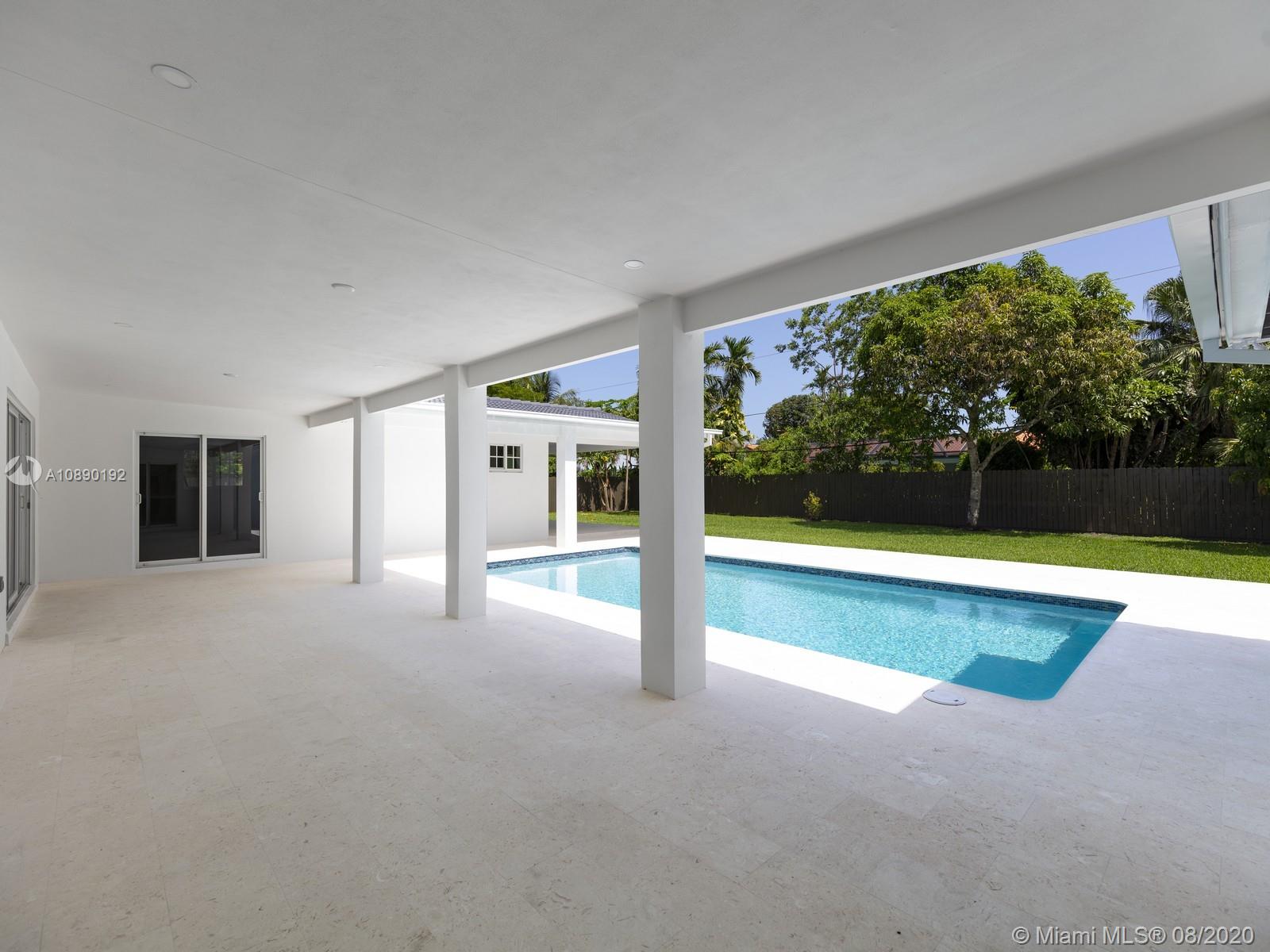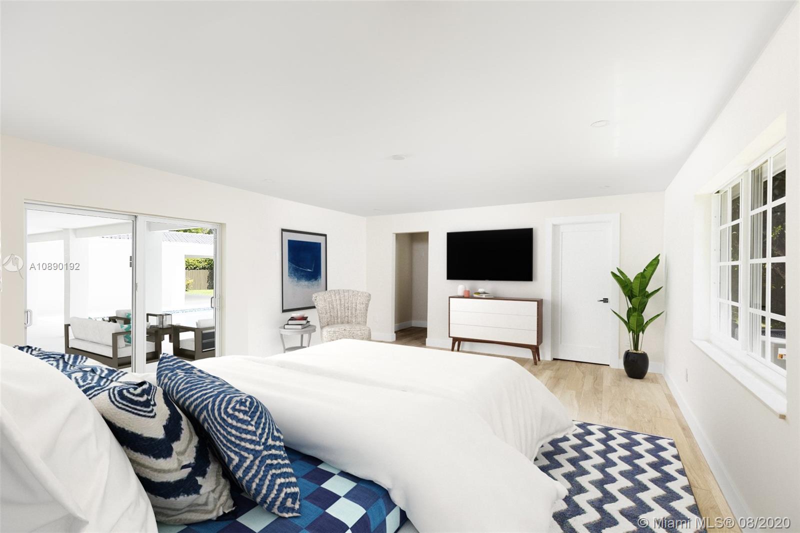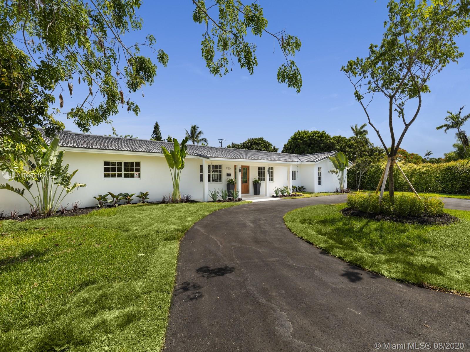 Remarkable one-story retreat located on a quiet street in N Pinecrest. This 5 beds/5 baths home has been completely remodeled w/the finest modern finishes. Greeted by a spacious open floorplan w/all around views of the outdrs & sparkling new pool, new chef’s kitchen w/modern Wi-Fi appl, new bathrms & extra rooms for multiple home offices & storage closets. The home offers a split plan w/ 3 large en-suite bedrms on one side & 2 beds/2 baths on the other, making it perfect for guests/in-law quarters w/private entrance on the side. Serene views of the crystal blue pool, shell stone patio & backyd from all angles in the house. Extra Feat: imp. win/drs, summer kit hookup, all remodeling work done w/proper permits, all waste lines redone w/PVC, European faucets, quartz counters & porcelain flrs.