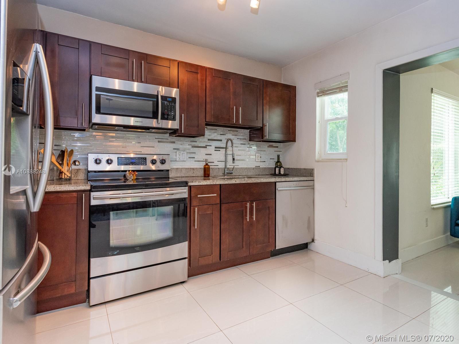 Buy this beauty while you can! Tastefully remodeled with new kitchen, new bathrooms, 4 full bedrooms with a split plan and master bedroom & bath en suite plus a great walk-in closet! Picture perfect with porcelain floors and decorative fireplace. Large family room overlooking a spacious fenced back yard, with plenty of room for a pool and large patio to entertain! AND a BONUS! ... even better...a detached over-sized garage - with entry from fabulous Miami Shores 'service road' -- could be home office or art studio or home gym! The septic system is new.ROOM FOR POOL and ROOM FOR BOAT!