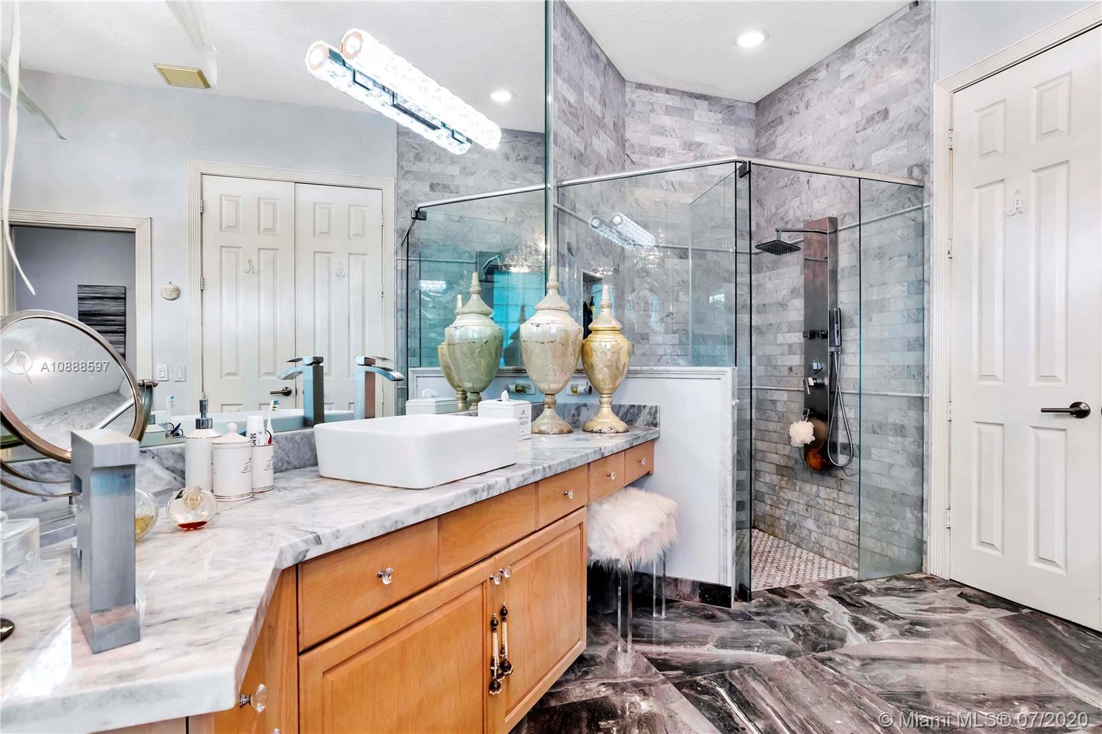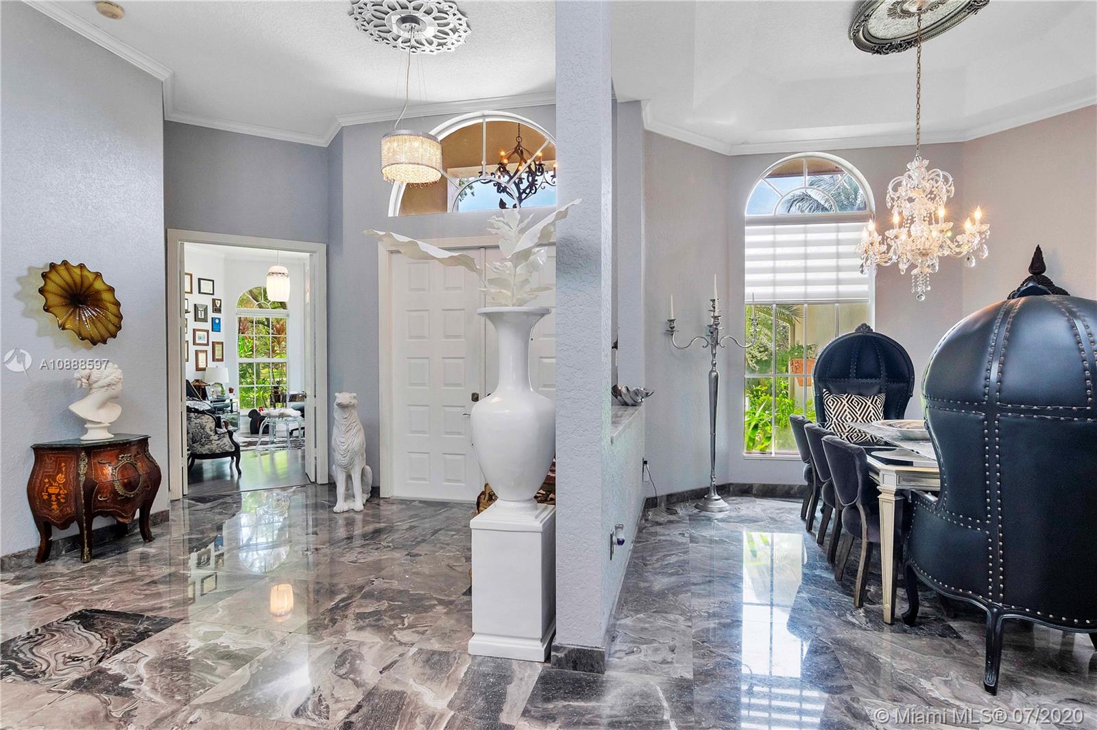 Amazing and Spacious Single Family Home at Fox Ridge. Located in large corner lot with beatuful plants and plenty of privacy. 5 bedrooms, 3 baths, is Triple Split with an Open Floor Plan and beautiful gray marble floors. Master Bedroom includes a large sitting area and an updated, elegant bathroom. In-Law/Nanny suite with a private renovated bath and separate entrance. Custom Kitchen Cabinets with Granite Countertops and Kitchen-Aid appliances. Formal Living and Dining Rooms. Laundry with Washer & Dryer. Oversized pool with heater and saltwater systems. Garage with built-in storage, 3 car spaces, a Circular Driveway. 24 hour Guard Gated Community. Nearby supermarkets and shops as Walmart, Publix and public library. Close to Sawgrass Expwy. Top Rated Parkland Schools.