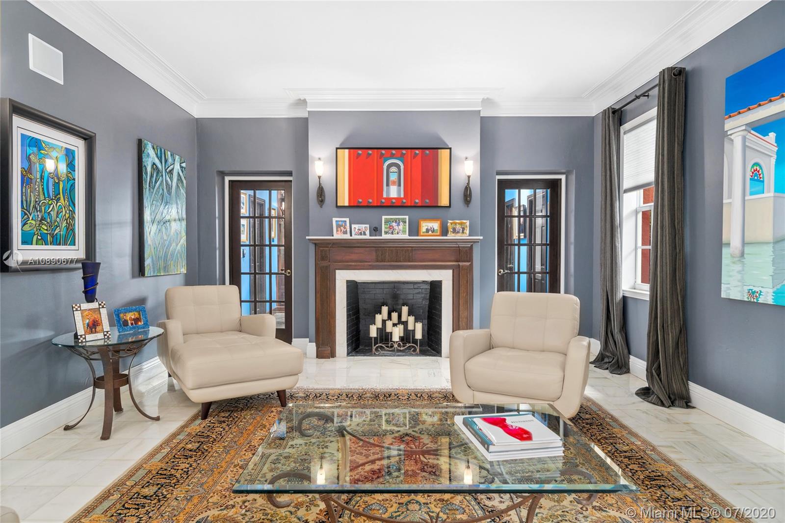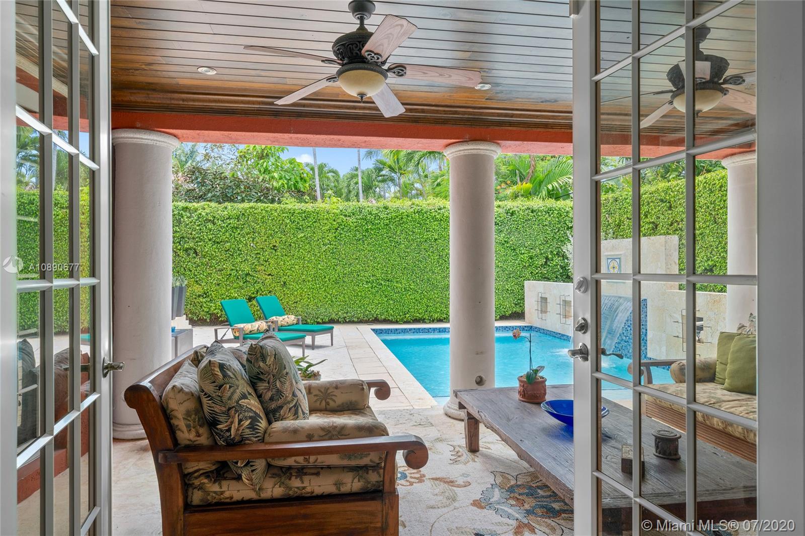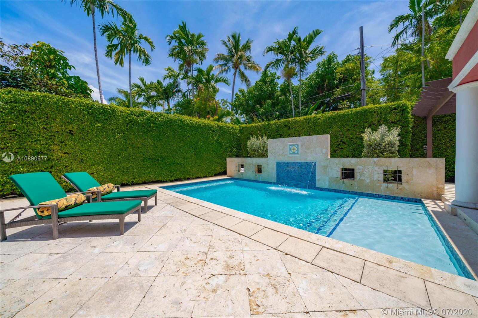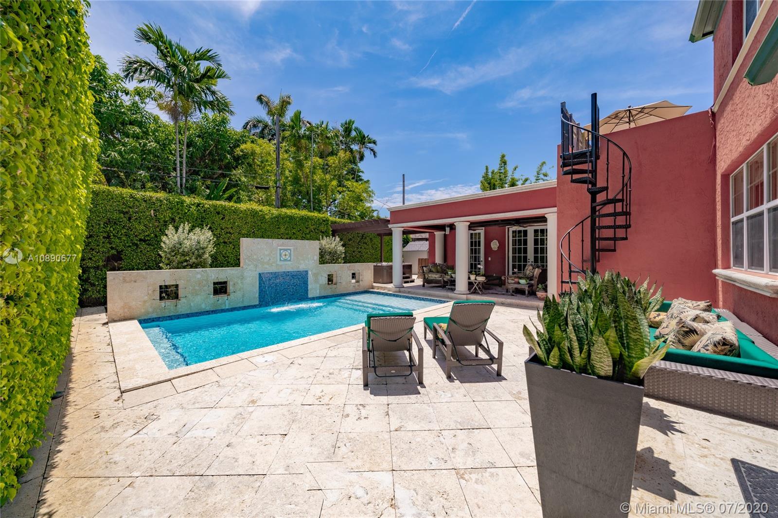 In this renovated home, dripping with charm, original architectural details add character while modern improvements add functionality. From the moment you walk in, you will notice the delightful flow throughout the house. With 4br/3.5ba, the house features a formal living area with fireplace, a media room with direct access to the covered pool patio, a remodeled kitchen & a newly constructed master suite. The master suite features Brazilian walnut floors, a customized walk-in closet, & a spacious bathroom with marble floors, a freestanding tub, two toilets, & double vanity. Two additional bedrooms upstairs connect to a sun deck overlooking the pool area & a terrace overlooking the front courtyard. Surrounded by mature privacy hedges along the perimeter, the pool is well secluded.