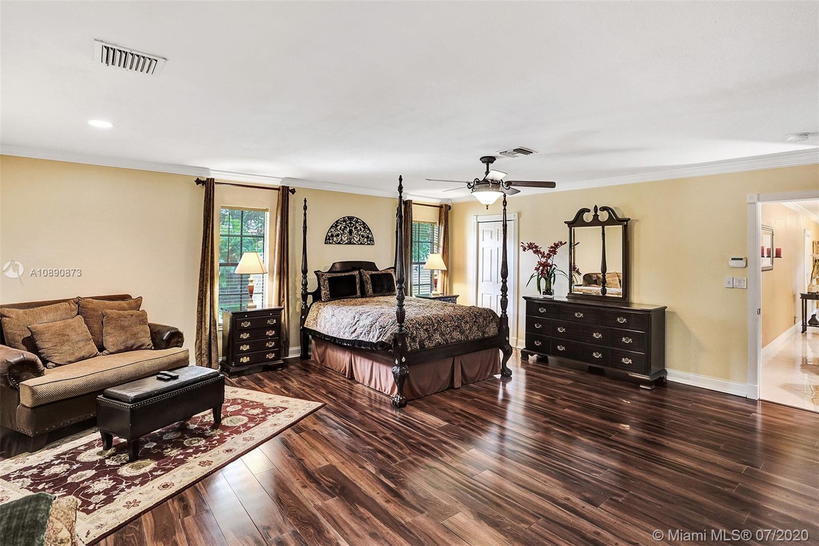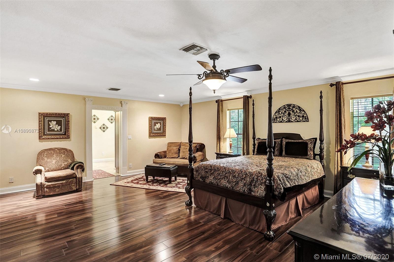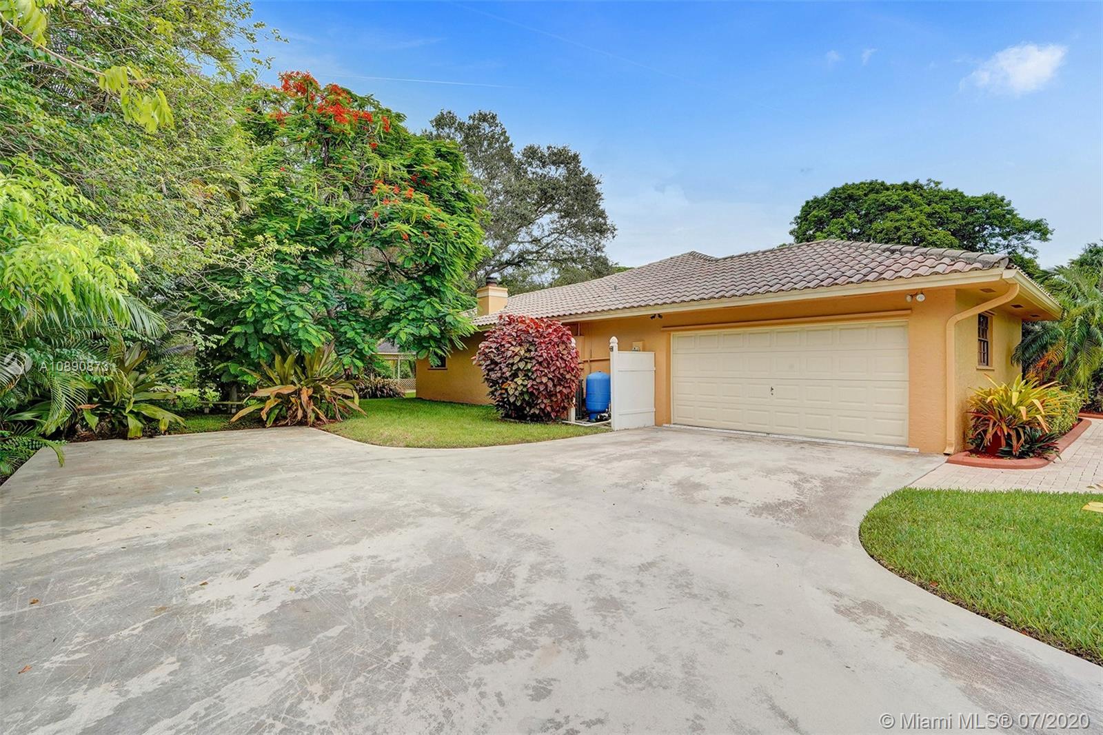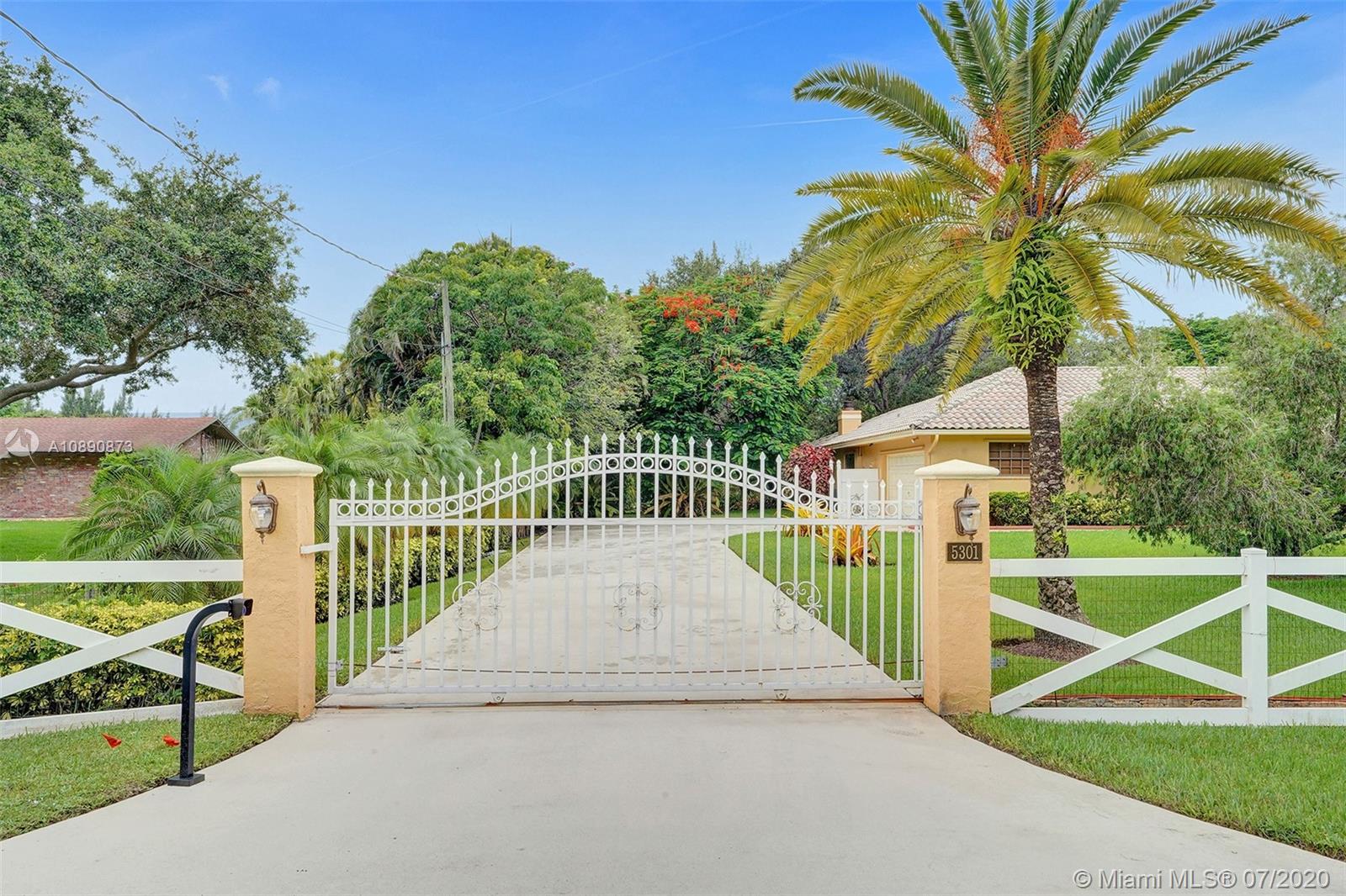 Spectacular 4 beds 3 baths estate home; nestled away on over an acre with secured gated entrance. Tastefully upgraded & meticulously maintained; the pride of ownership shows. Home features a triple-split bedroom floor plan. Boast gourmet kitchen with high-end stainless steel appliances & granite countertops. Fabulous over-sized master suite with 3 walk-in closets and attached exercise room. Beautifully upgraded bathrooms. Bonus sunroom (460 sq ft) Opens to a breathtaking tropical paradise perfect for entertaining with gazebo. The lush backyard is completed with mature oak & poinciana trees. Located in desirable Southwest Ranches. The community offers equestrian lifestyle, No HOA, great schools. Ask about $20K buyer's credit. Too many features to list, schedule an appointment to view today!