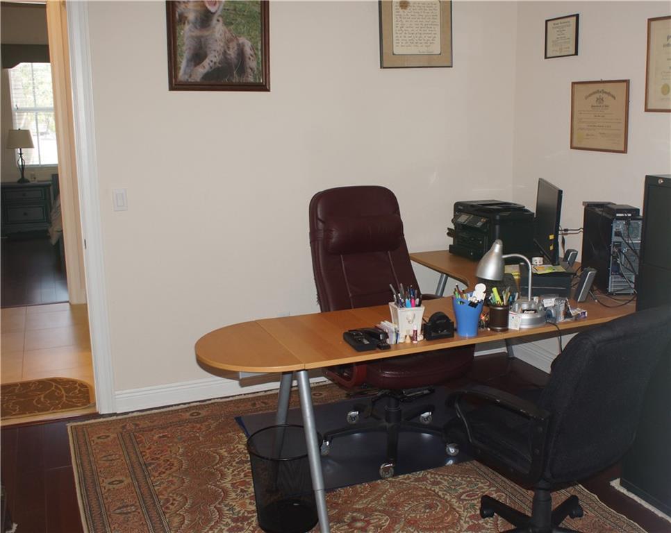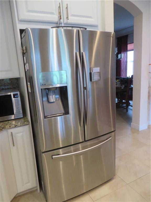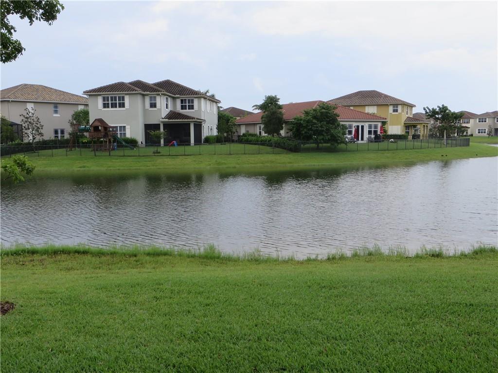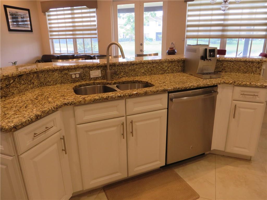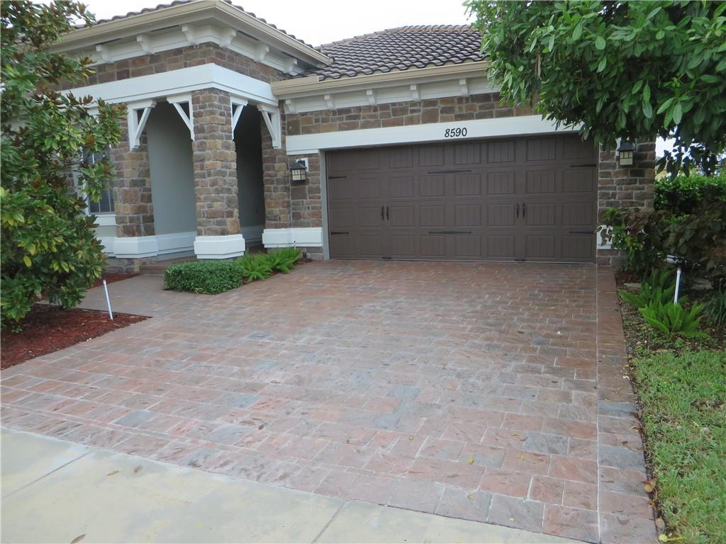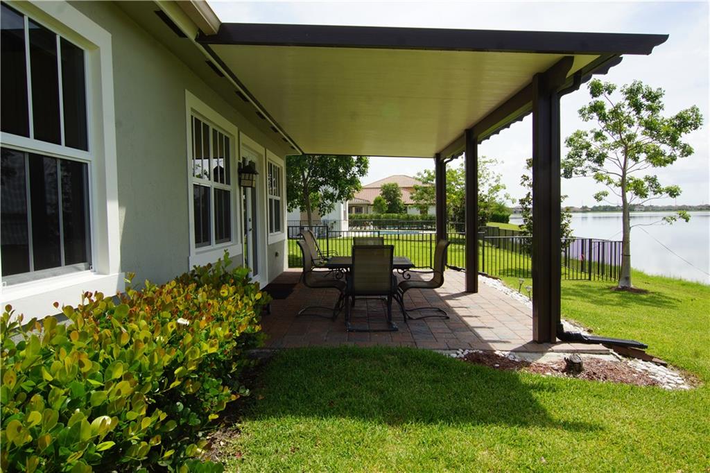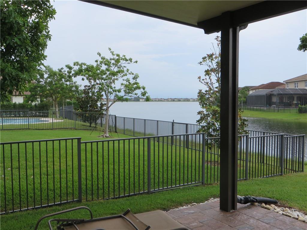 Mira Lago 4 B/R, 3 Bath, 2 Car Garage, Waterfront. Carlyle Model with Stone elevation, Exterior just repainted in June. 42” white kitchen cabinets with glass fronts, granite counters/backsplash, just added ductless range hood and stainless island counter tile, 30 cu ft Samsung refrigerator and 5 burner gas cooktop. 20” porcelain tile and Brazilian Cherry wood flooring in all bedrooms. Large master suite offers 2 walk-in closets, glass-enclosed shower with NEW upgraded Shower Massage Panel & Jacuzzi Roman tub. Crown molding throughout. French doors on office (4th b/r). All impact windows and glass front door! 12x24 Pergola attached to relax on great view of the lake. Gas for cooking, dryer and tankless hot water heater. Buyer to pay one time Capital Contribution of $1,000 to HOA at closing
