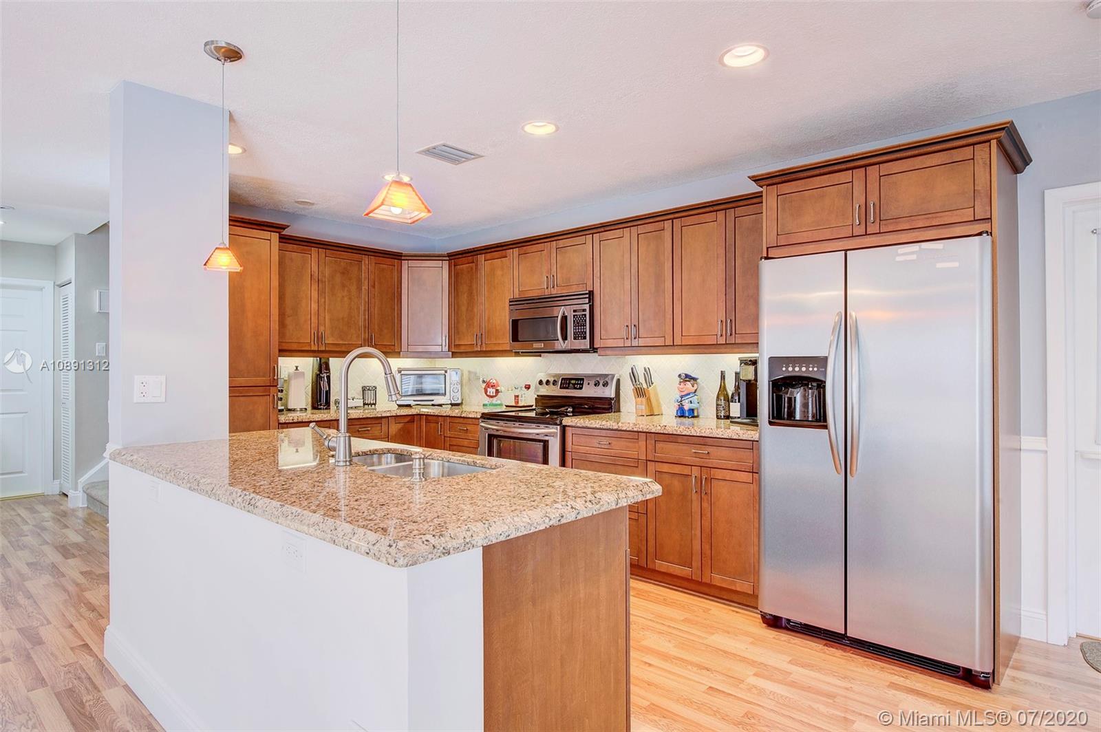Lovely large kitchen with island. Granite countertops. Open concept to dining room. Stainless Steel Appliances. Electric/self-cleaning oven. Refrigerator with water/ice dispenser, dishwasher, and microwave. Enclosed porch with access to the pool area. Enjoyable 12x30 pool. Primary bedroom on the 2nd floor. Walk-in closet. New knock-down ceilings throughout. New Nu-Core flooring on the second floor. New ceiling fan in the primary bedroom and dining room. Fresh paint throughout. Hurricane shutters on all windows and sliders. Brand new filtration system for pool. New electrical panel in the garage. New molding throughout. Added safety with a Schlage electronic key pad & dead bolt on front entrance. Ring camera at the front entrance. LED spotlights. Smart Lutron LED lighting inside home.